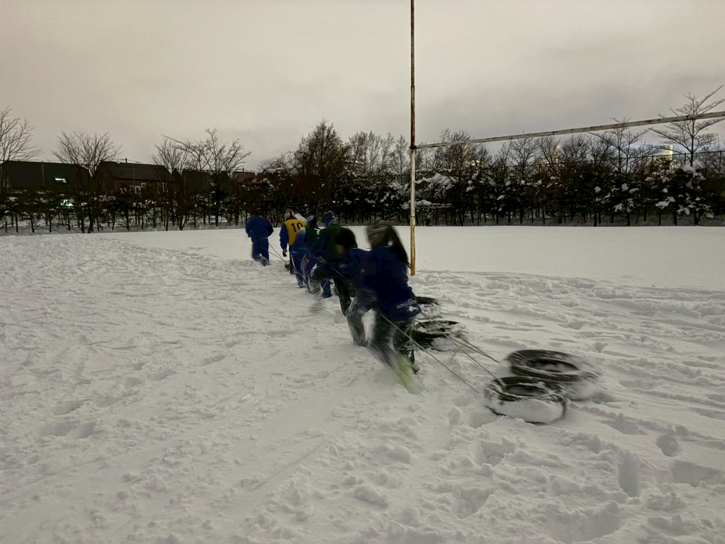 その後タイヤ引きを行いました。普段とは形式を変えて行いましたが、みんなで励まし合い最後までやり抜くことができました。山口先生からの鼓舞の声もあり、きつい中でも積極的に声を出していたことが良点でした。
