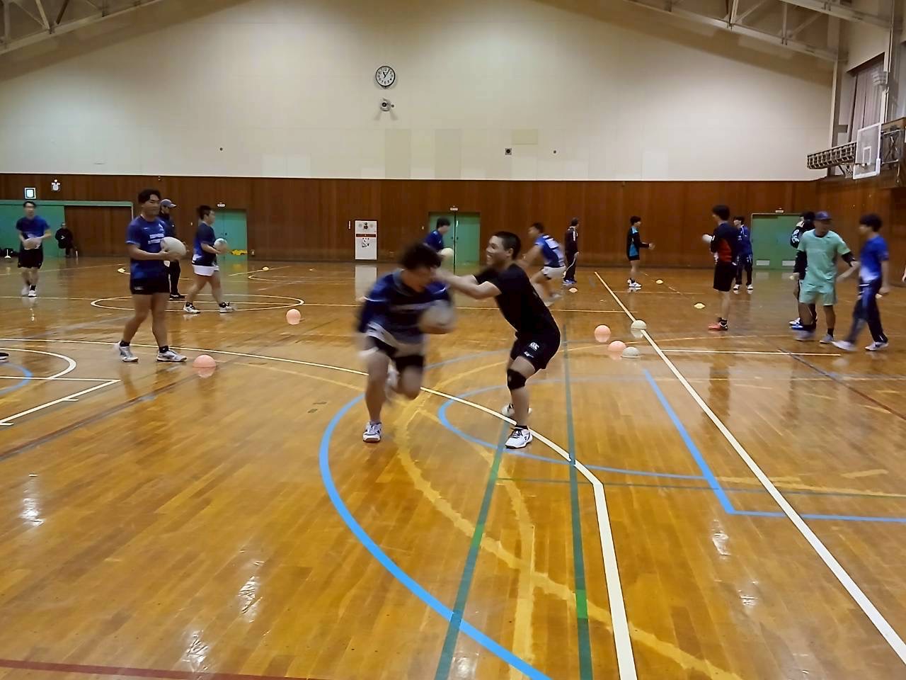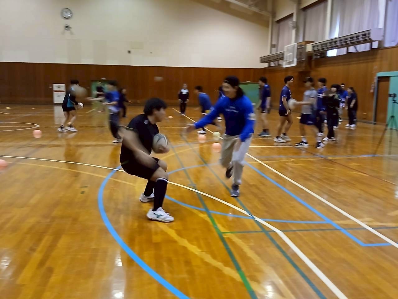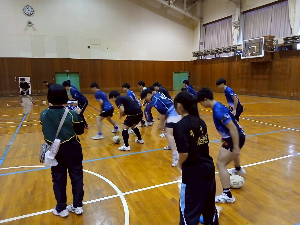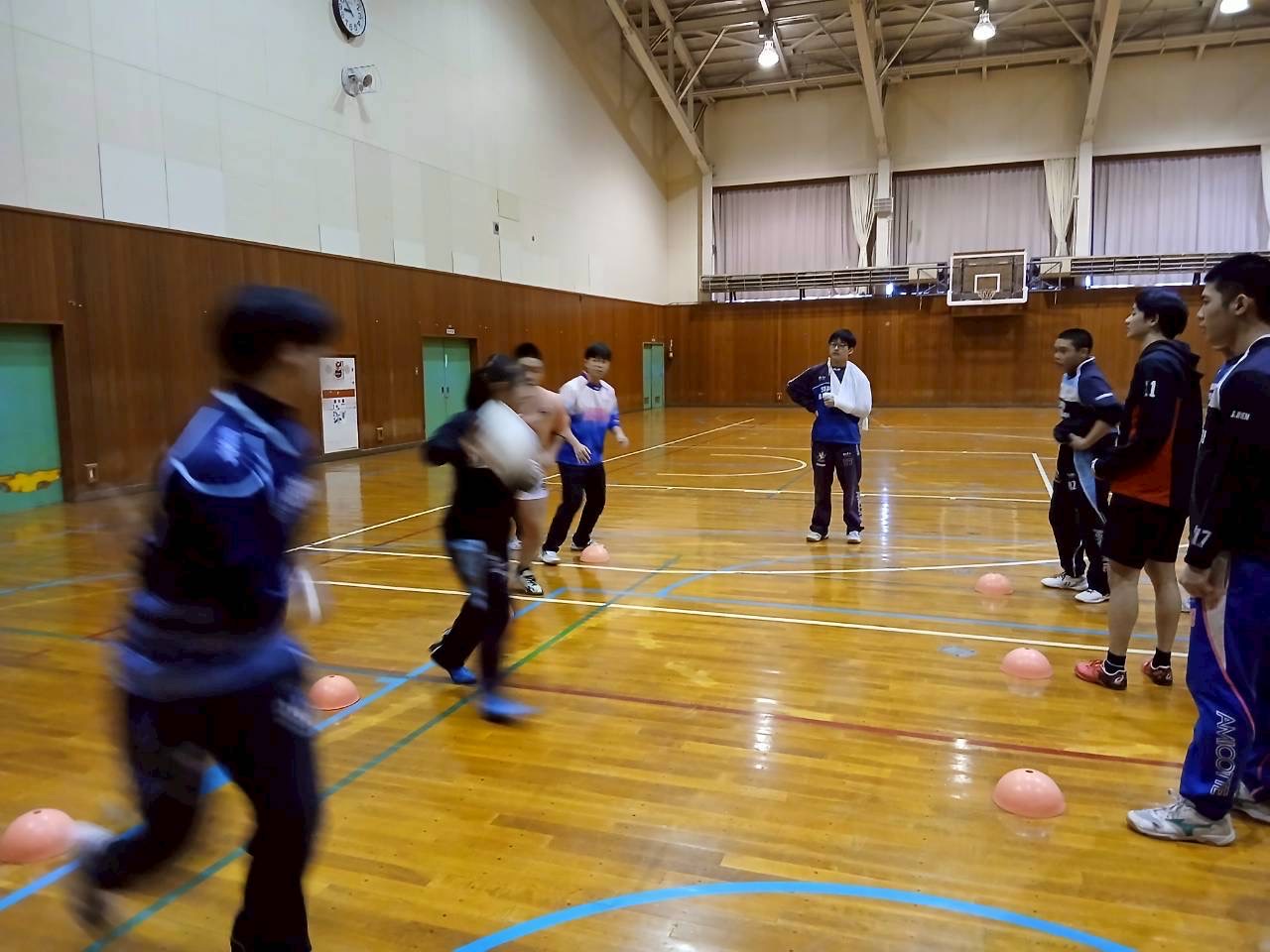 次にチームを分け、タッチフット、ホールドゲームを行いました。ゲームを止めながら改善点を指導していただきました。