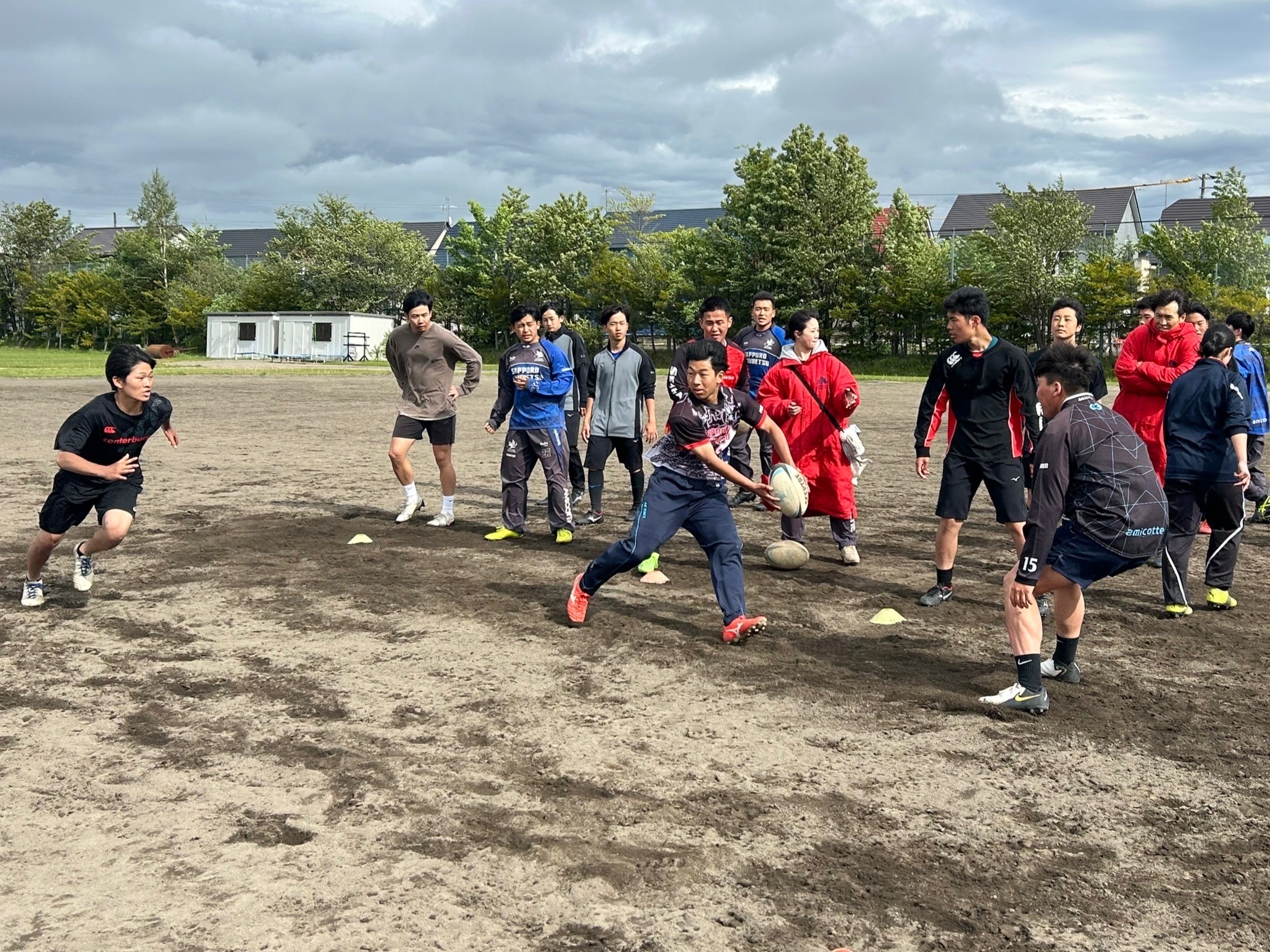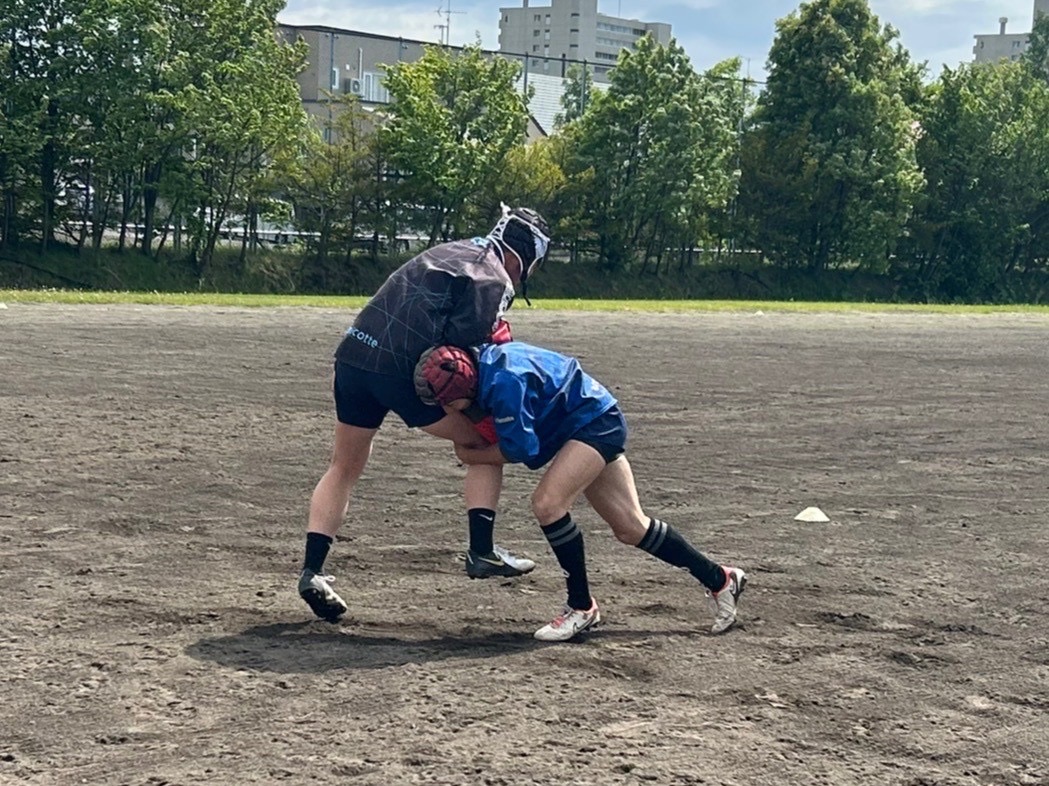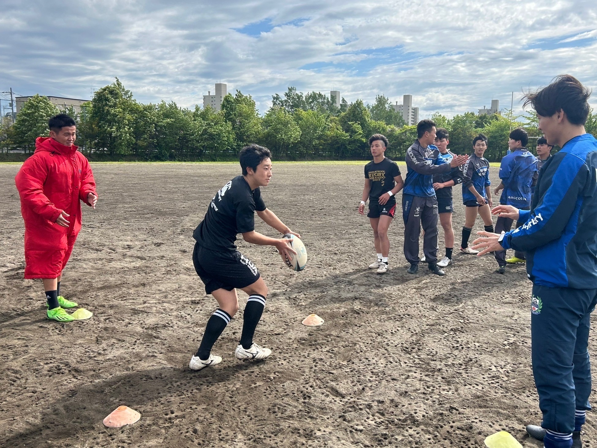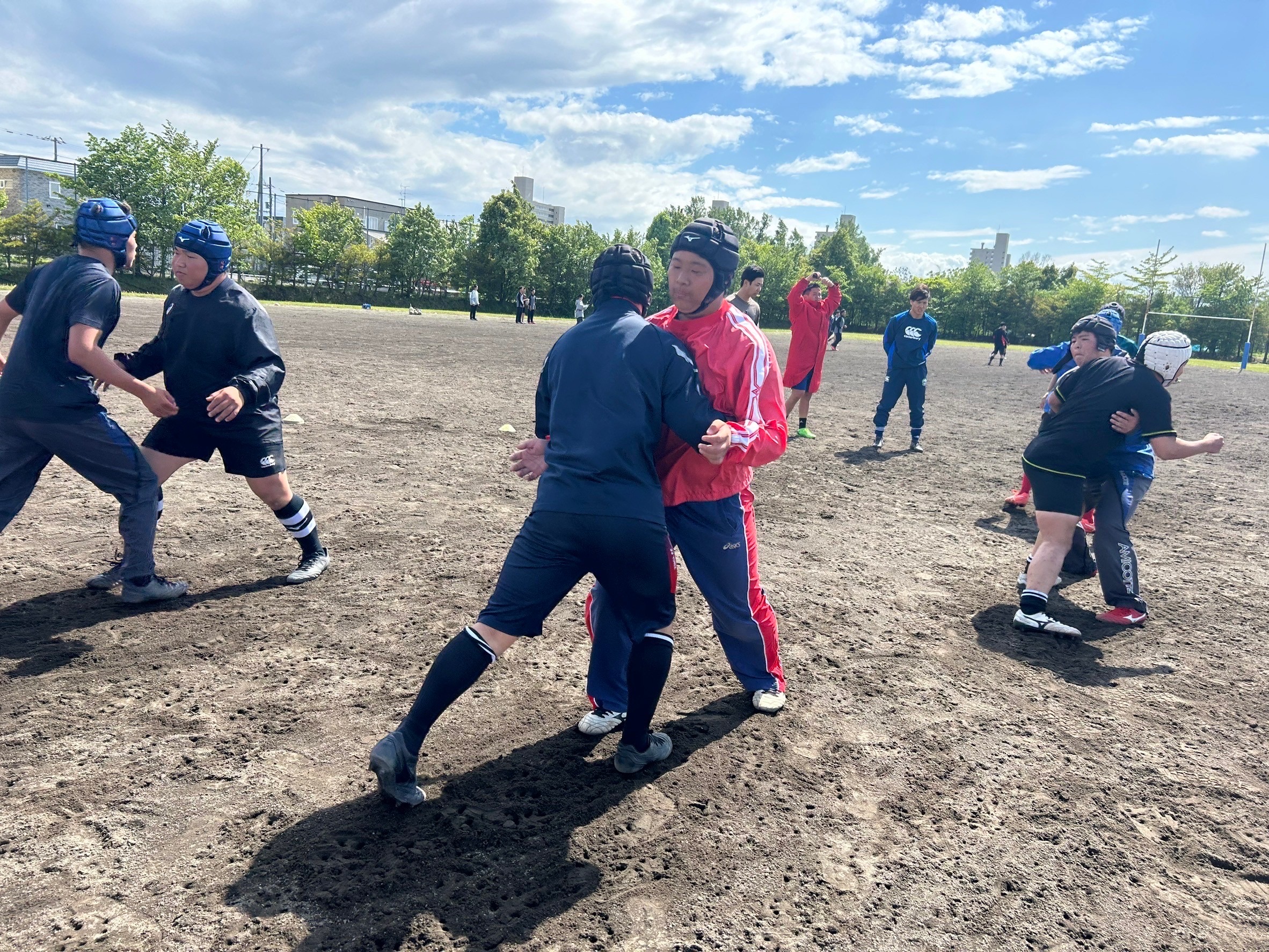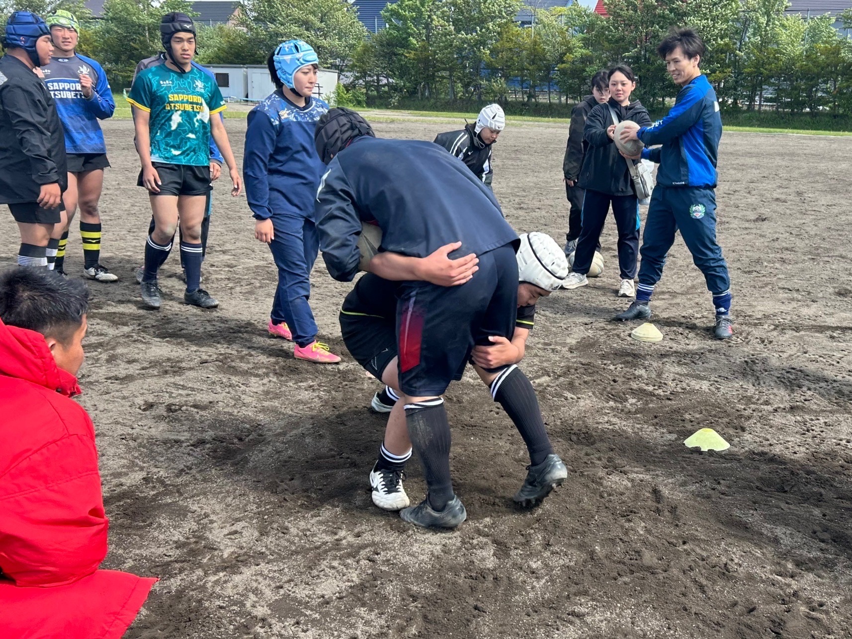 BKが指導を受けている間はFWは札幌大学ラグビー部監督の袋井さんからスクラムの強化のために組み方や姿勢を指導して頂きました。
