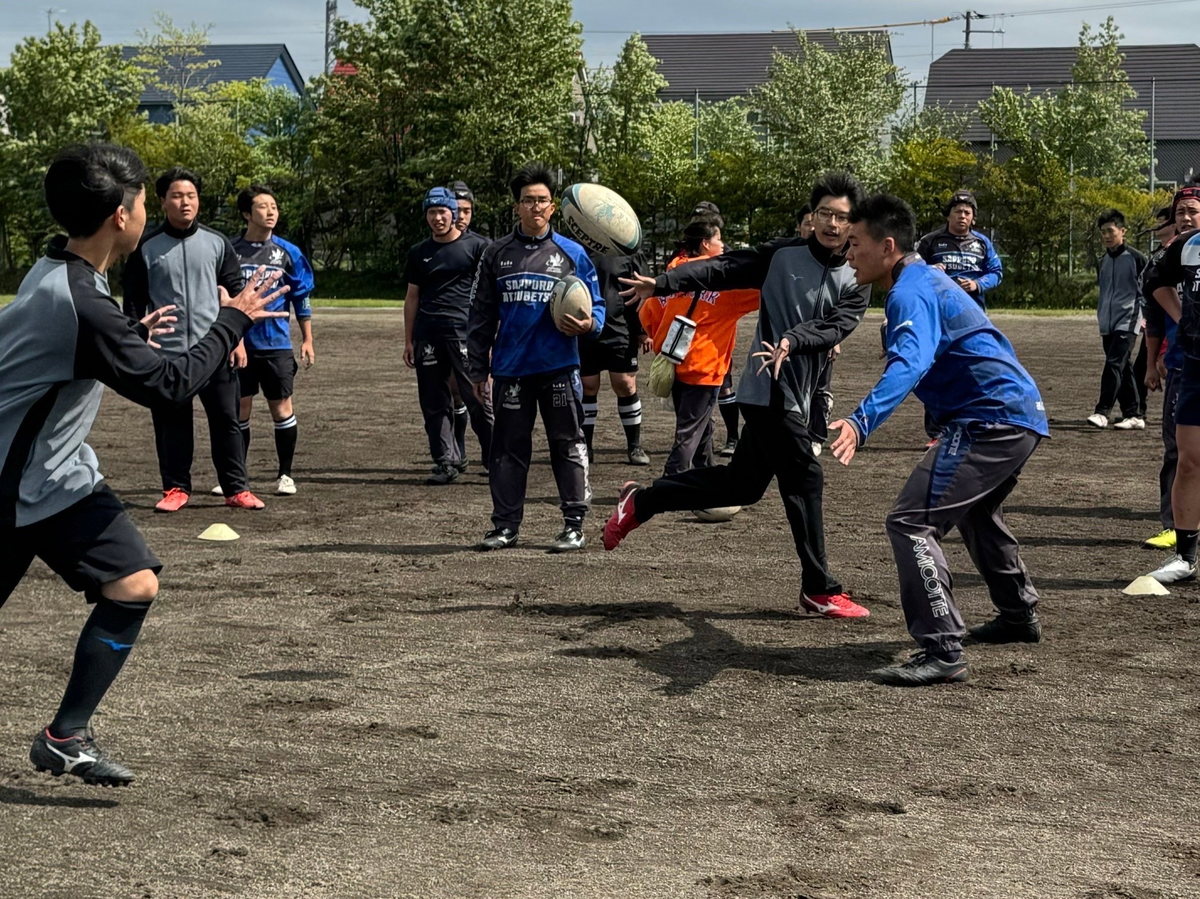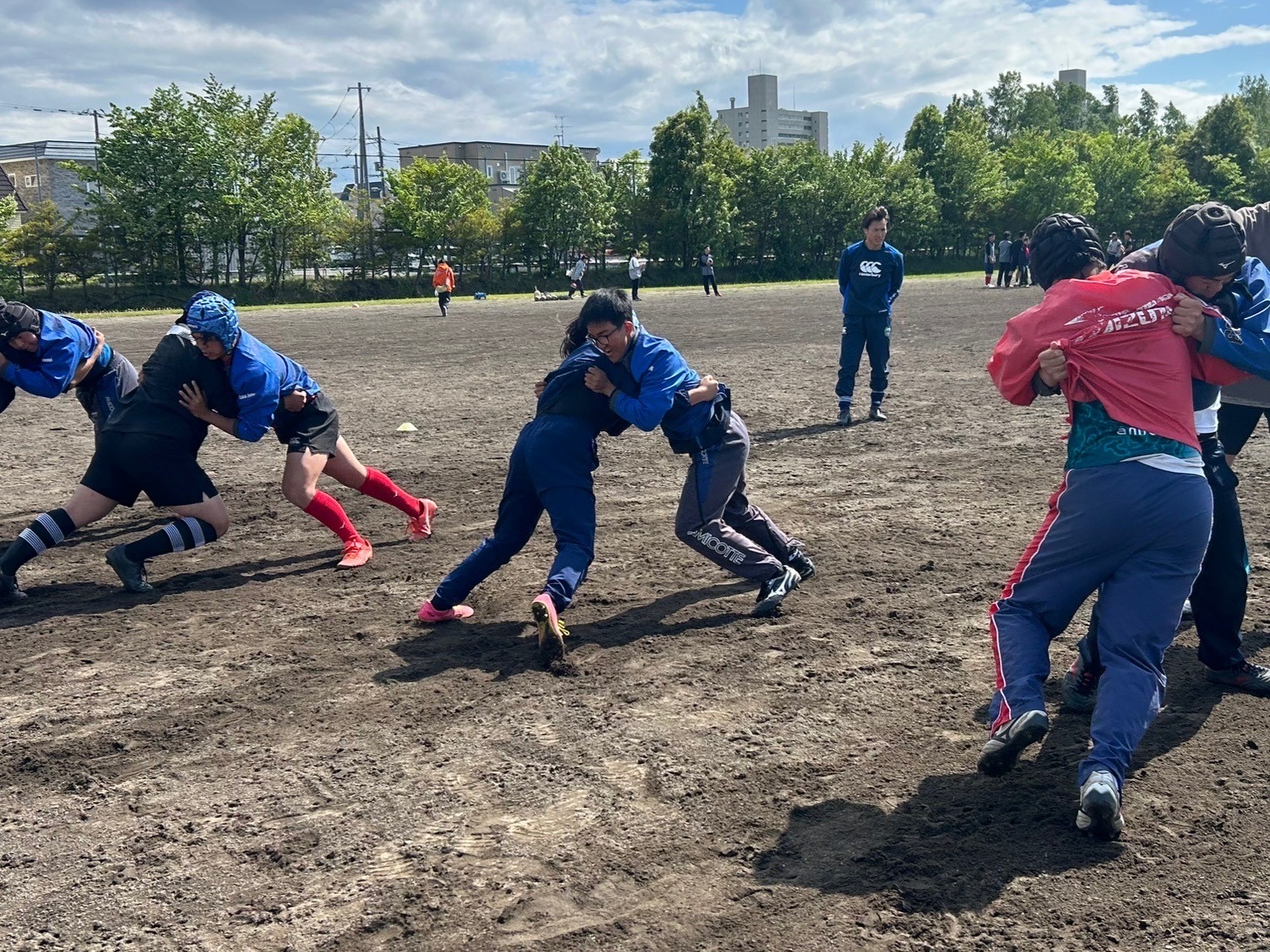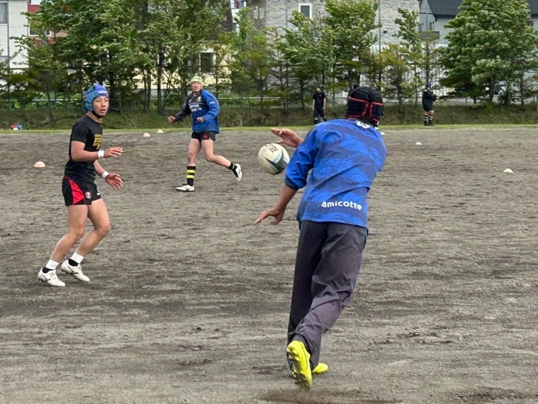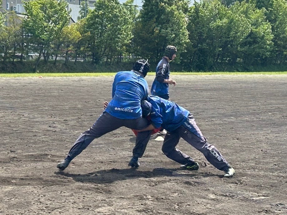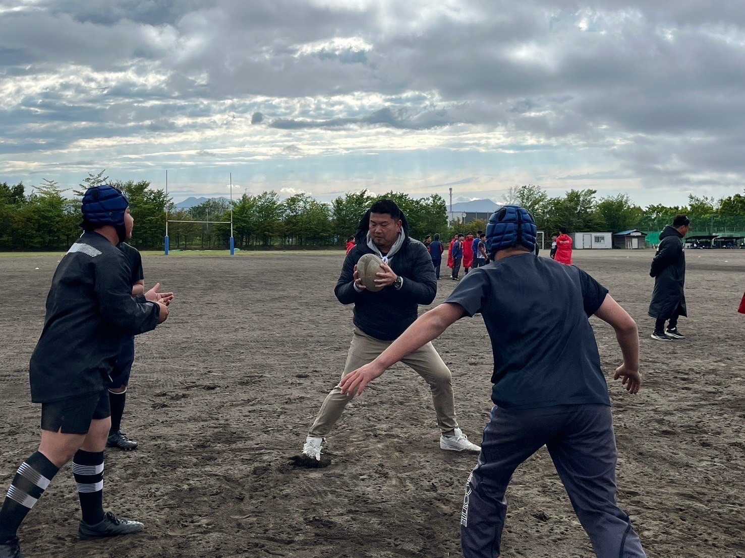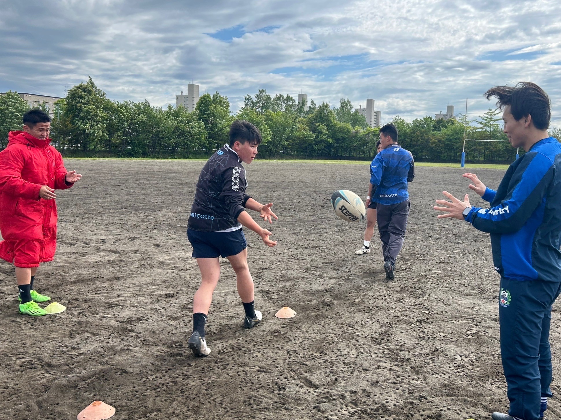 BKが指導を受けている間はFWは札幌大学ラグビー部監督の袋井さんからスクラムの強化のために組み方や姿勢を指導して頂きました。