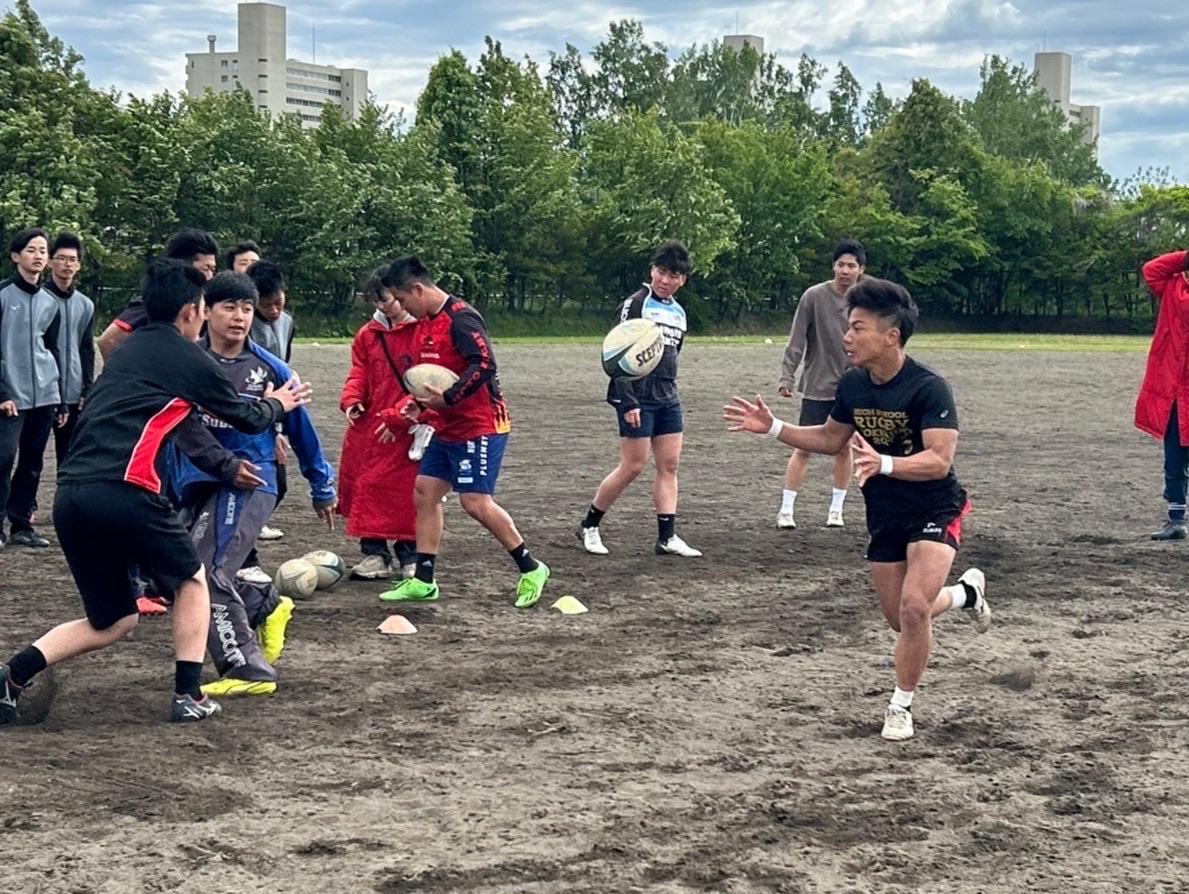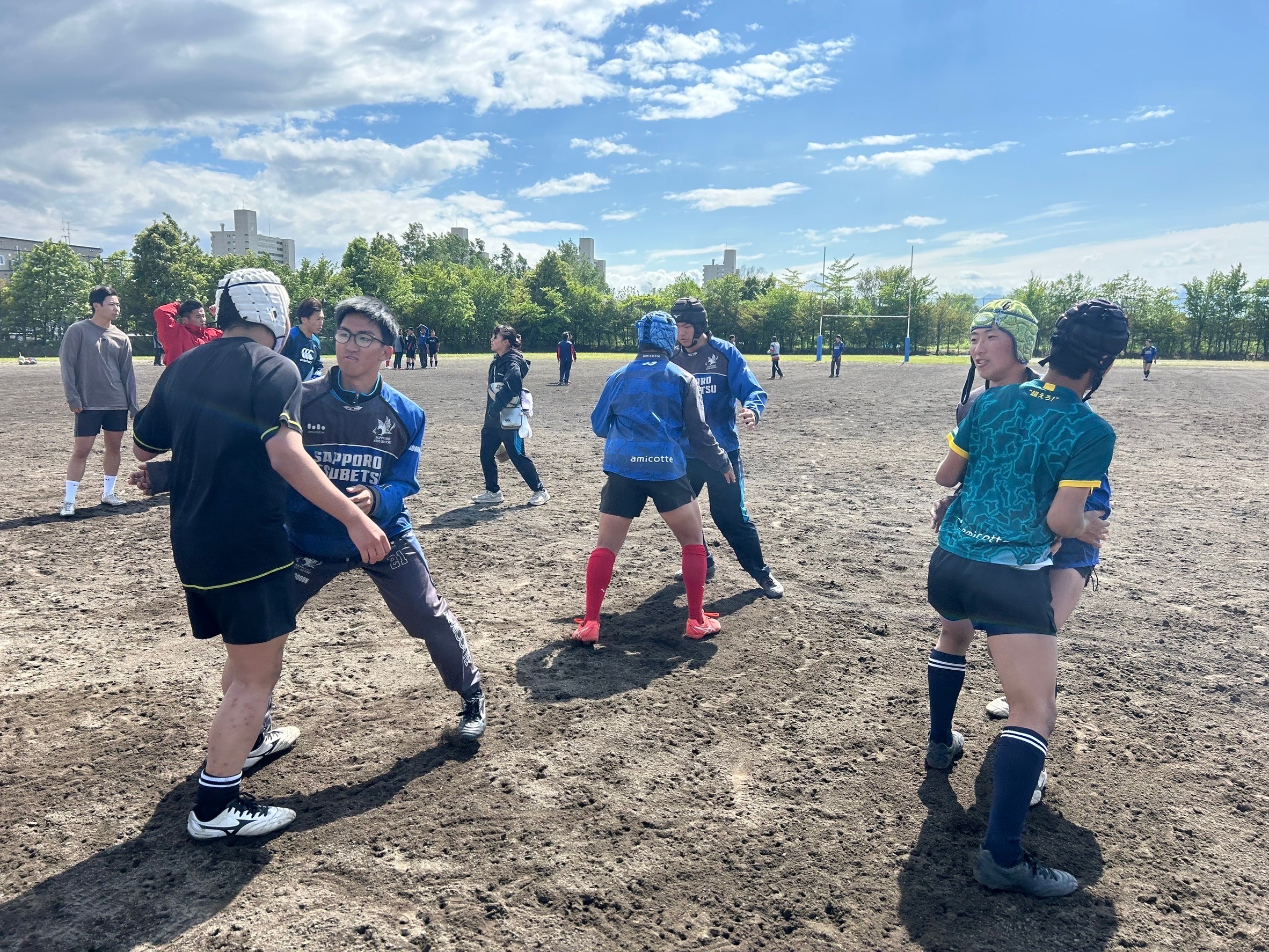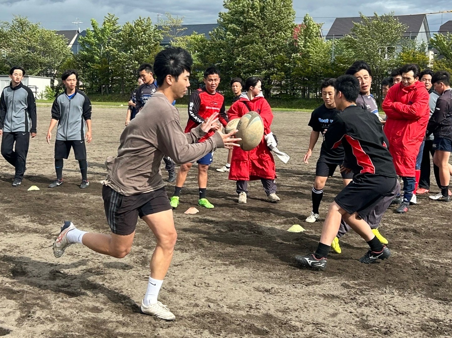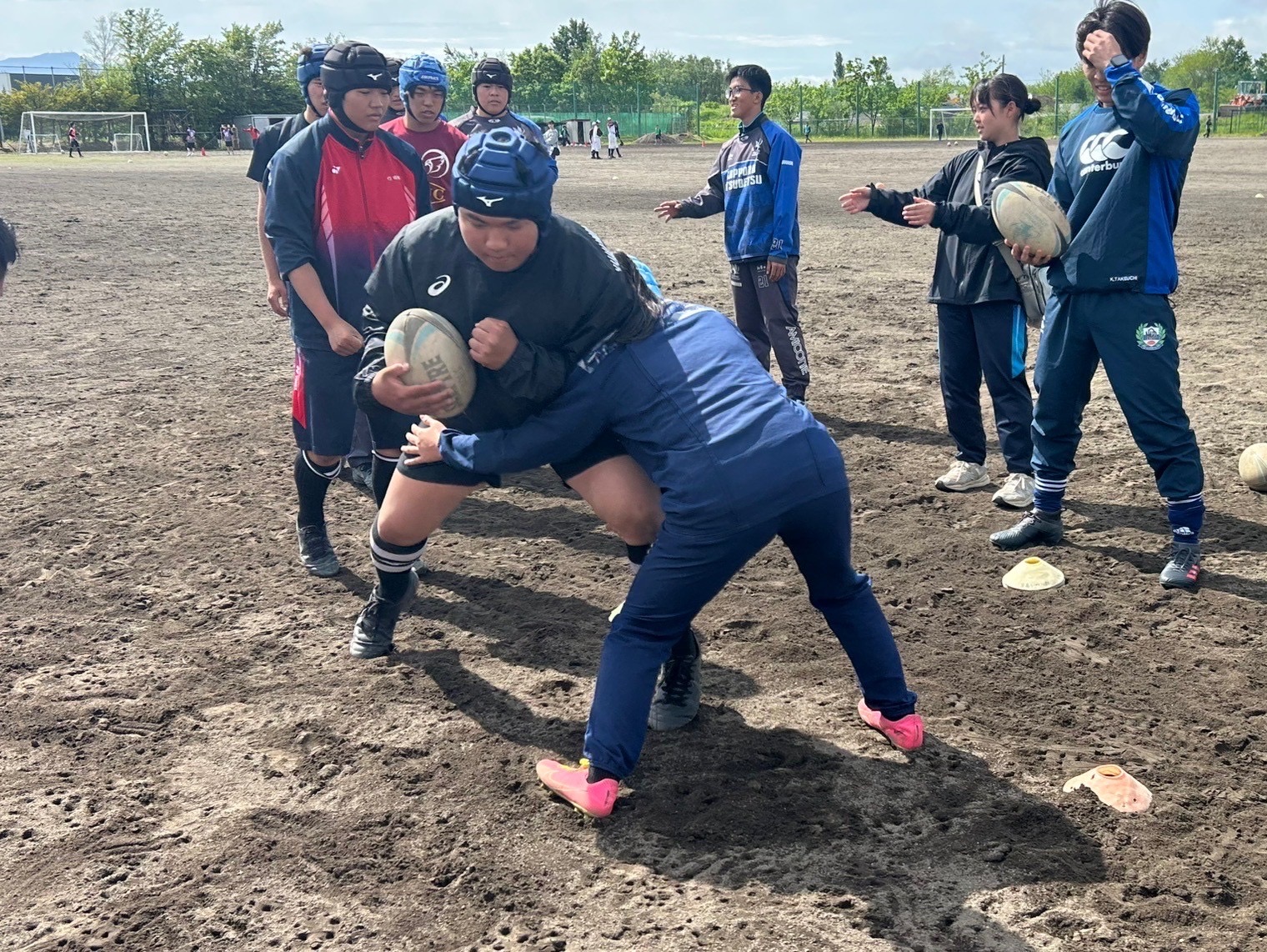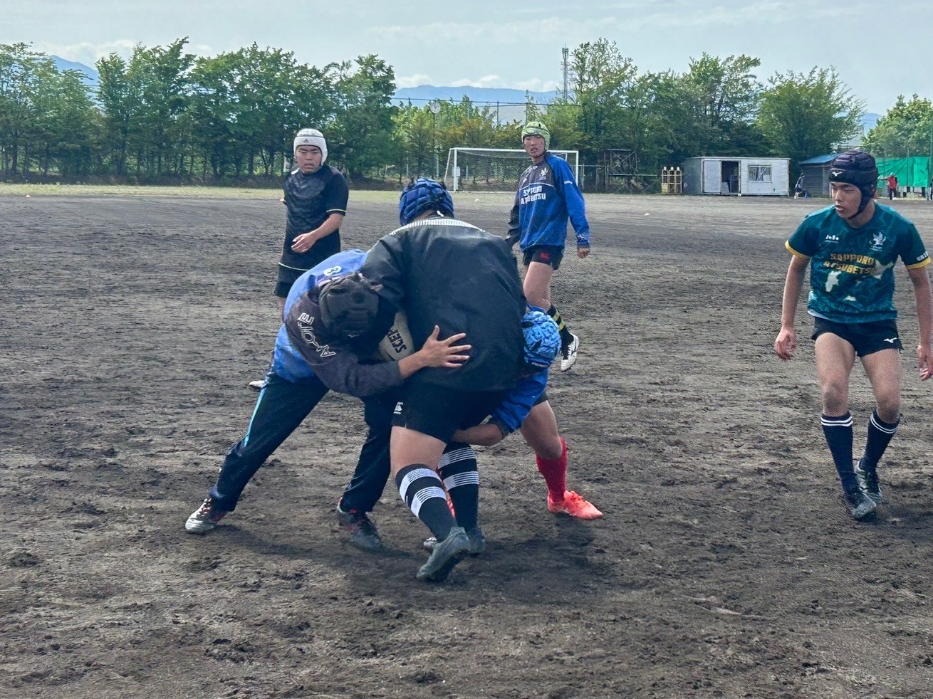 BKが指導を受けている間はFWは札幌大学ラグビー部監督の袋井さんからスクラムの強化のために組み方や姿勢を指導して頂きました。