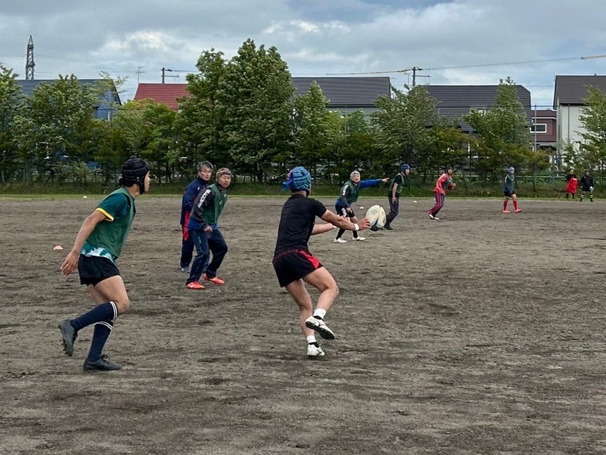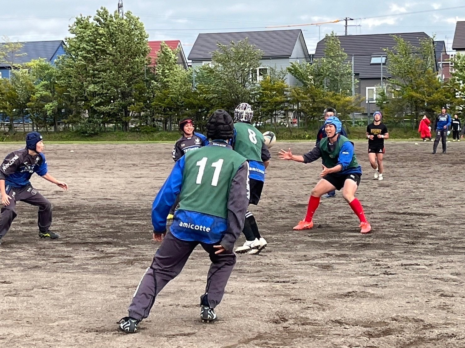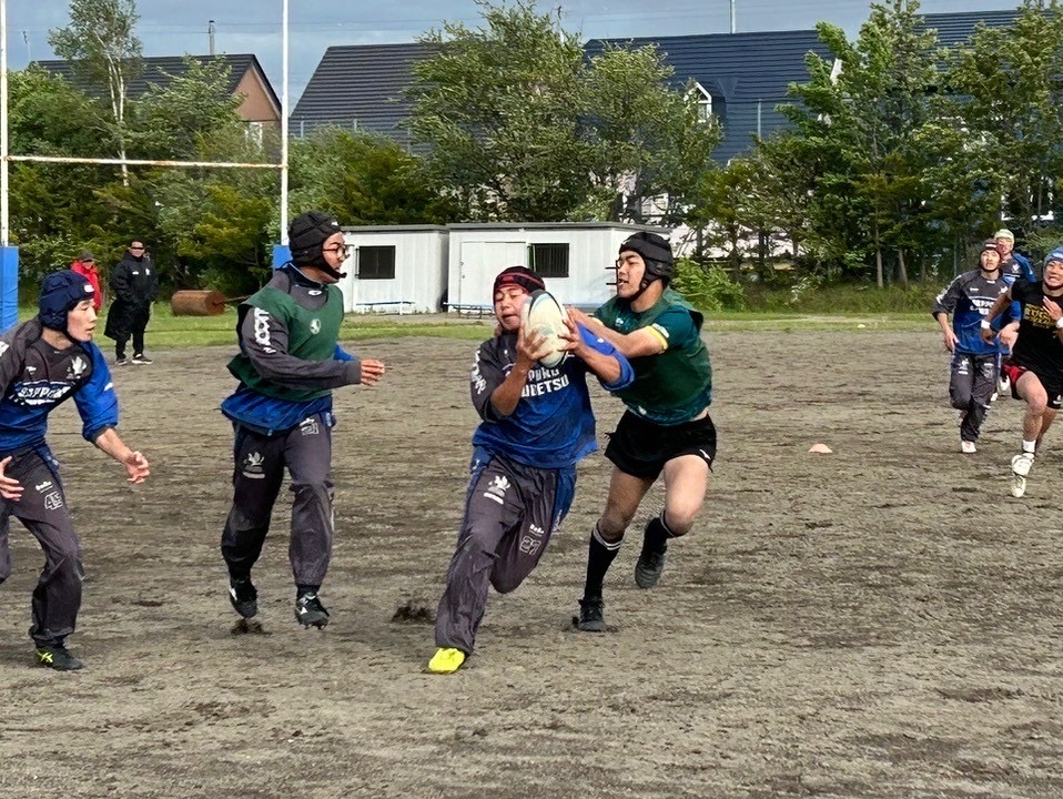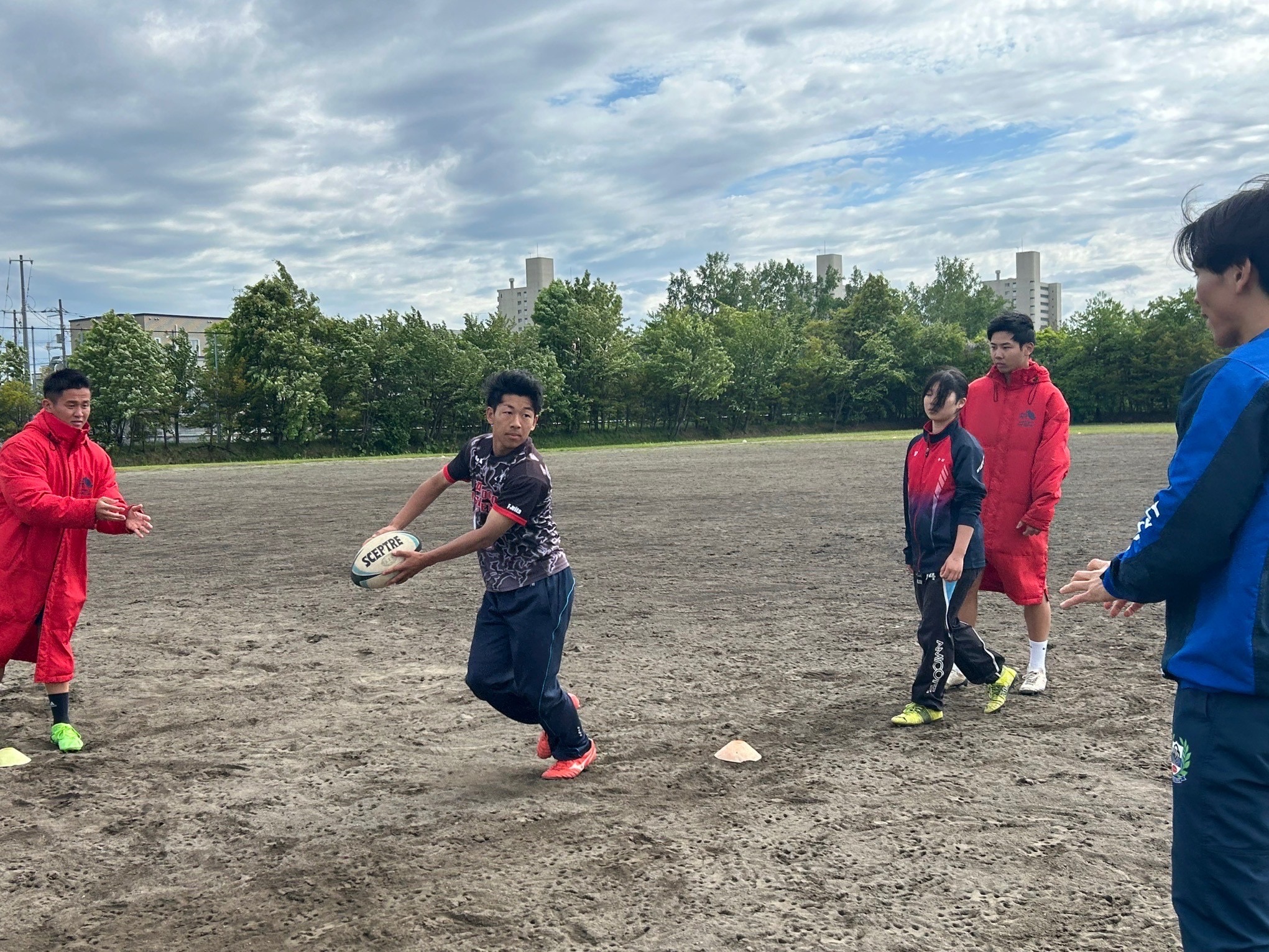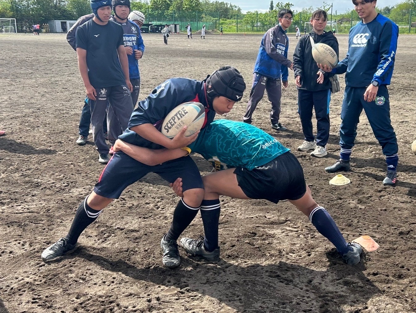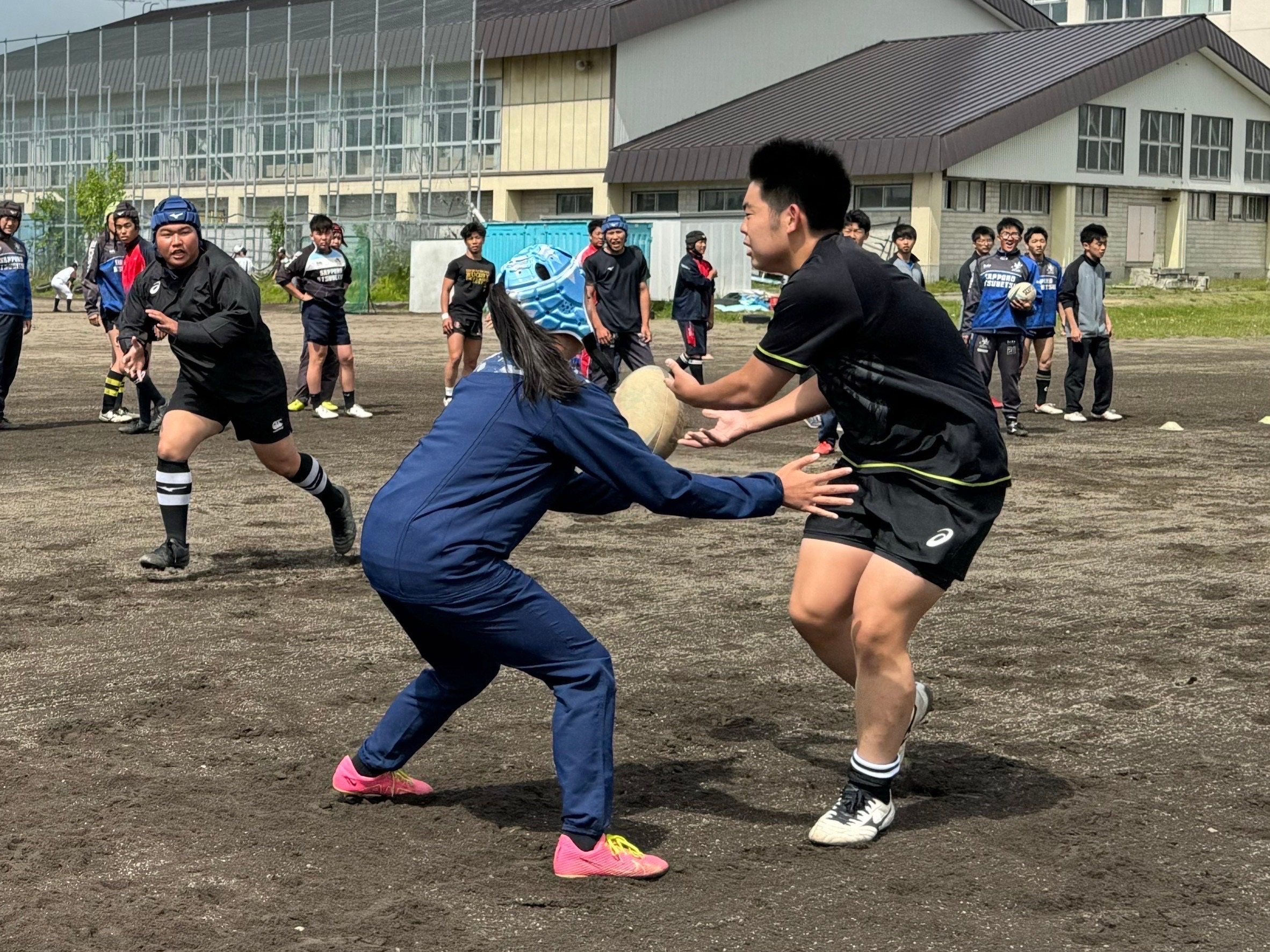 BKが指導を受けている間はFWは札幌大学ラグビー部監督の袋井さんからスクラムの強化のために組み方や姿勢を指導して頂きました。