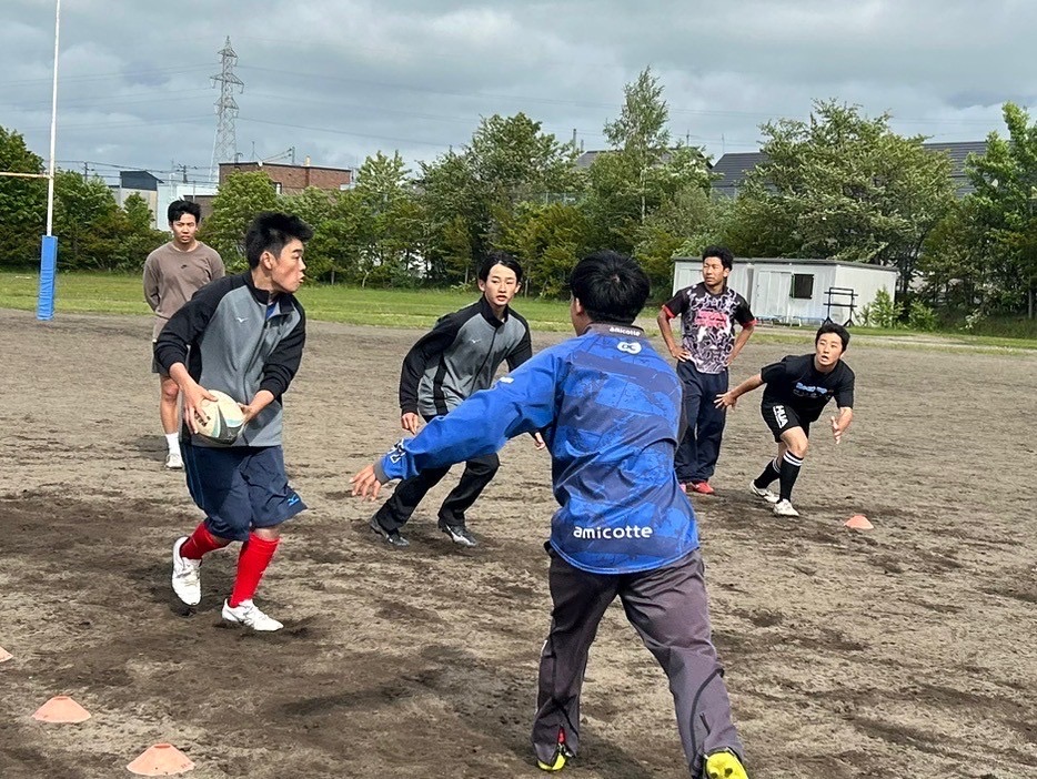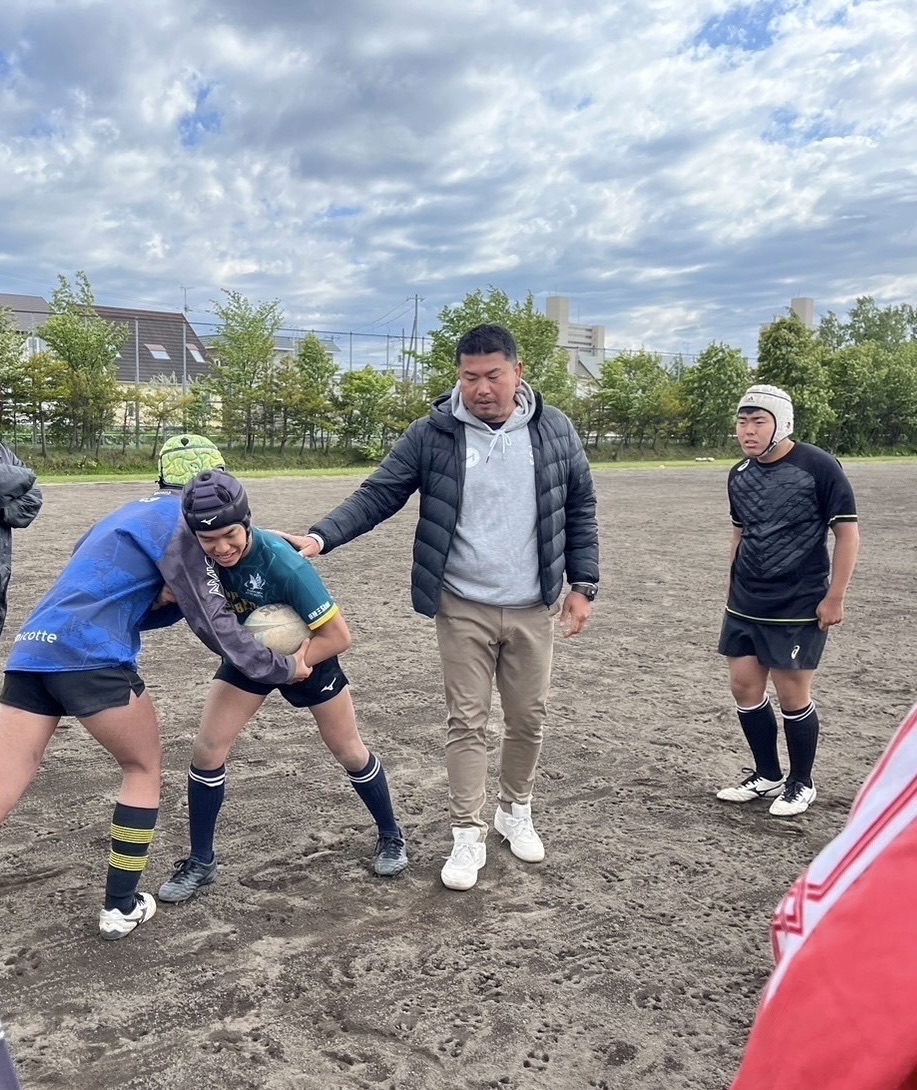 札幌大学のラグビー部監督である袋井さん、竹内SCコーチ、竹内さんの大学の後輩である石原さんが来てくださいました。