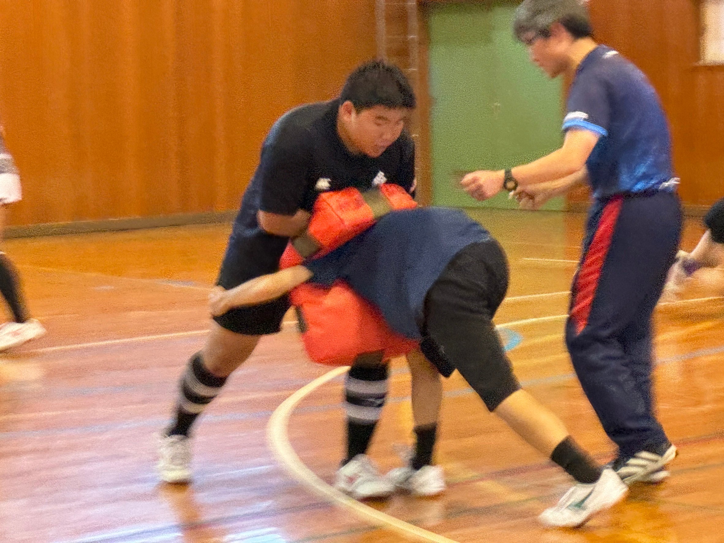 次に連続タックル練習を行いました。ハードな練習になりました。練習時間確保のため素早く練習しており、体力回復が不十分で途中疲労が見られました。体力をつけるためにも限界突破して取り組みましょう。