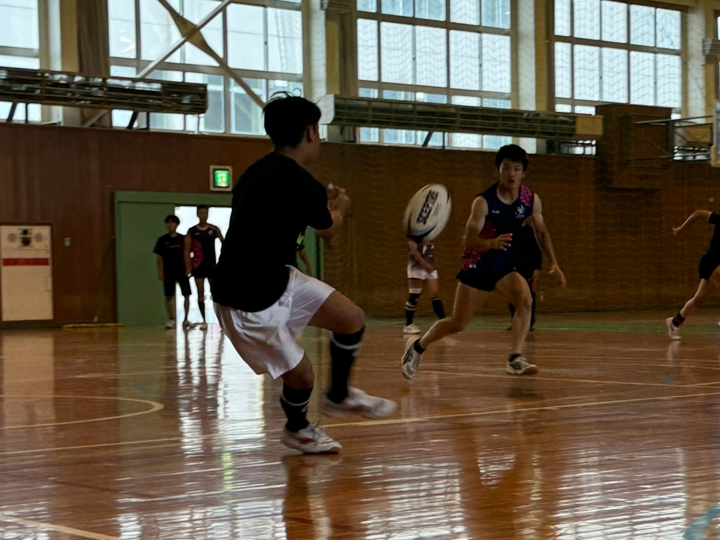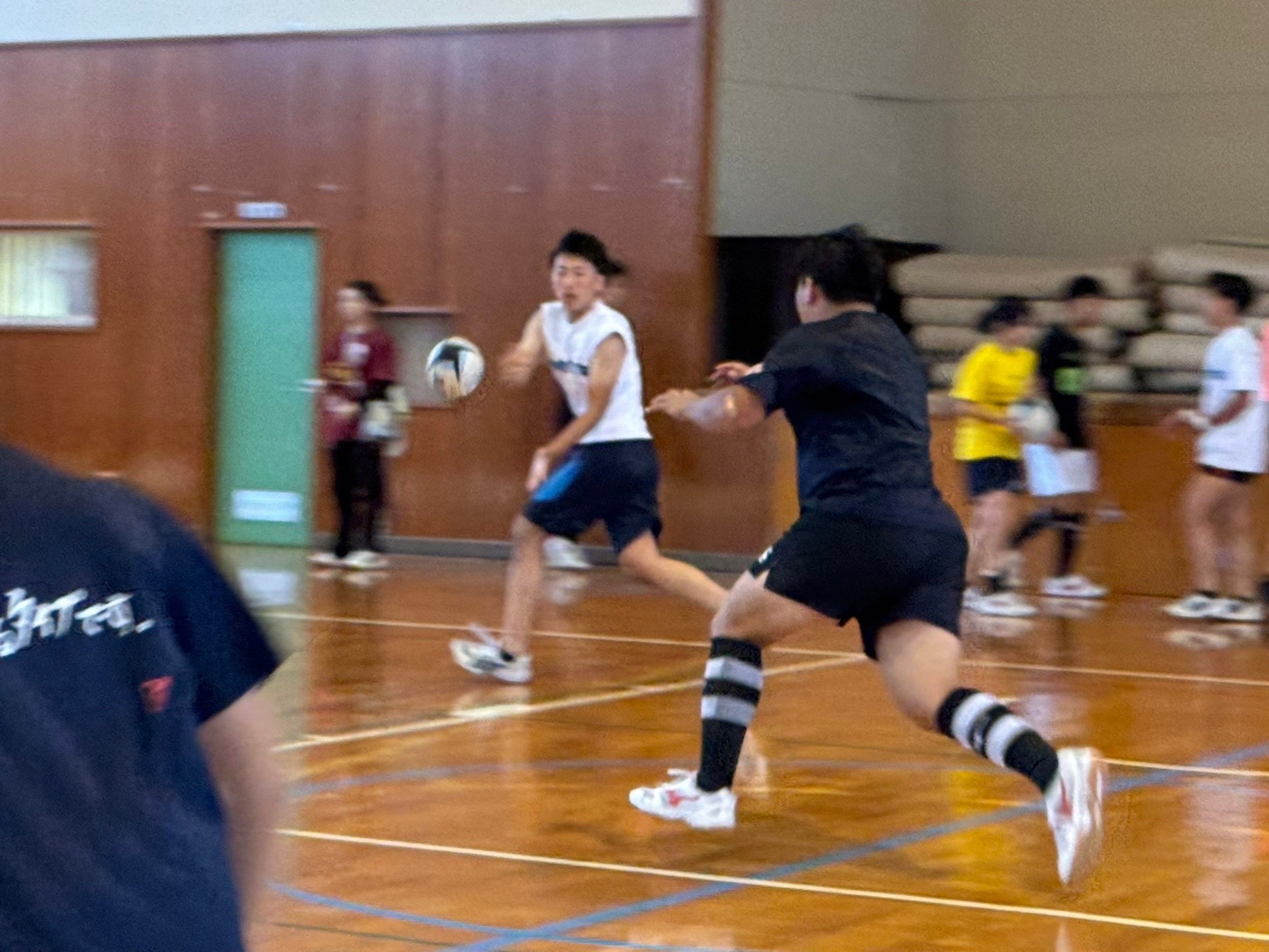 まず4人1組のハンドリングを行いました。キャッチする選手はボールを真上かつ丁度いい高さで放り、パスする選手も正確な位置に放りましょう。