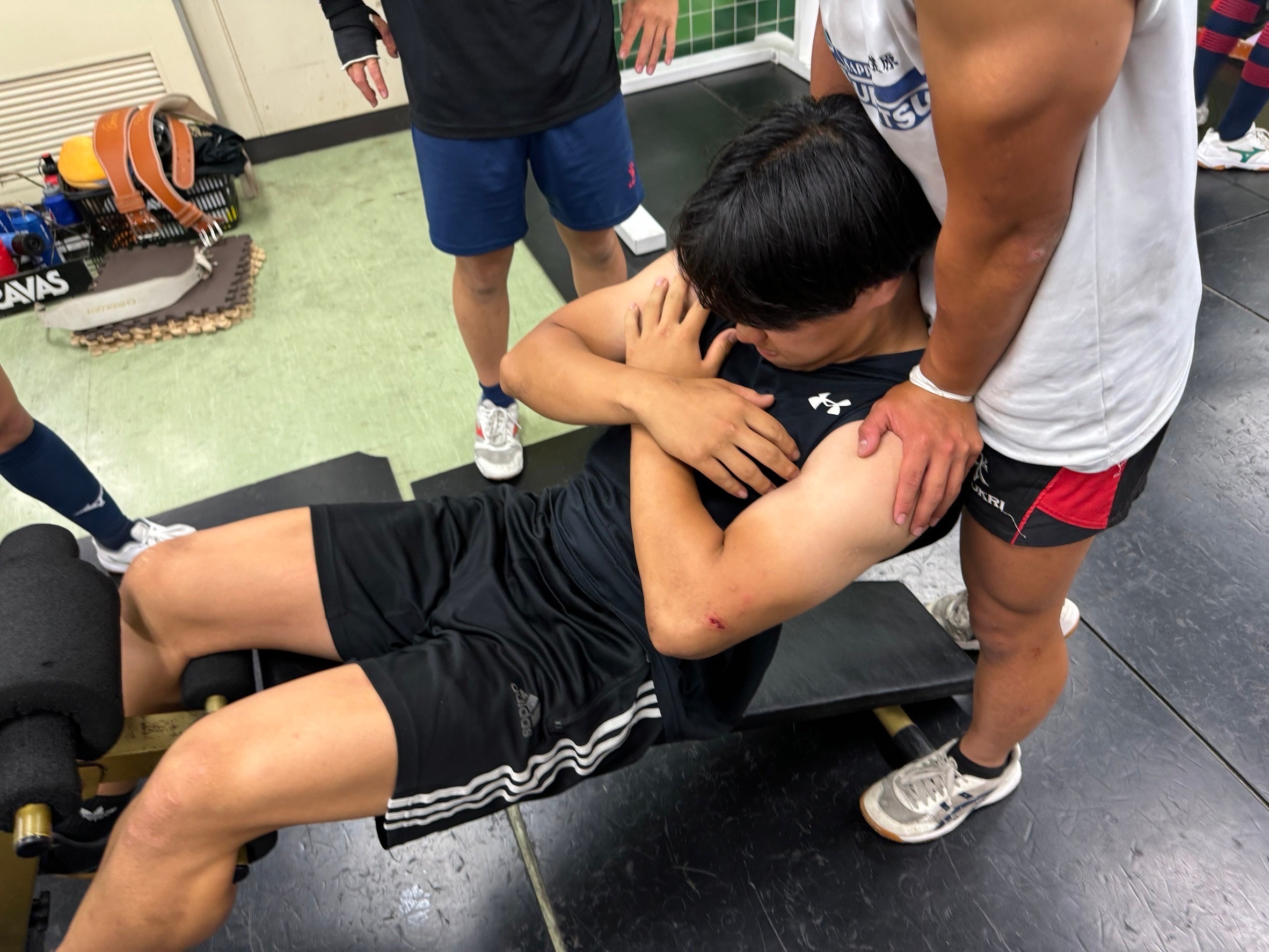 その後SCに移りました。疲労が溜まっていましたが、チームごとに雰囲気をつくれており質の良いトレーニングとなったと思います。3年生に隠れつつある2年生は積極的にウエイトに取り組んでいたので、グラウンドでも発揮できるようにしましょう。1年生は体重増加に努めていきましょう。