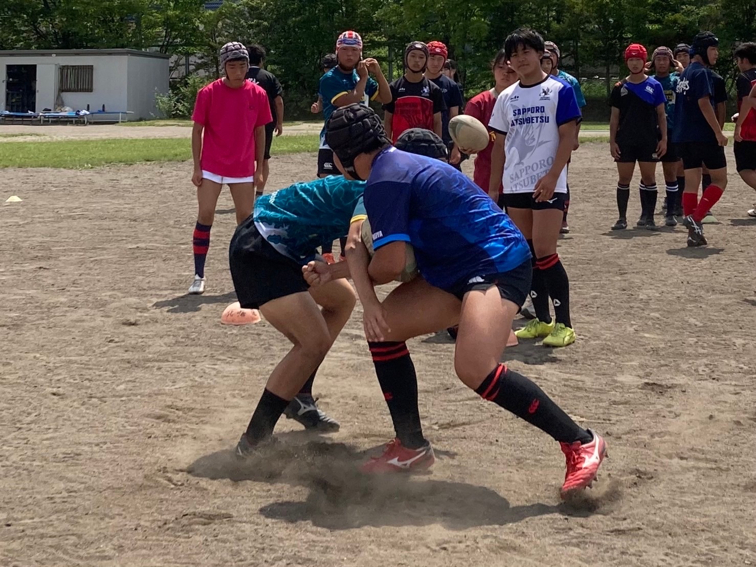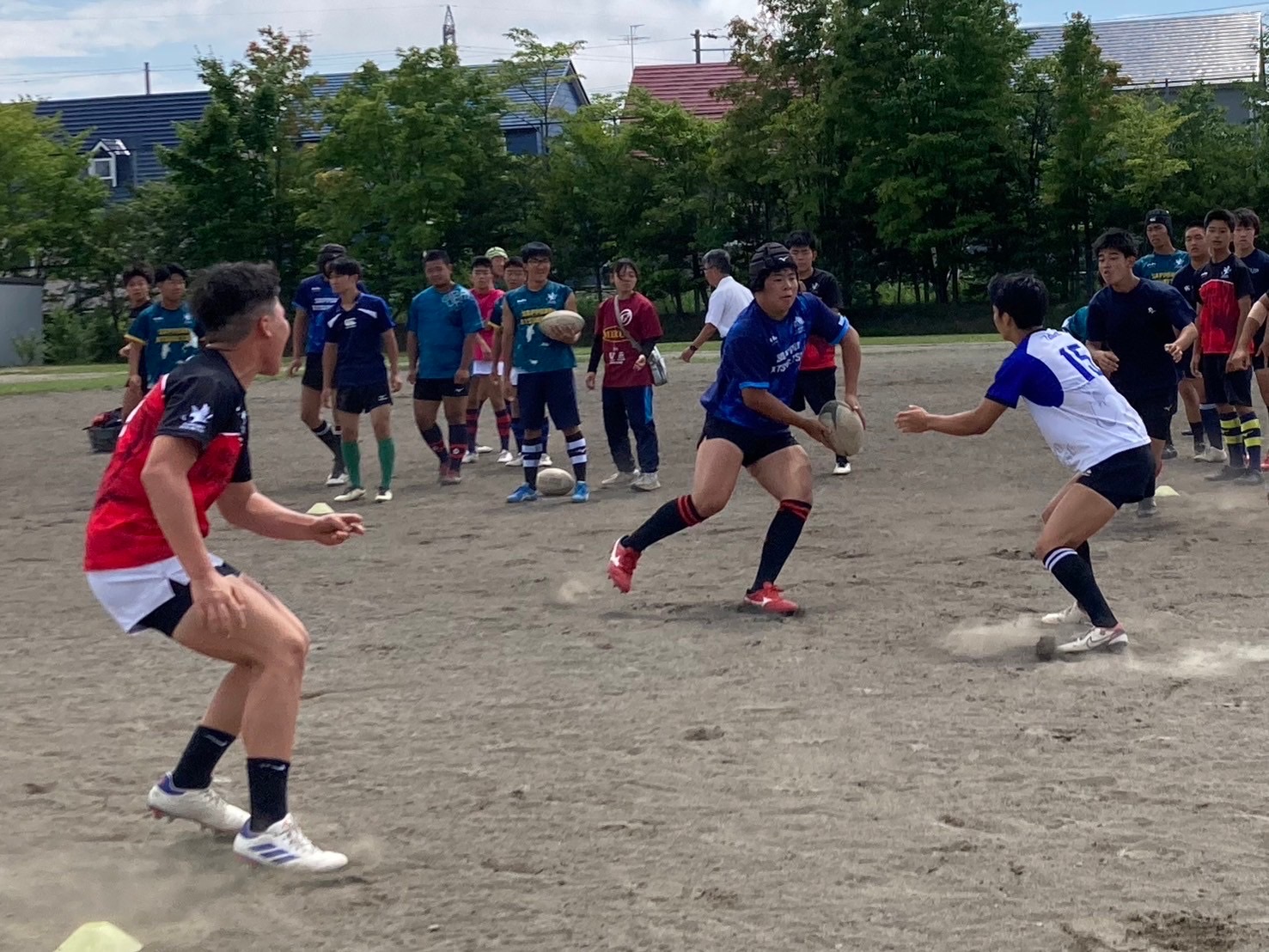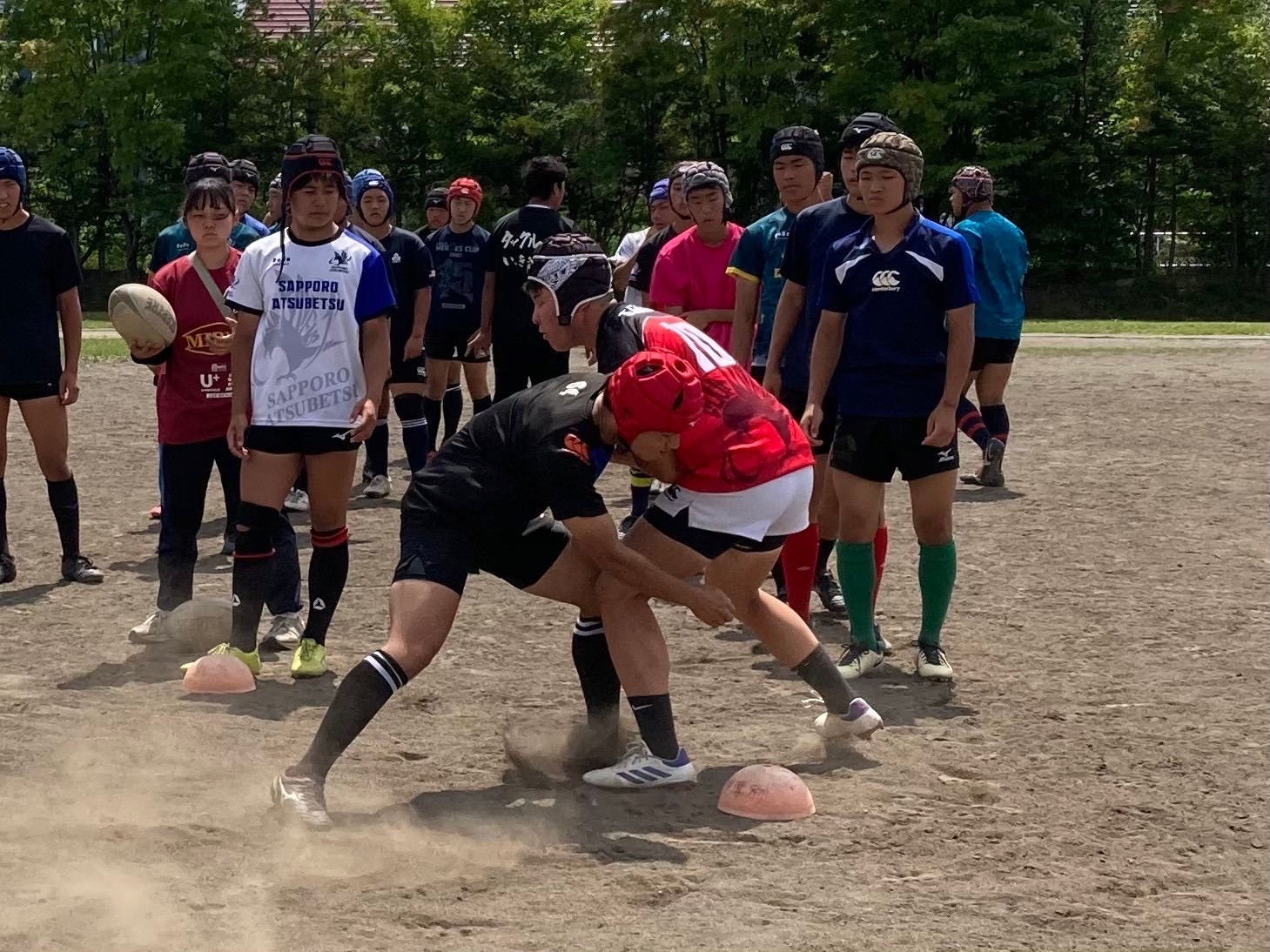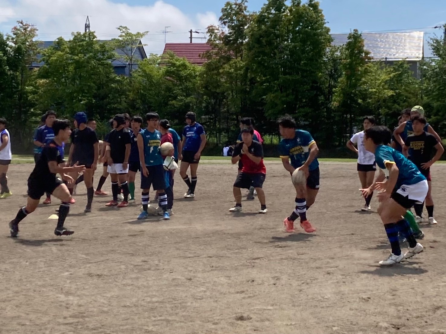 次にユニットを行いました。FWはスクラム、ラインアウトの確認を行いました。BKはアタック・ディフェンス練習を行いました。その後ユニットごとにお互いのディフェンスを行い、戦術を試しました。