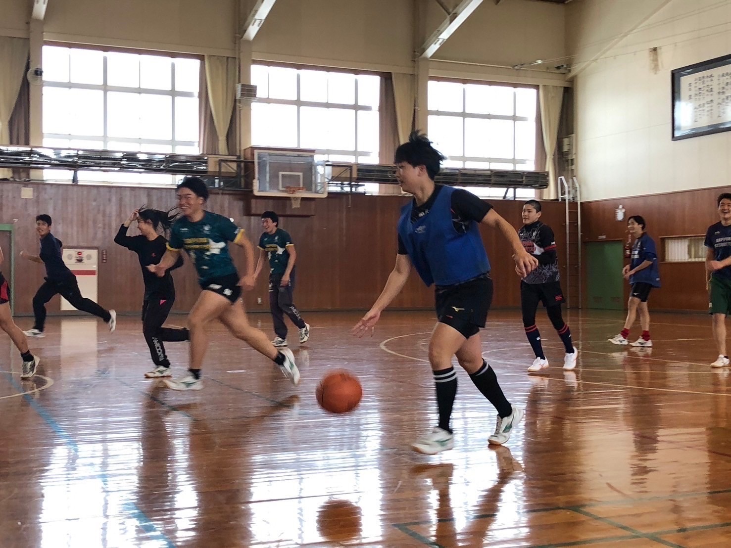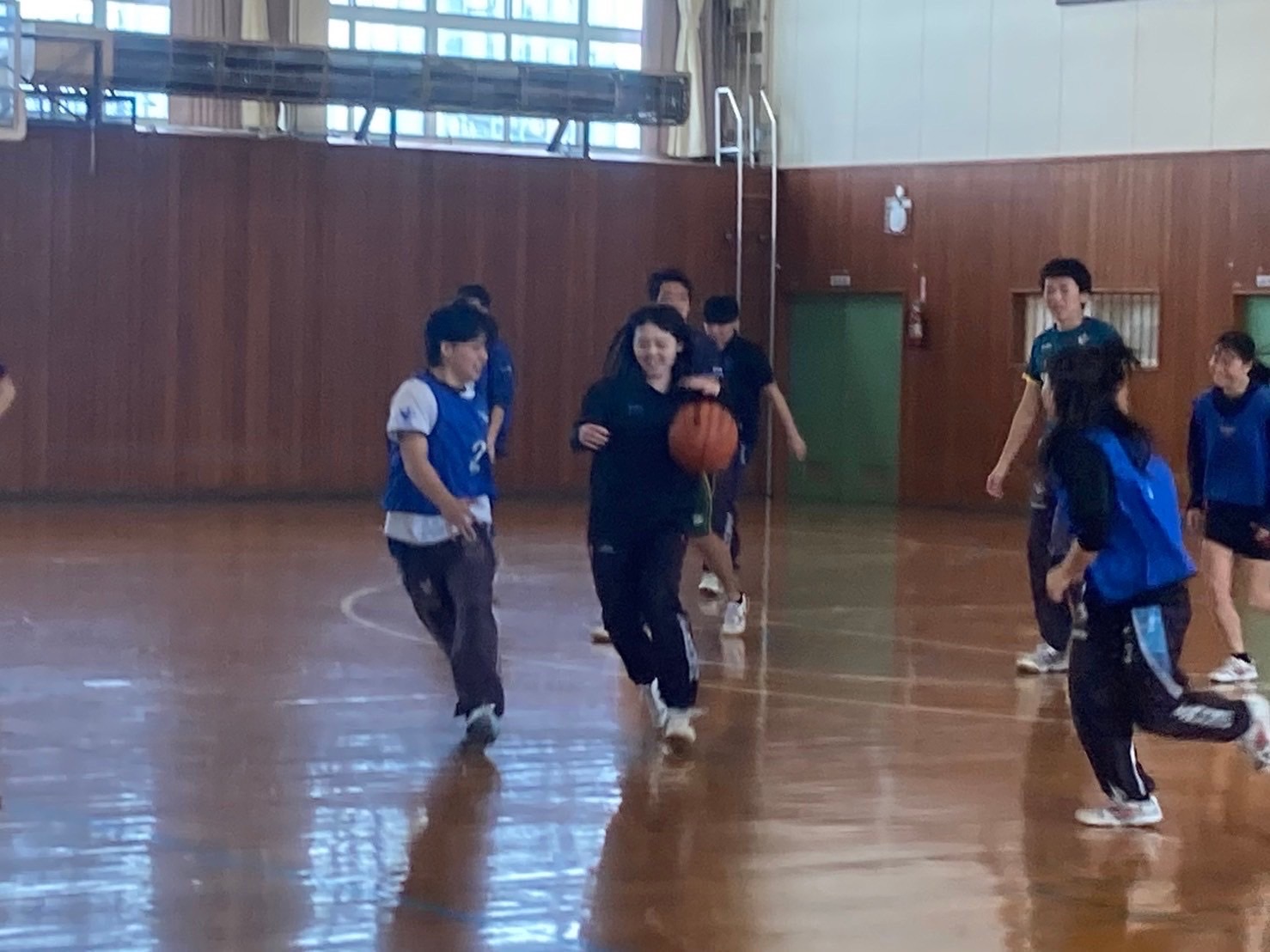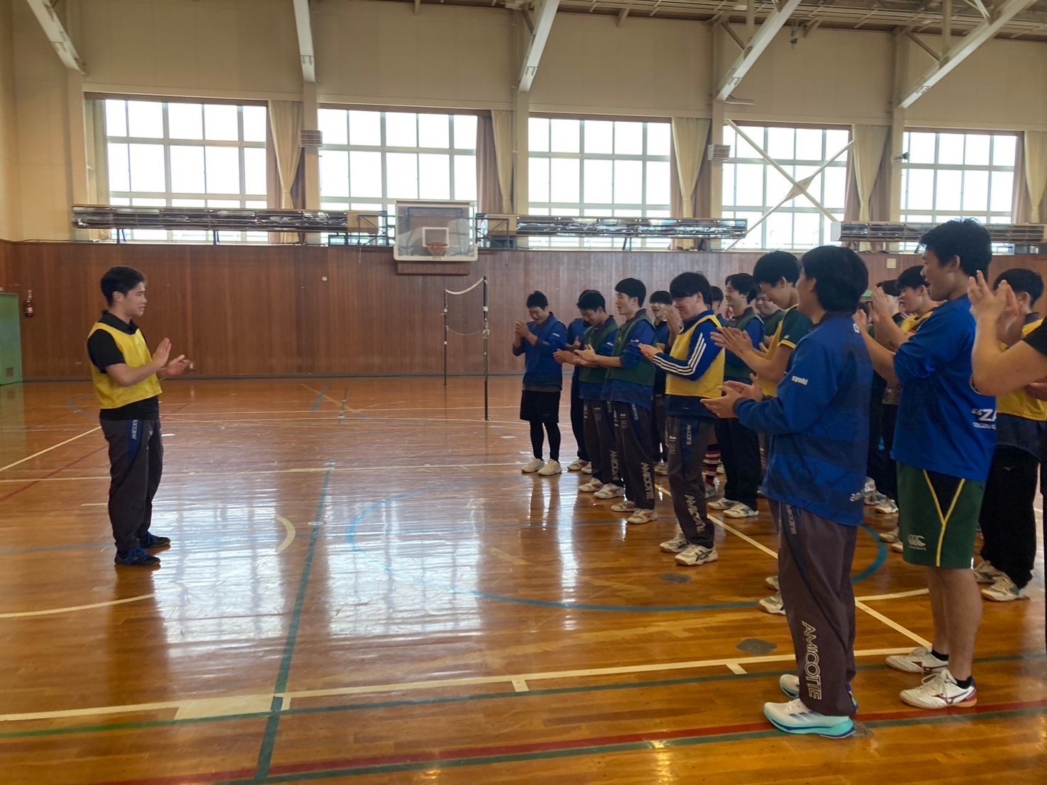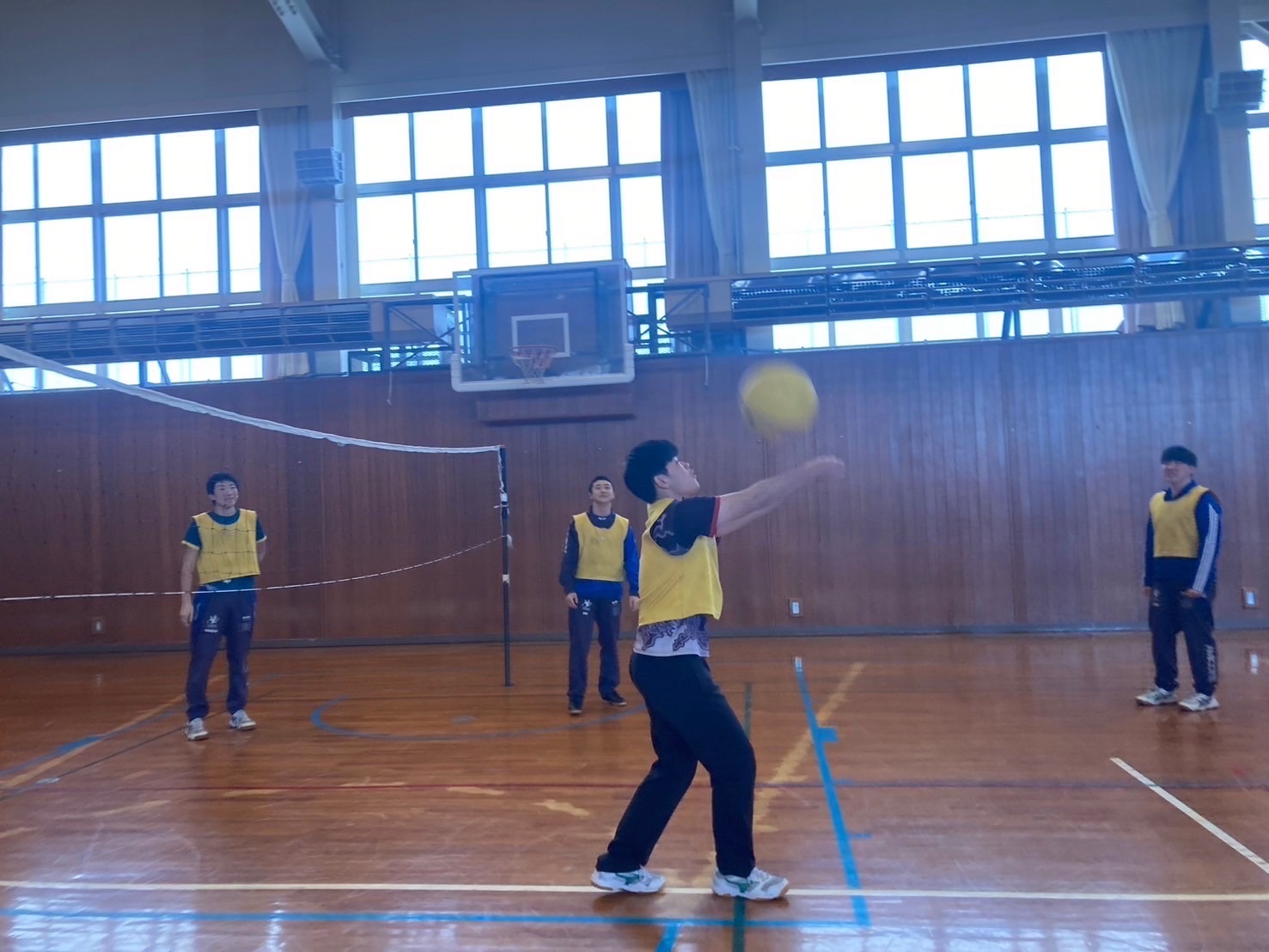 スポーツレクでは、ラジオ体操を行った後、ミニバレー・ドッチボール・バスケの3種目を行いました。各学年混合でプレーする事で、今1度チームの仲を深める事が出来ました。一人一人積極的にボールに触り、みんなで楽しんでいる様子が見られました。3年生が来て下さる事は当たり前ではないので、感謝して一緒に楽しんで取り組みましょう。レク等の時間を大切に過ごし、今後も沢山仲を深めていきましょう。