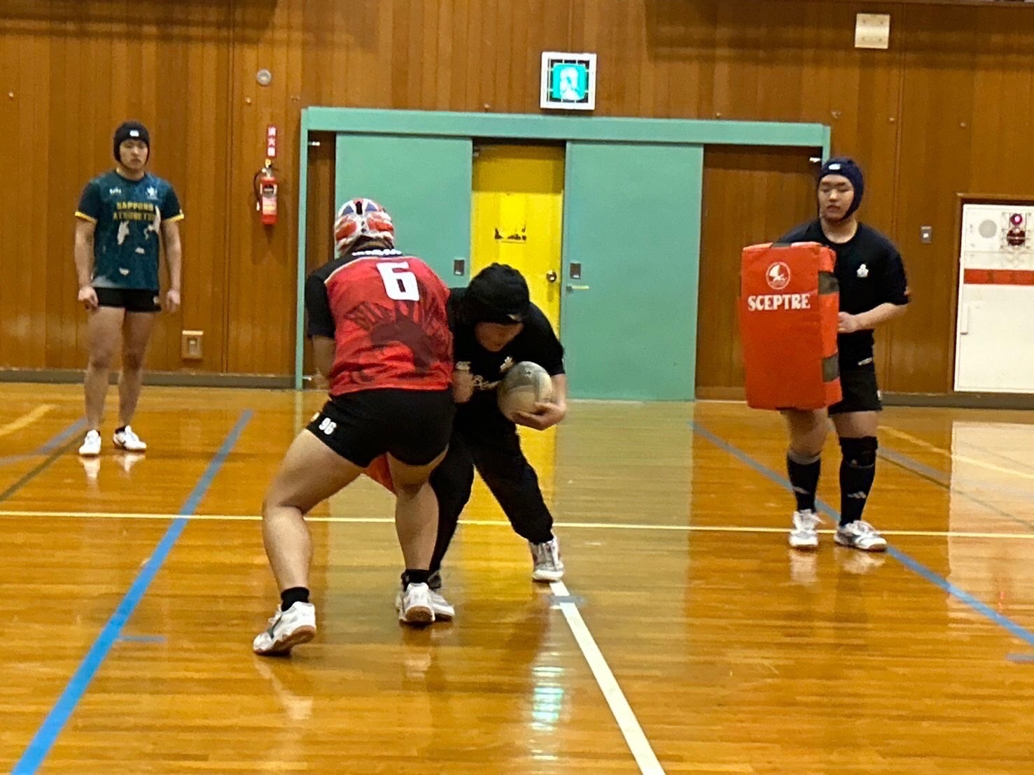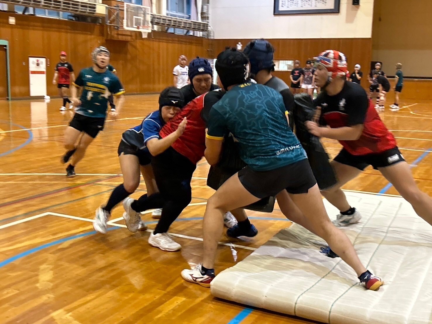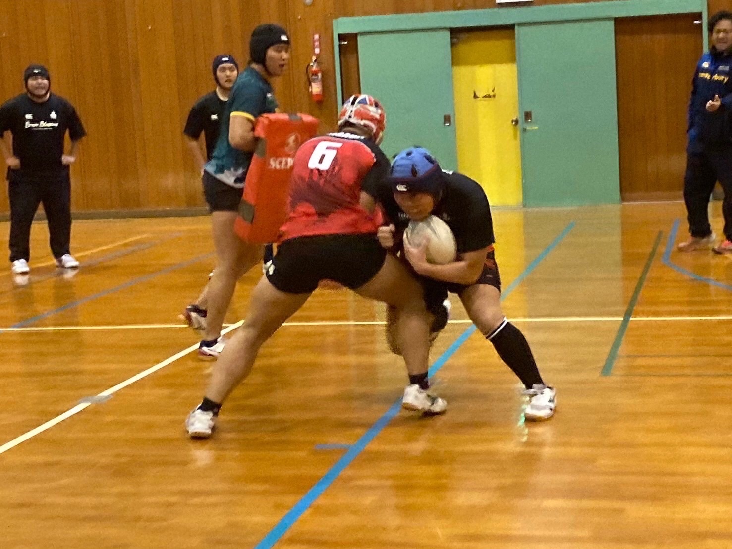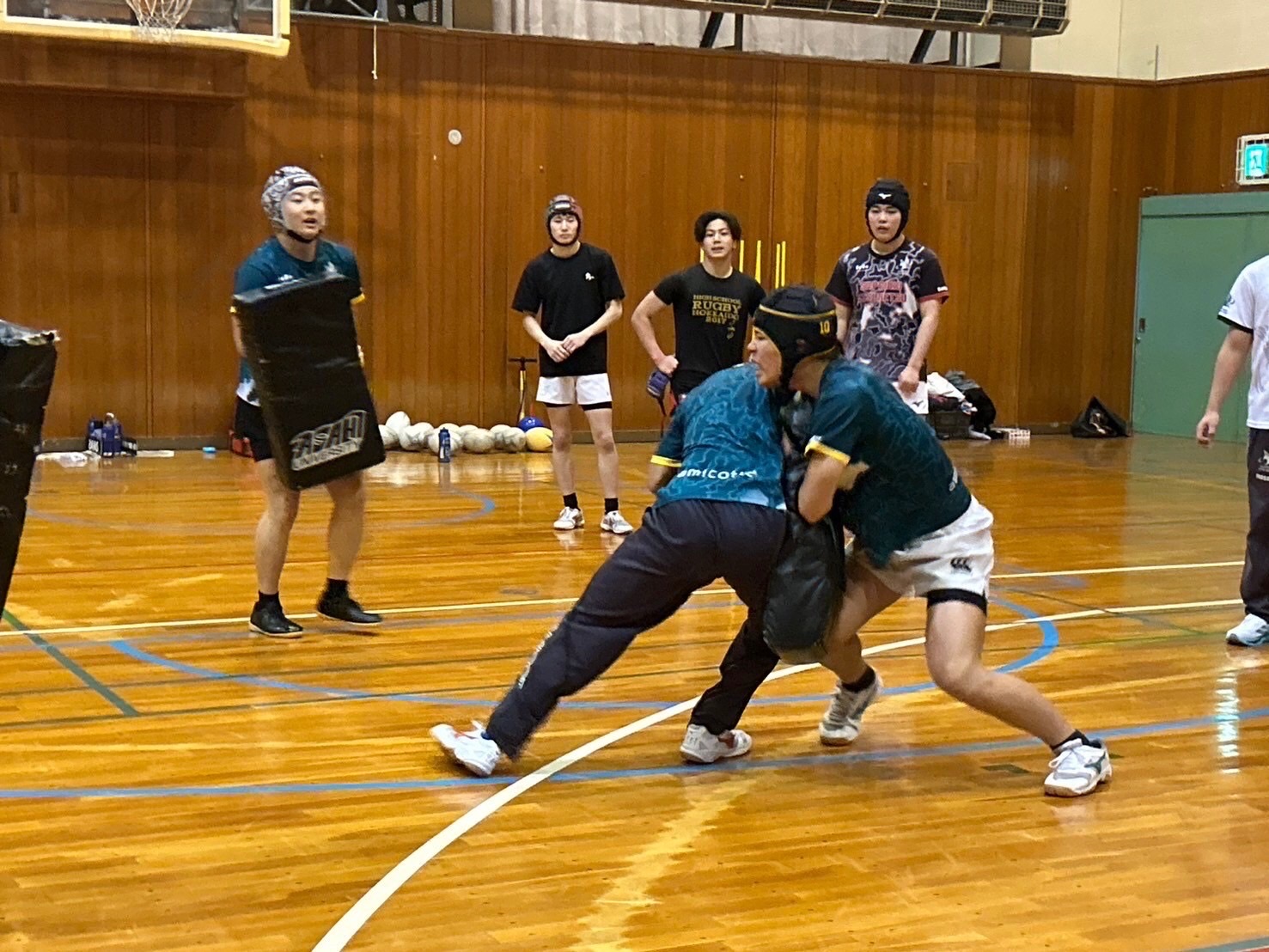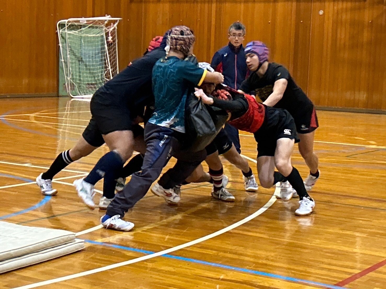 ブレイクダウン練習では低さを意識し、鋭くパックに入り込みましょう。3人で1つの塊になって力を増大させられるようにコミュニケーションも必須だと思います。佐々木先生からは味方の力が倍になるようにしよう、お尻を離れないようにする事とお話しを頂きました。島崎さんからは2番目、3番目に入り込んできた人が先頭にいる人の方向を導く事とアドバイスがありました。堀先生からはサポートのコース、肩の位置、頭の向きなどのアドバイスがありました。明日のゲームで今日の練習が活きるように各自復習しておきましょう。