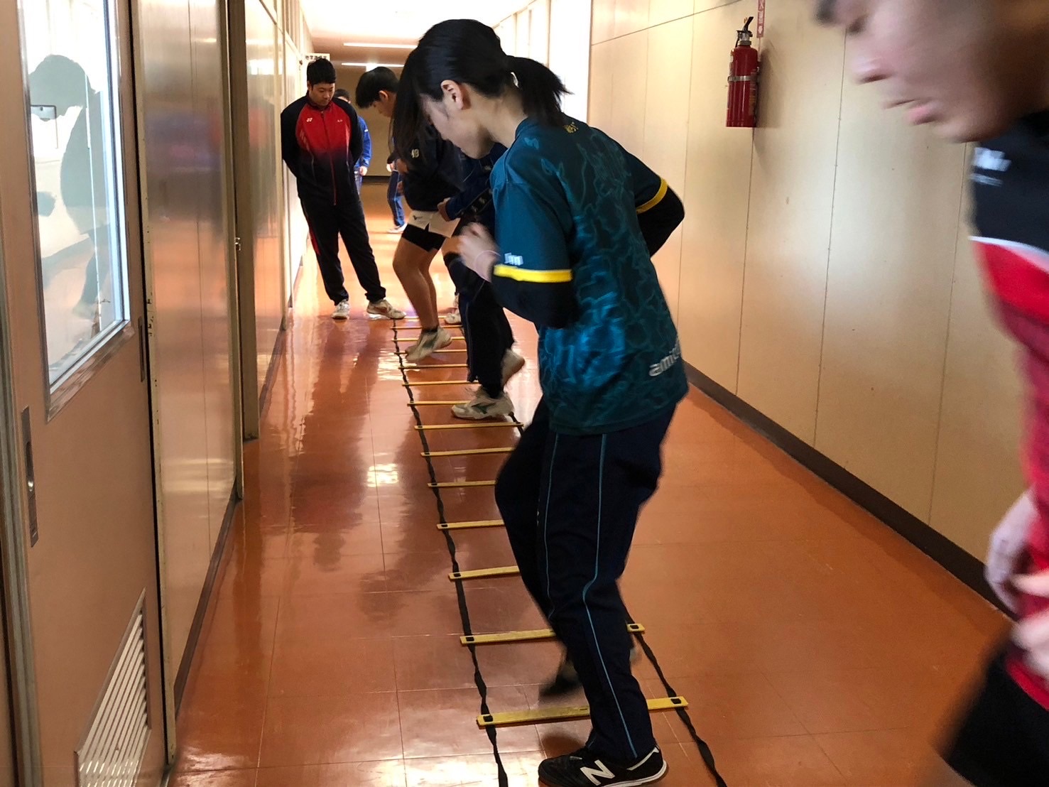 SCはラダーから行いました。腰をしっかりと振る事やリズムよく足を刻めるように足の接地面を考えましょう。