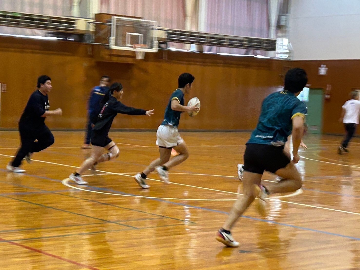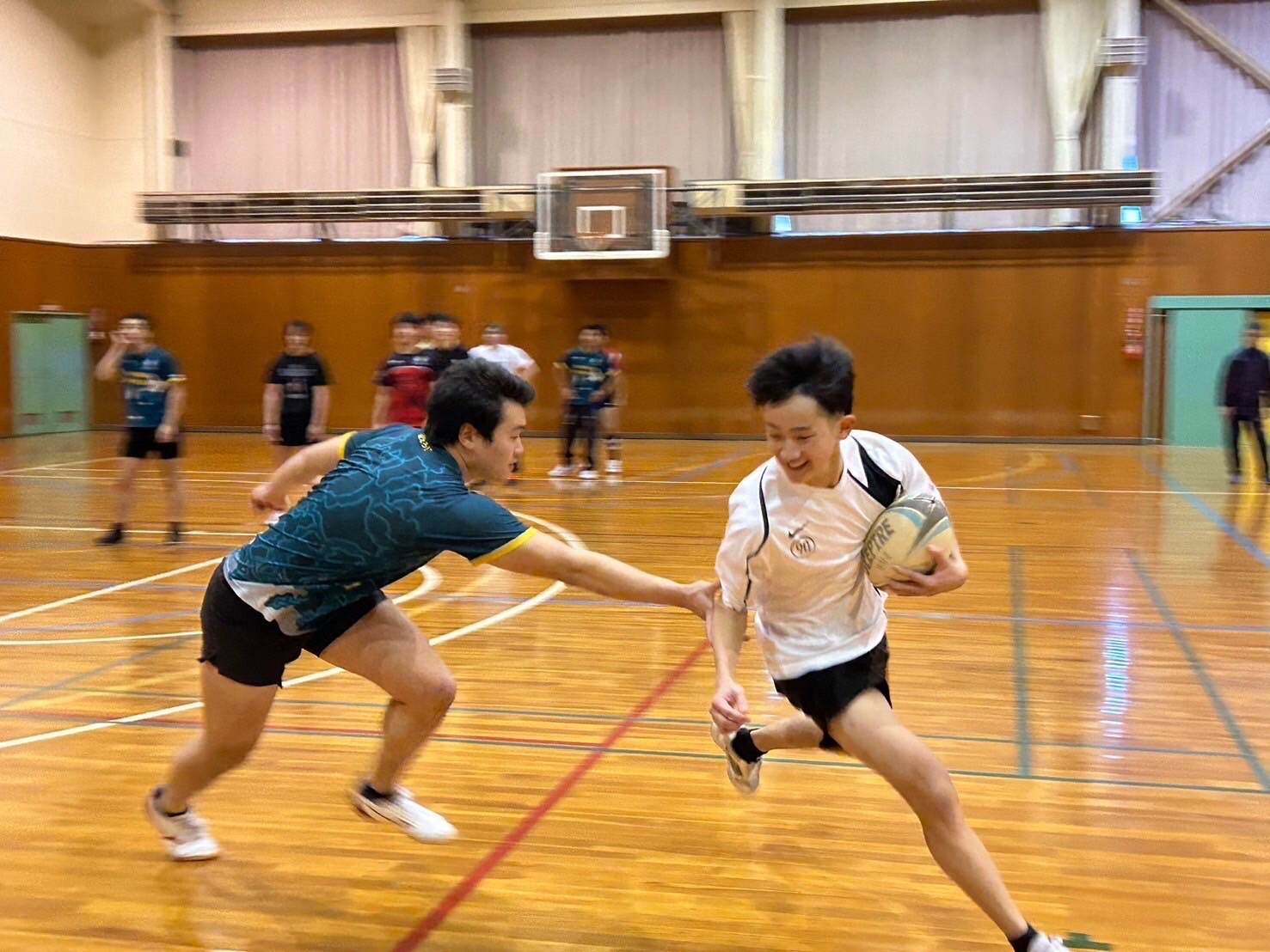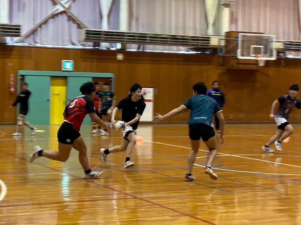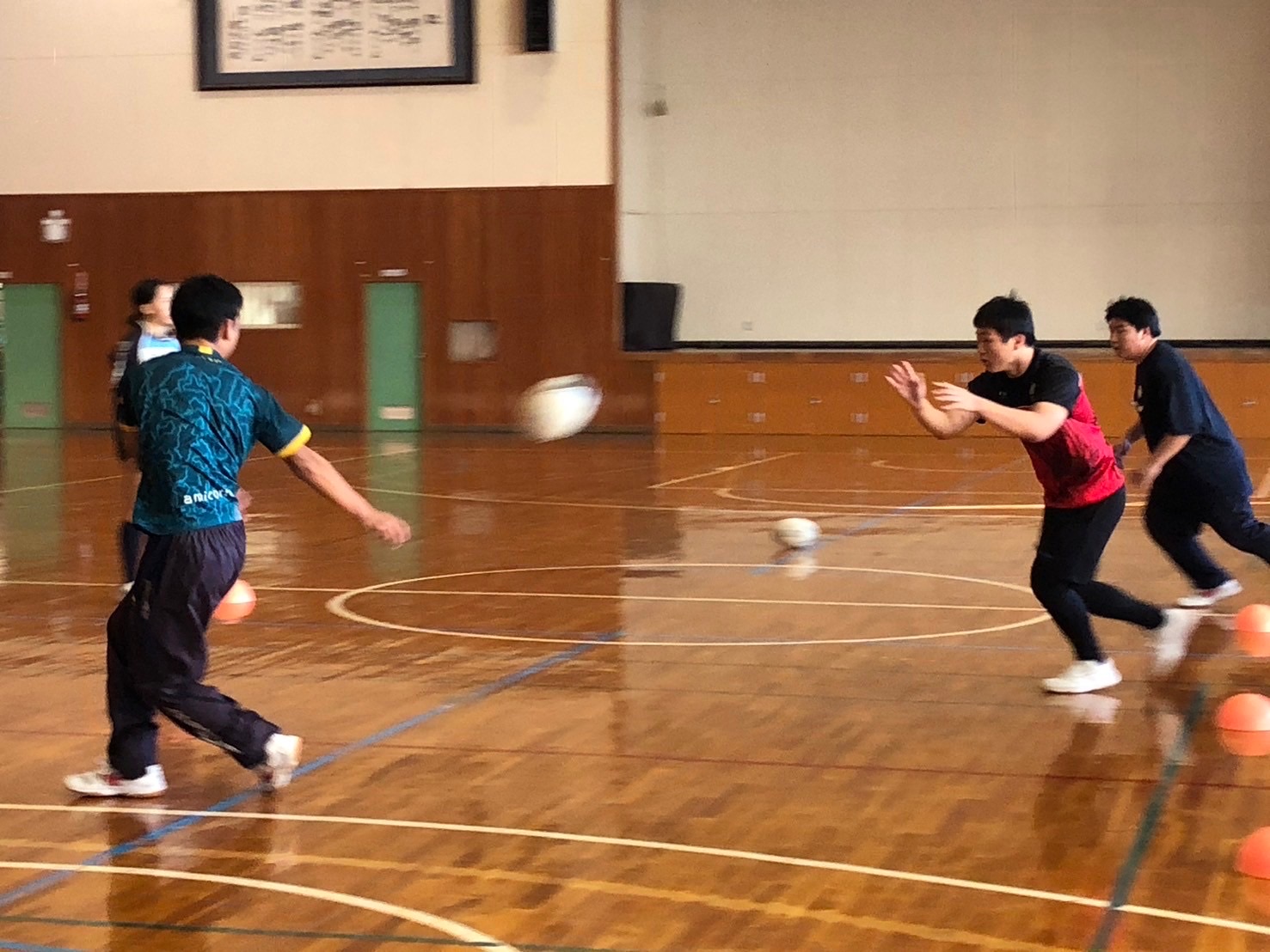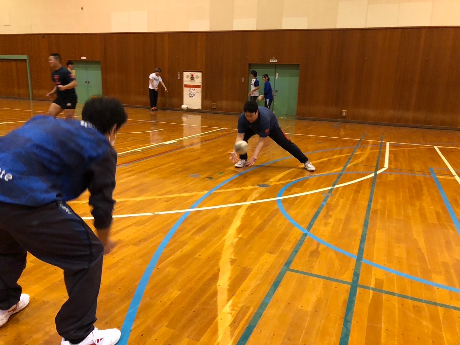 次に2人1組でルーズボールの練習を行いました。不規則な動きのボールを予測して一生懸命追いかけましょう。ルーズボールは誰の物でもないので絶対に取るといった、強い力を持って練習しましょう。佐々木先生からはルーズボールを保持してからの動きまで意識する事やボールを持った瞬間に前を見るとアドバイスを頂きました。ポイントを意識しましょう。