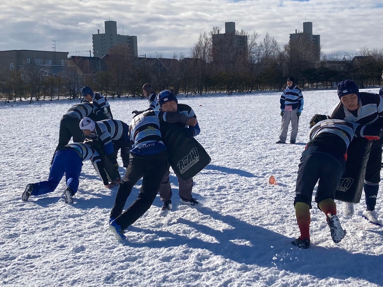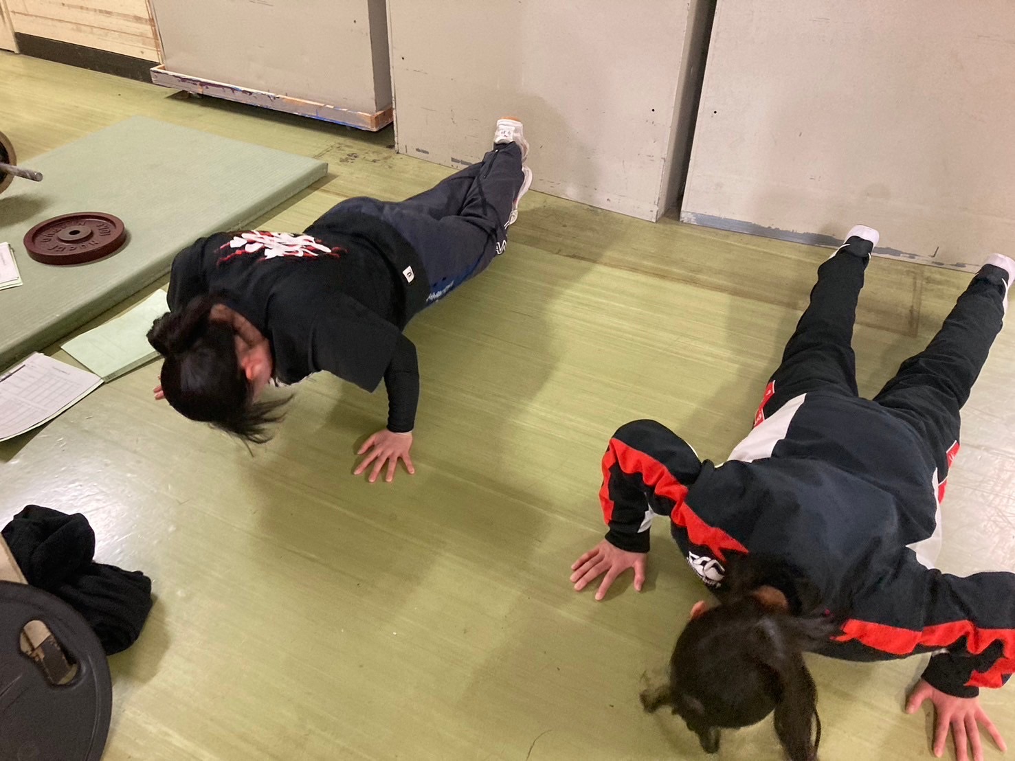 SCでは、グループの仲間へ厳しい声掛けをし、追い込んでいる姿が見られました。限界に達しても、そこから根強く頑張り、筋力アップを目指しましょう。冬シーズンの間で体を大きくするよう取り組み、自分よりも大きい相手とも戦えるような体づくりを行っていきましょう。