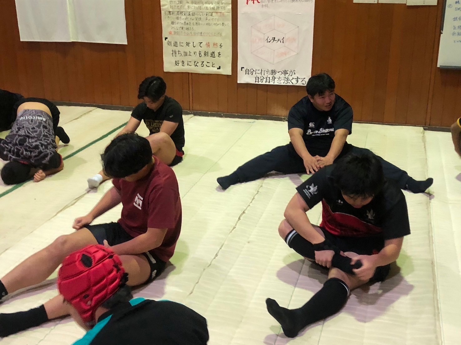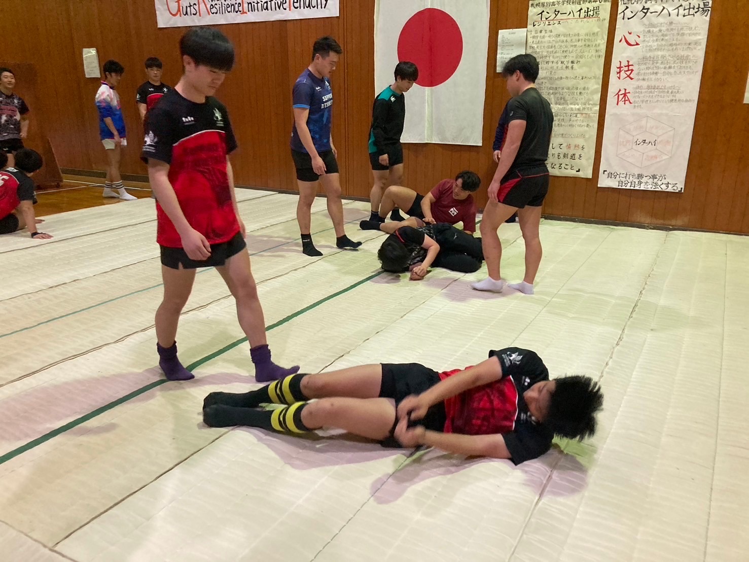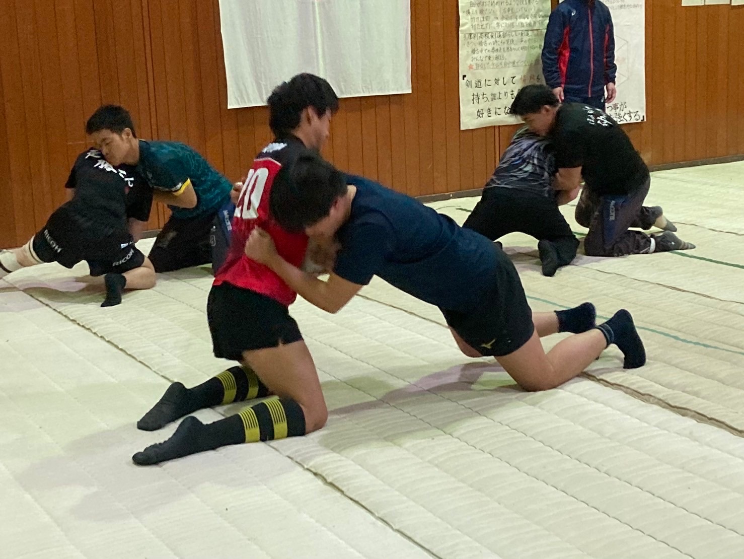 接点からのロングリリースの練習を行いました。堀先生からは、ジャッカルのポイントはフットポジションに足の位置を近づける事だとお話をして頂きました。足の位置に意識を向けて取り組んでいきましょう。ボールキャリアは肩を切るようにして相手のホールドを早く剥がし、ロングリリース出来るように練習していきましょう。