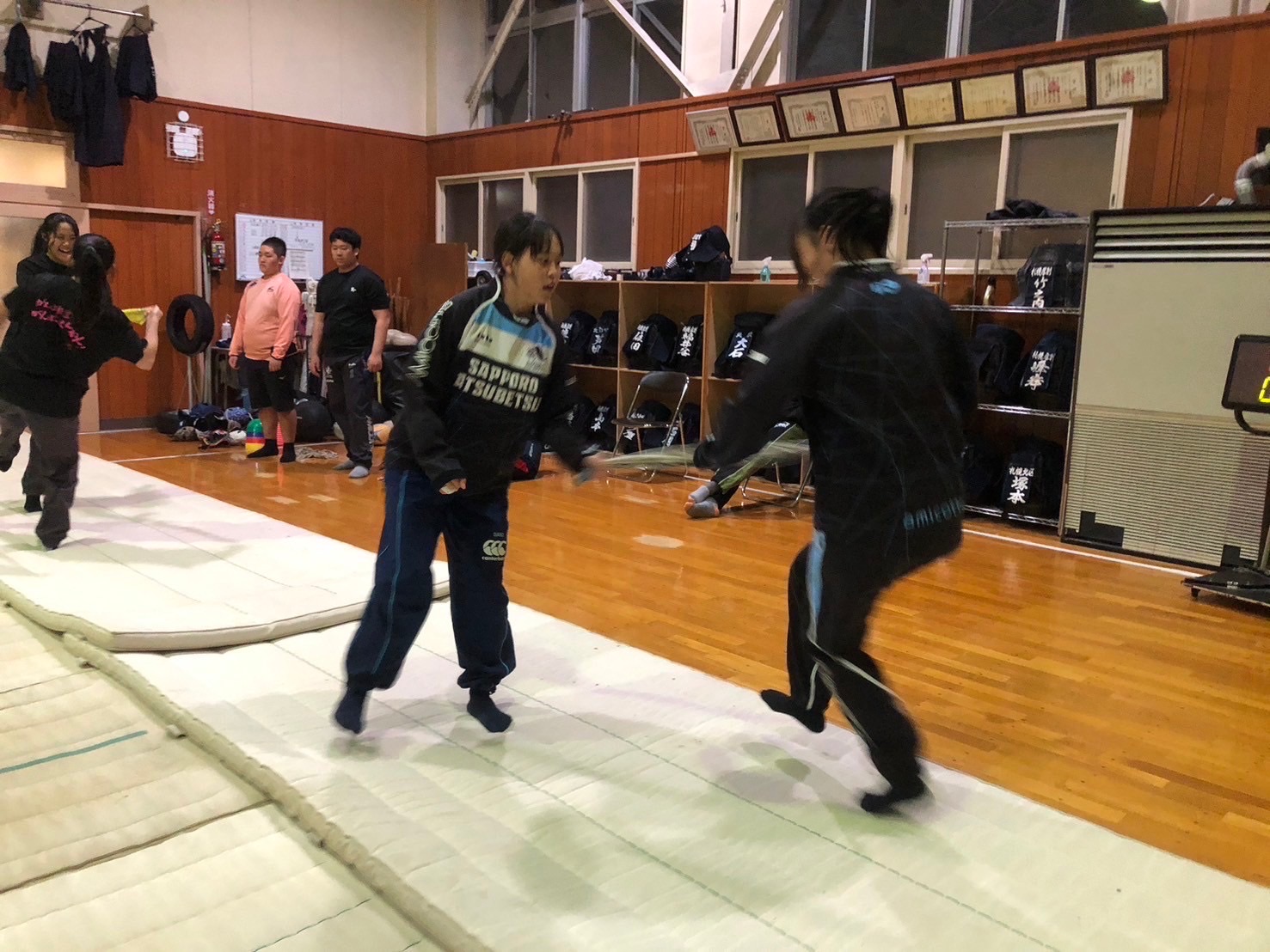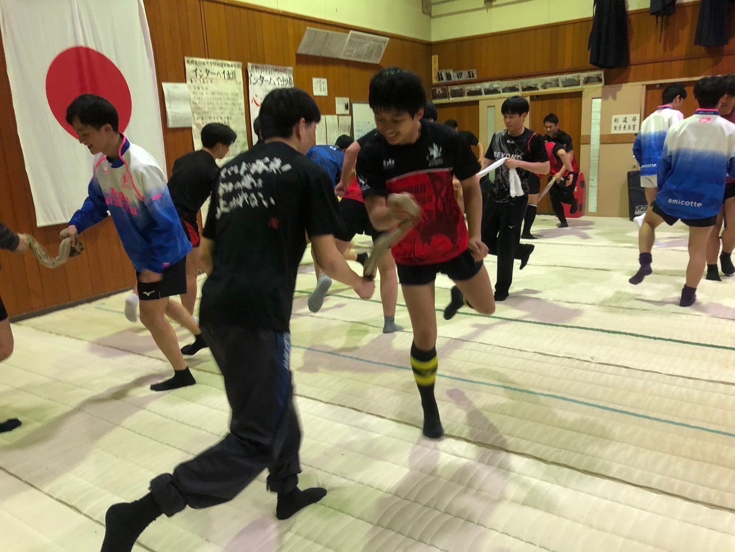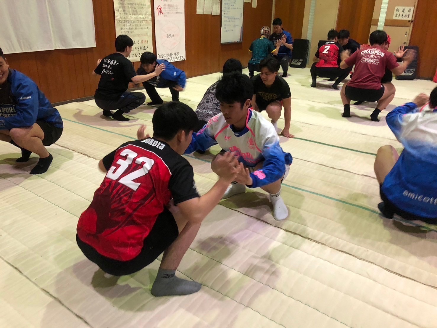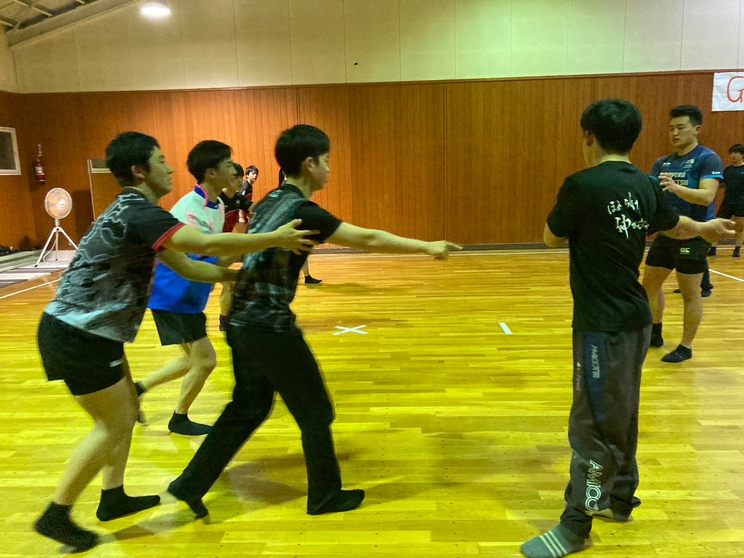 次にロングリリースの動きを身につけるために柔道の動きを取り入れました。お尻を勢いよく振り切り、素早く左右を切り替えられるようにしましょう。勢いが足りなく、振り切れていない選手も見られたので、思い切り振り切れるようにしましょう。