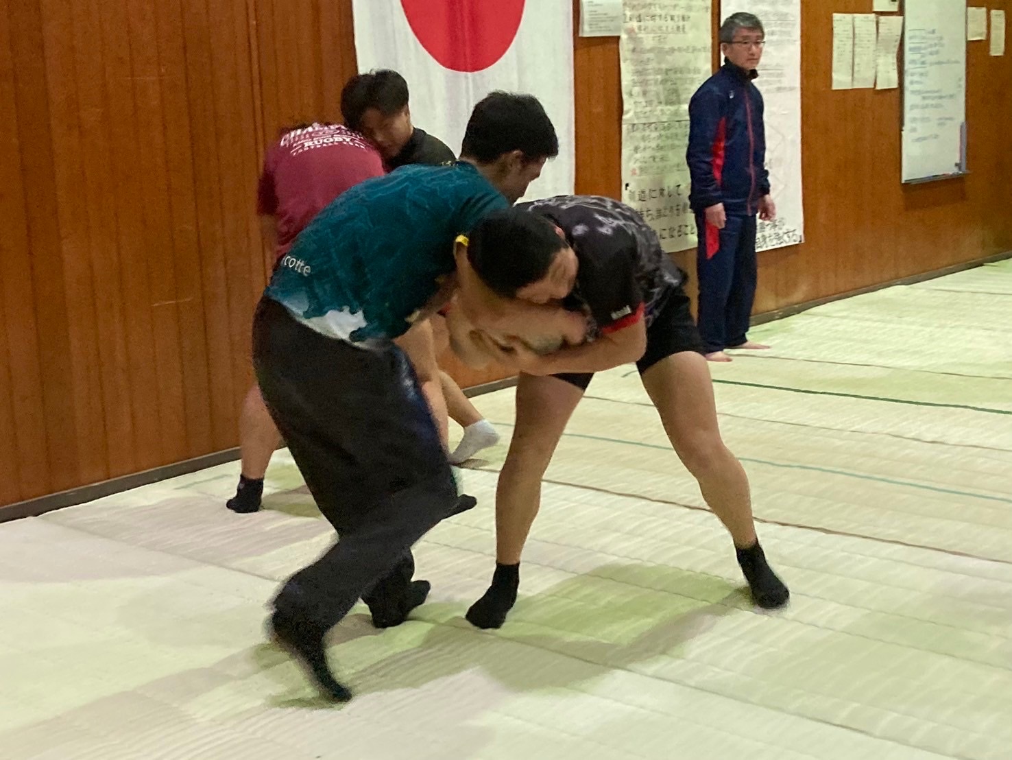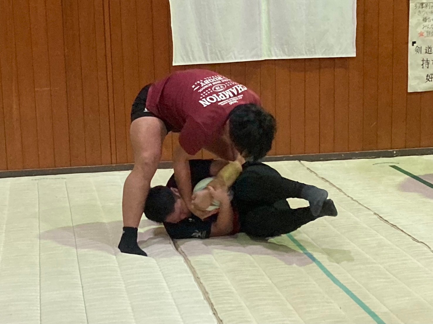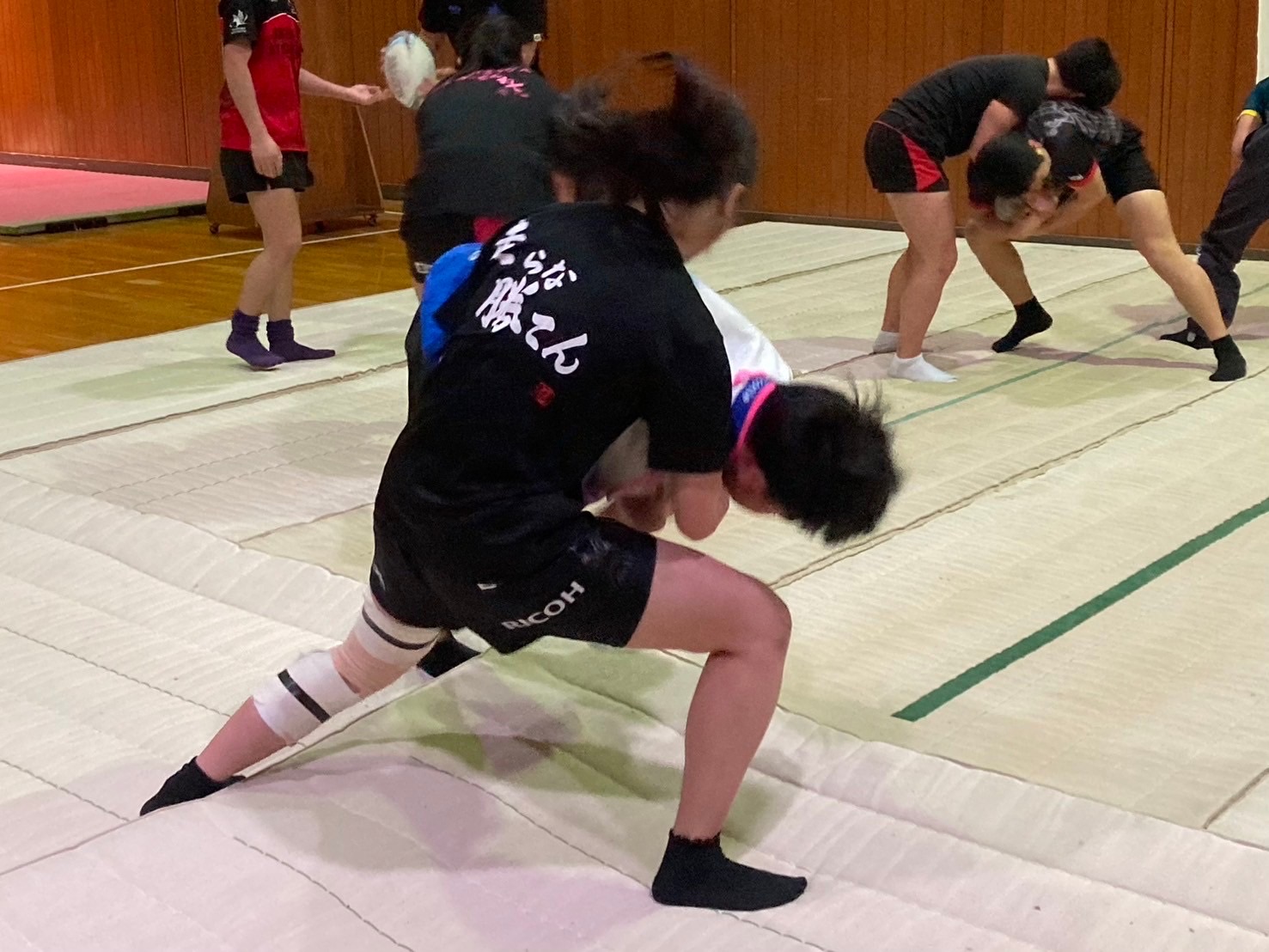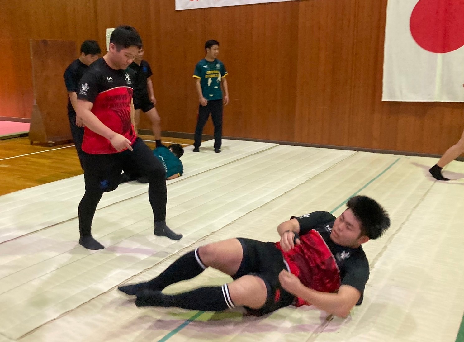 次にロングリリースの動きを身につけるために柔道の動きを取り入れました。お尻を勢いよく振り切り、素早く左右を切り替えられるようにしましょう。勢いが足りなく、振り切れていない選手も見られたので、思い切り振り切れるようにしましょう。