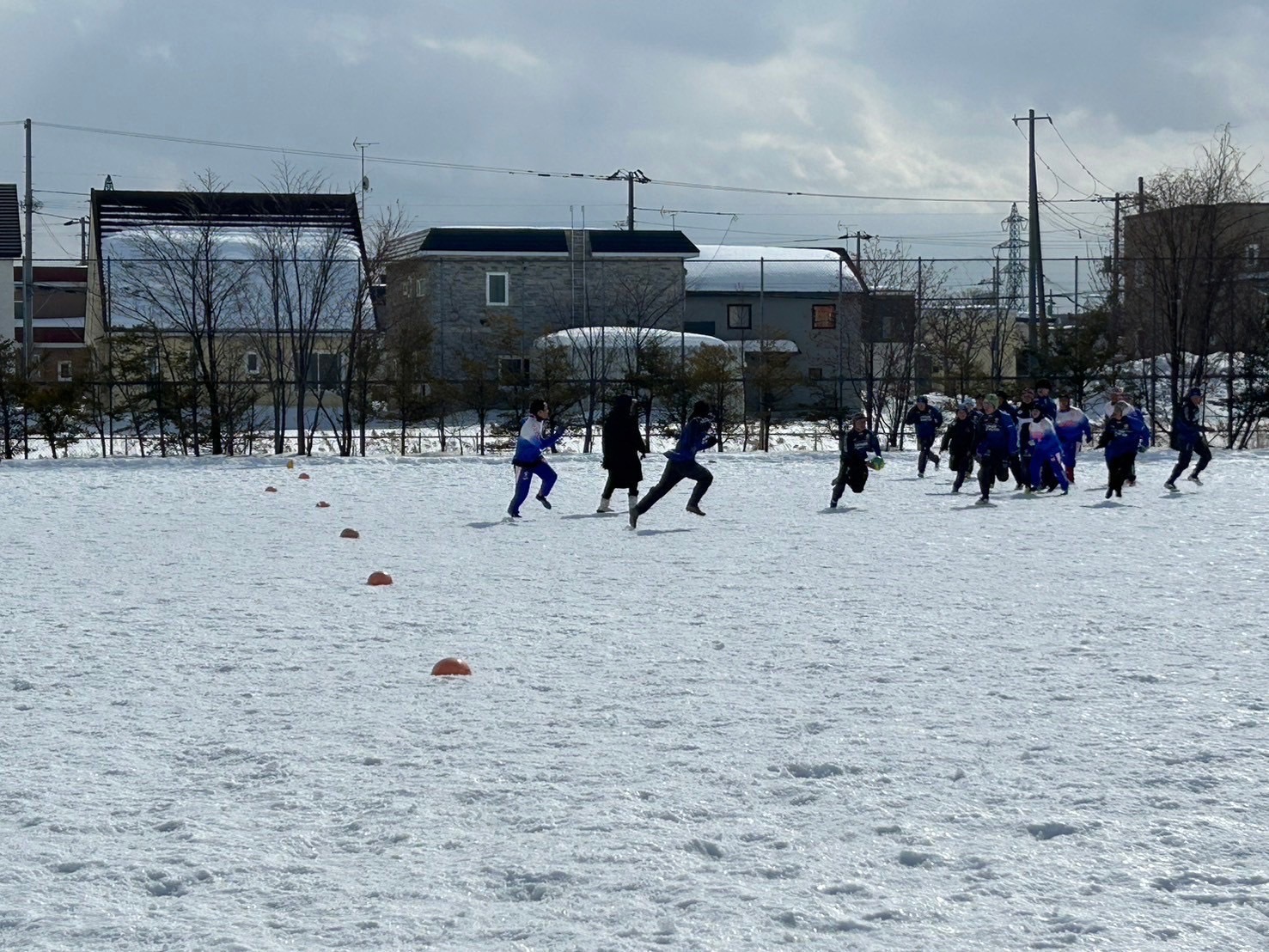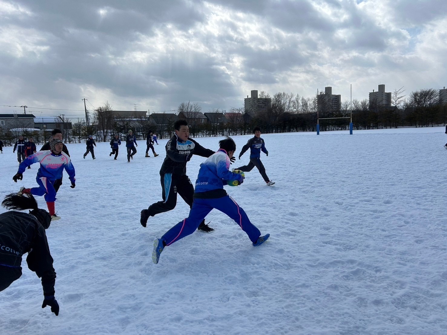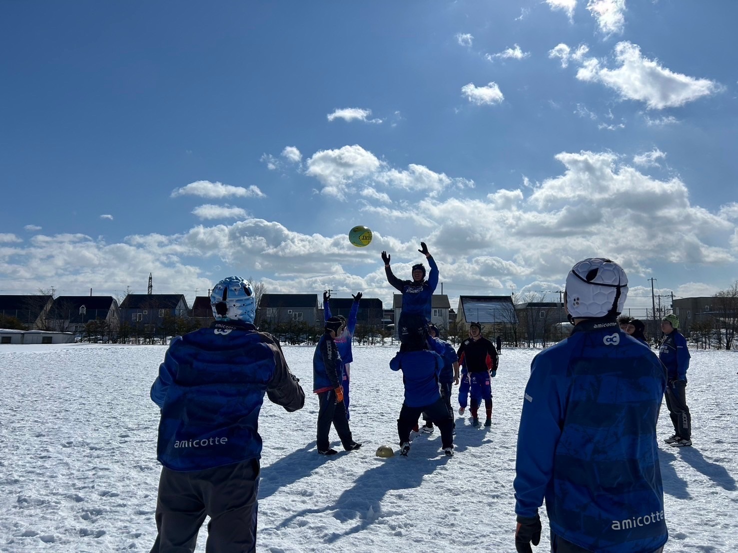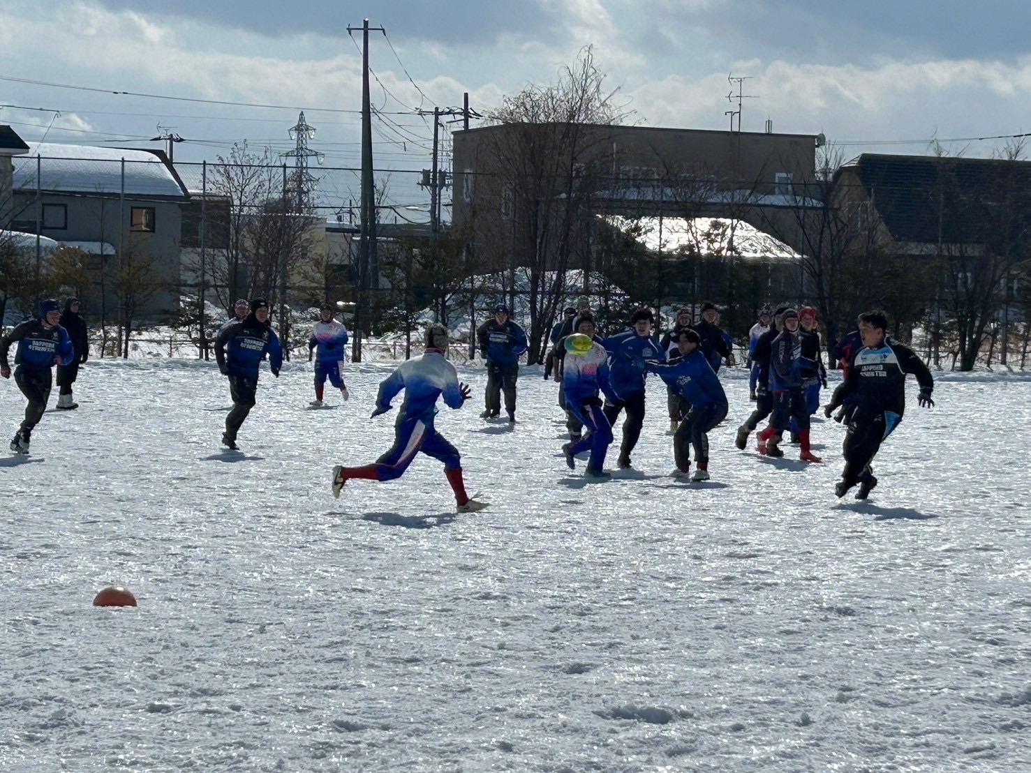 朝日大学ラグビー部の監督をされている吉川さんがグラウンドに来て下さいました。表原コーチや田中さんが所属した大学で東海リーグのチャンピオンチームです。近年はリーグワンでプレーする選手も輩出しているそうです。吉川さんからから冬の北海道という環境に負けず日々の練習を行っている活動の様子を褒めて下さいました。吉川監督、寒い中にも関わらずグラウンドにお越しいただきありがとうございます。