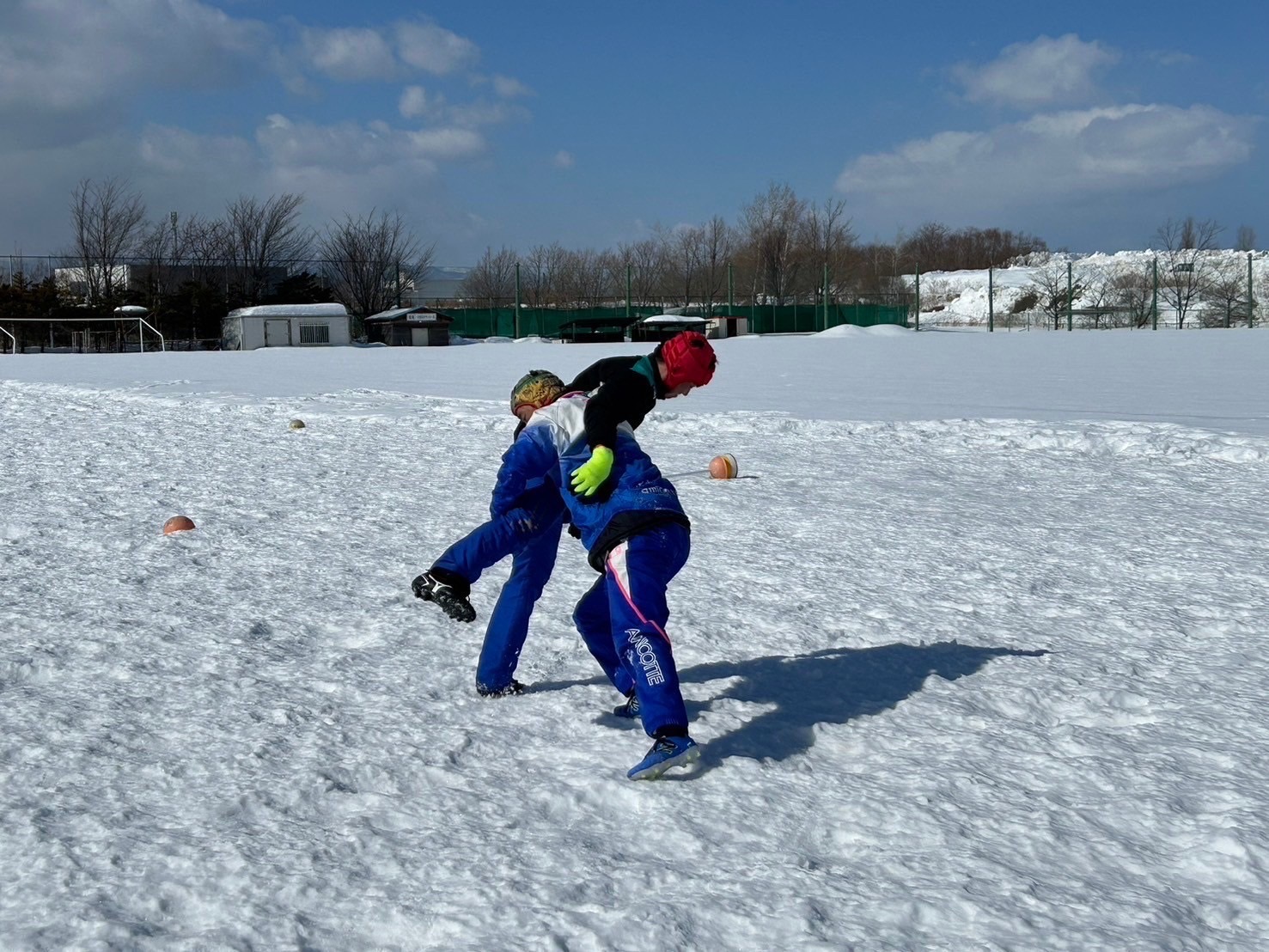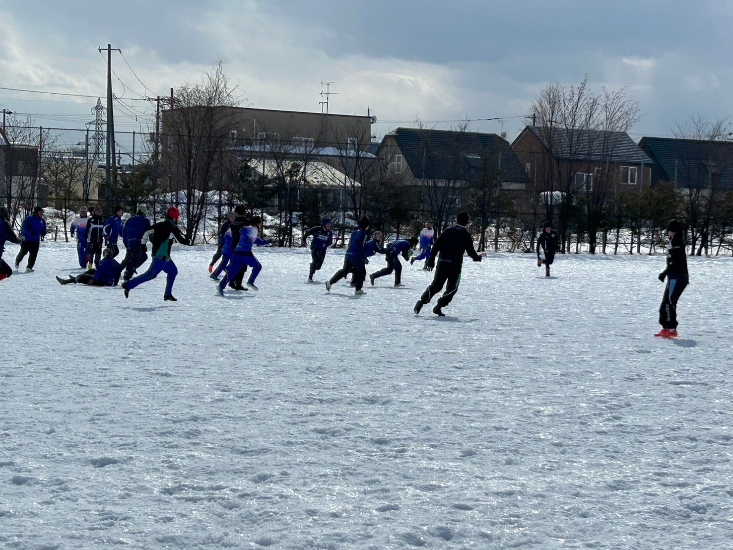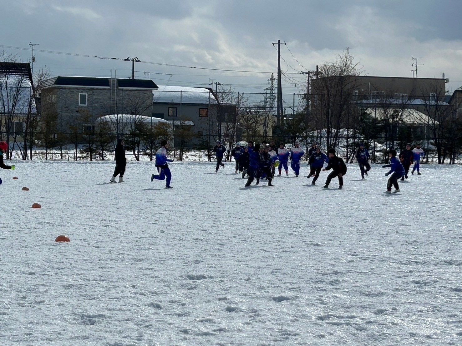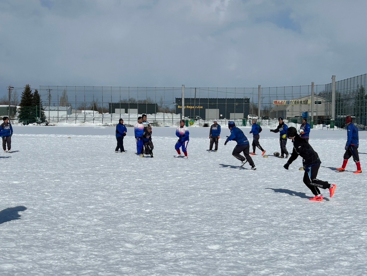 朝日大学ラグビー部の監督をされている吉川さんがグラウンドに来て下さいました。表原コーチや田中さんが所属した大学で東海リーグのチャンピオンチームです。近年はリーグワンでプレーする選手も輩出しているそうです。吉川さんからから冬の北海道という環境に負けず日々の練習を行っている活動の様子を褒めて下さいました。吉川監督、寒い中にも関わらずグラウンドにお越しいただきありがとうございます。