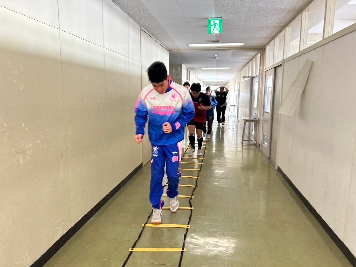 SCではスタートから集中した様子で取り組めていたので今後も継続していきましょう。怪我をしてしまった選手も自分が出来るメニューを探してトレーニングできていたのでその姿勢を忘れずに春の遠征に向けて着実な筋力アップを目指しましょう。