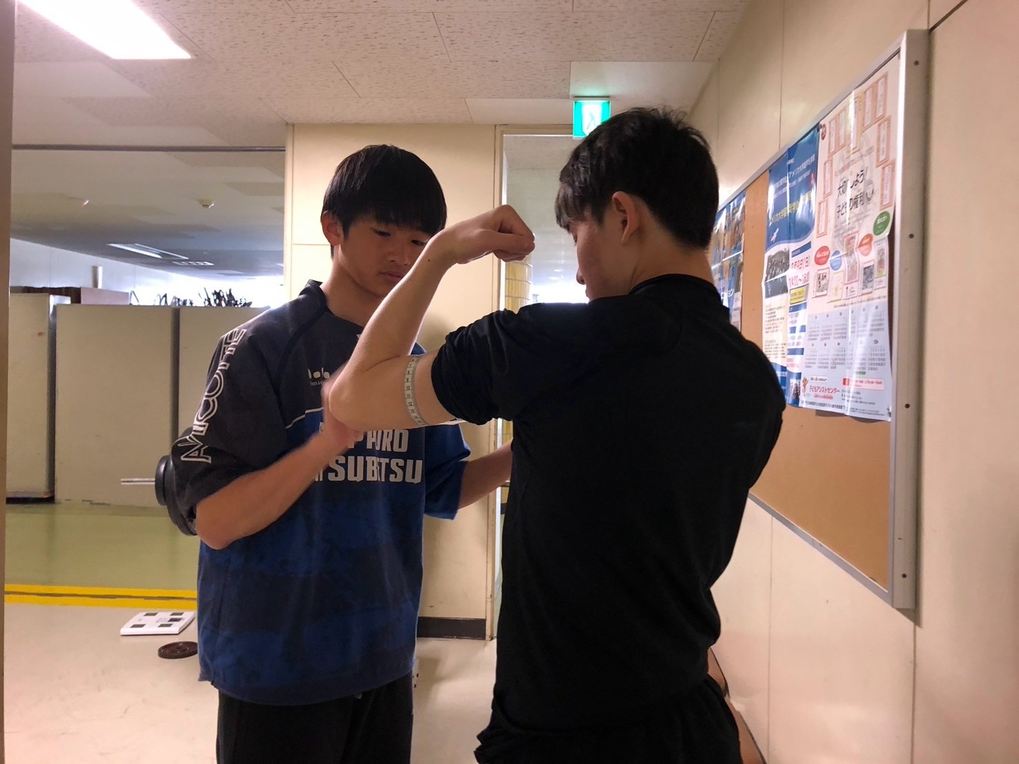 測定では記録が伸びている人や体が大きくなったと前回からの変化が見られました。自主的に食事量を多く摂っていたり、日々のSCの時間で重量にこだわって取り組んでいる成果が結果に現れていると思います。遠征まで残り数日となりましたが、この記録を糧に体作りを頑張っていきましょう。