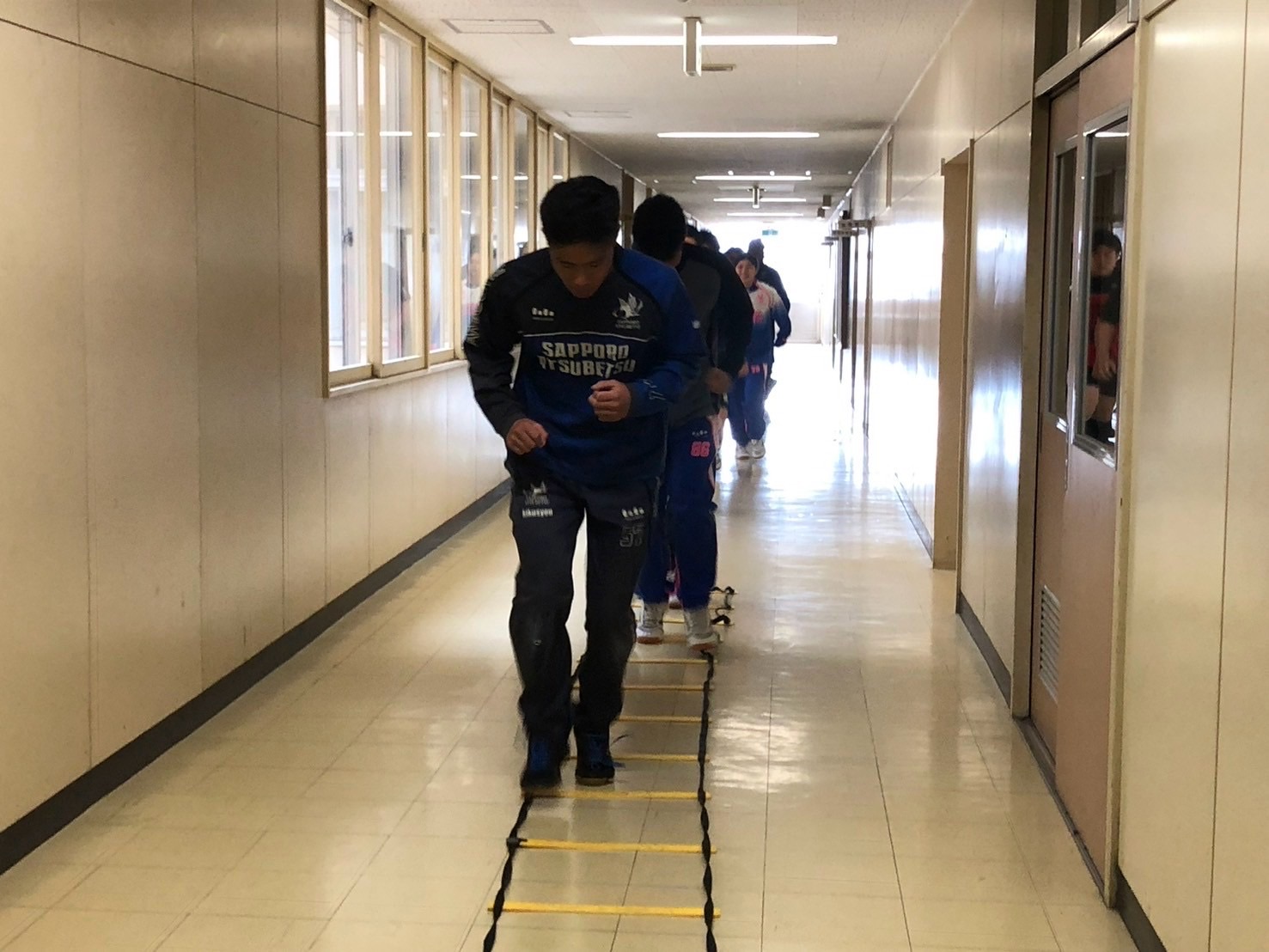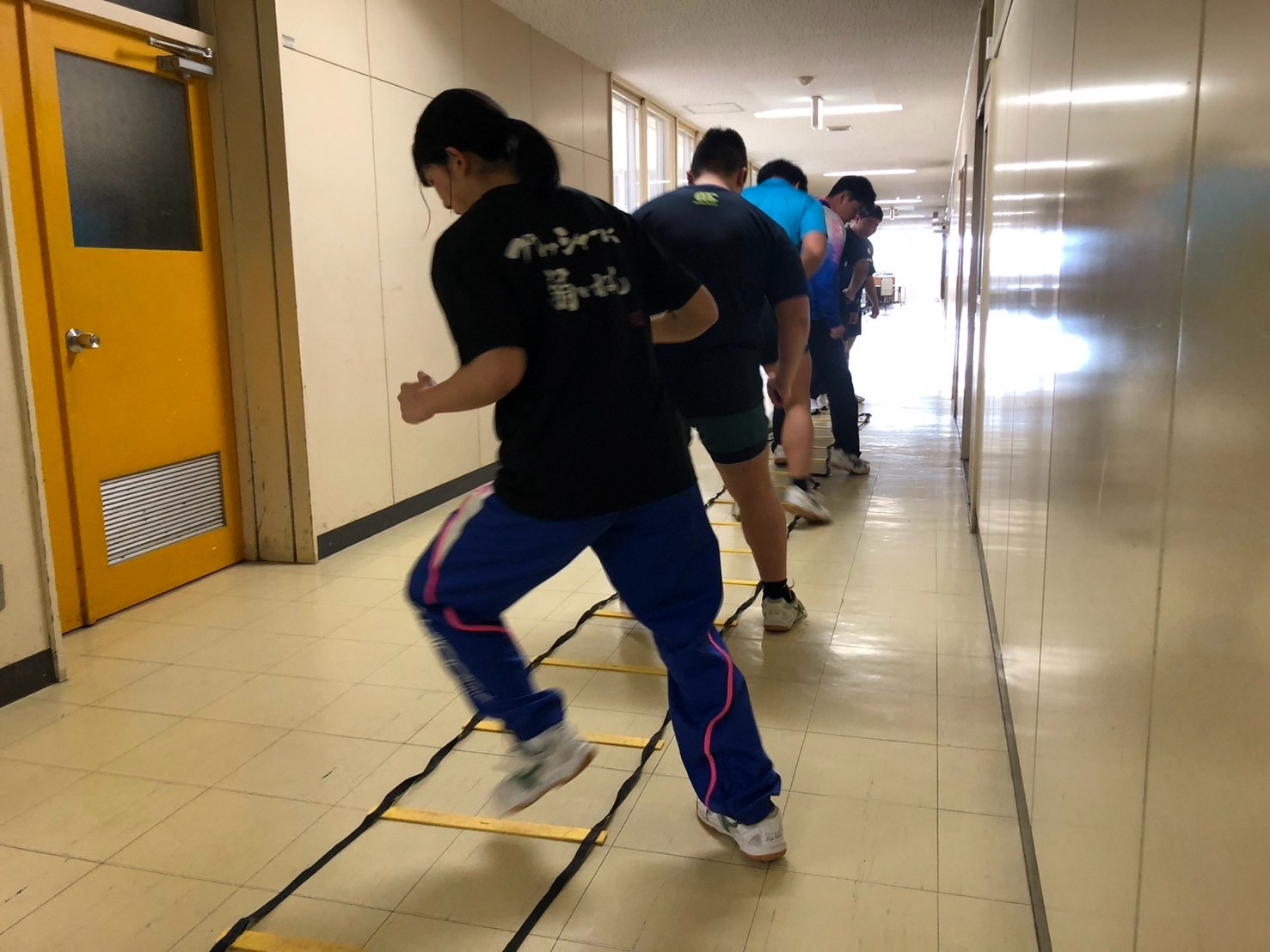初めにラダーを行いました。足の入れ替えの速さやメニューで注意しなければいけないところに意識を向けて行えるようにしましょう。