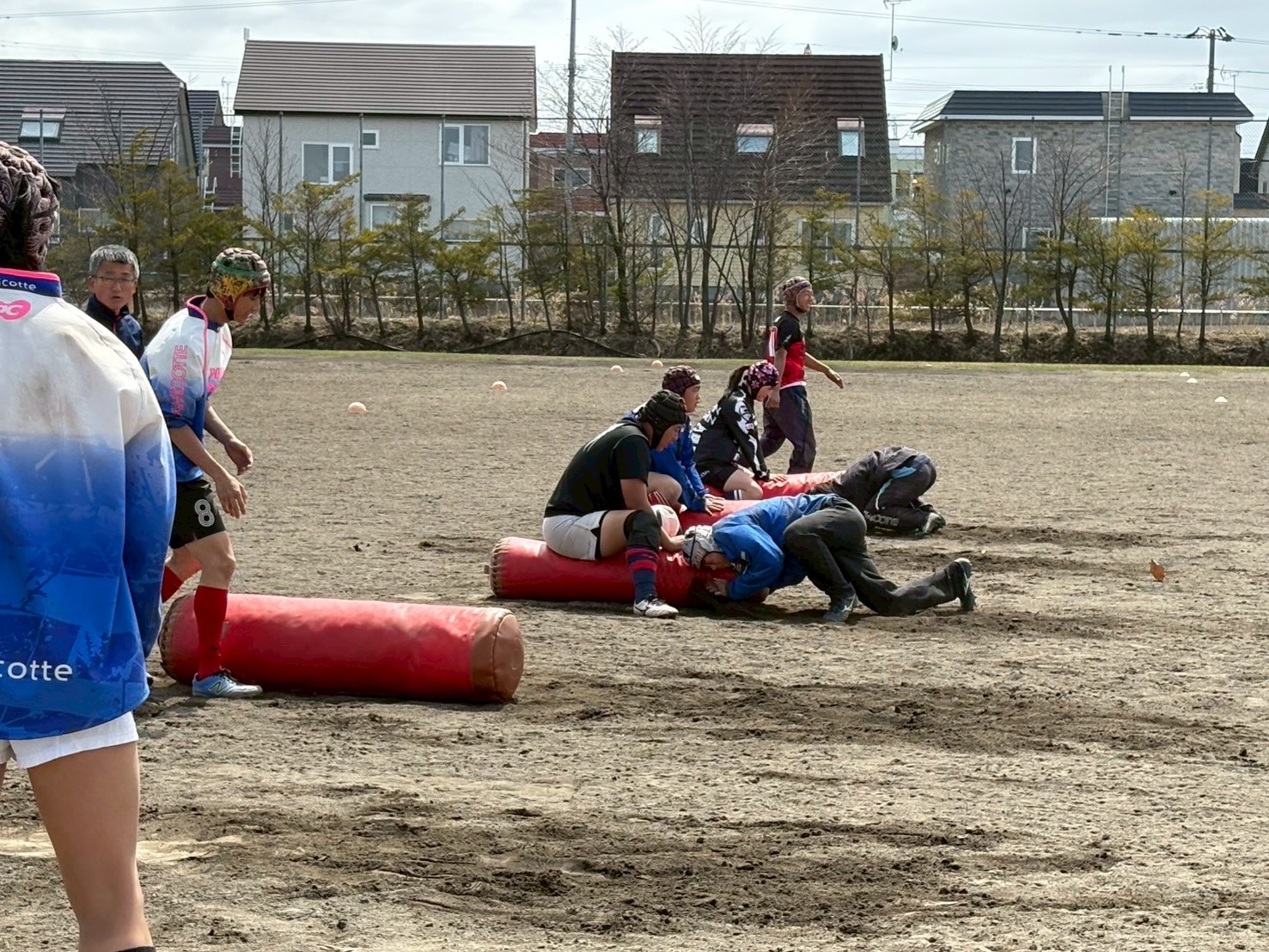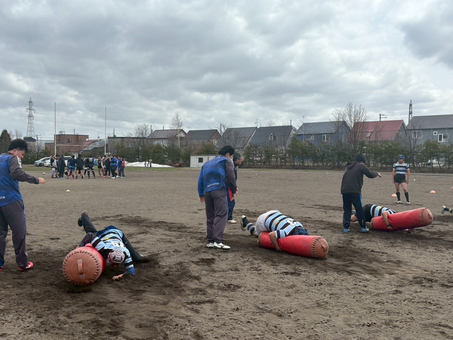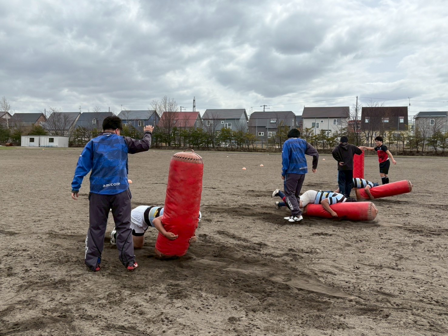 15分のゲームを2本行いました。スタートは全体的に静かで声が少ない様子でしたが、後半にかけて少しずつコールが出せていました。コールをしっかりと聞き、その上で判断を下したプレーにしていきましょう。果敢にタックル入れており、入って終わりにならずにしつこく絡めているのが良点になりました。また、練習で行ったように頭を入れて低姿勢でオーバーに入ることができていました。パスミスやノックフォワードなどのイージーミスが目立ちました。しかし、反対にルースボールに対しての反応が良く、喰らいつけていました。テンポが遅くなっていたり、外側からの声を内側に伝達できていないことがあり、そこが課題になってしまいました。課題解決には、練習の質をさらに高める必要があり、個人がより考える必要があります。個人がしっかりと考えて発信していくことで、戦術的な面でできていない課題は改善されます。自分自身のプレーや仲間のプレーを振り返って見るなど個人の努力も欠かさないようにしましょう。