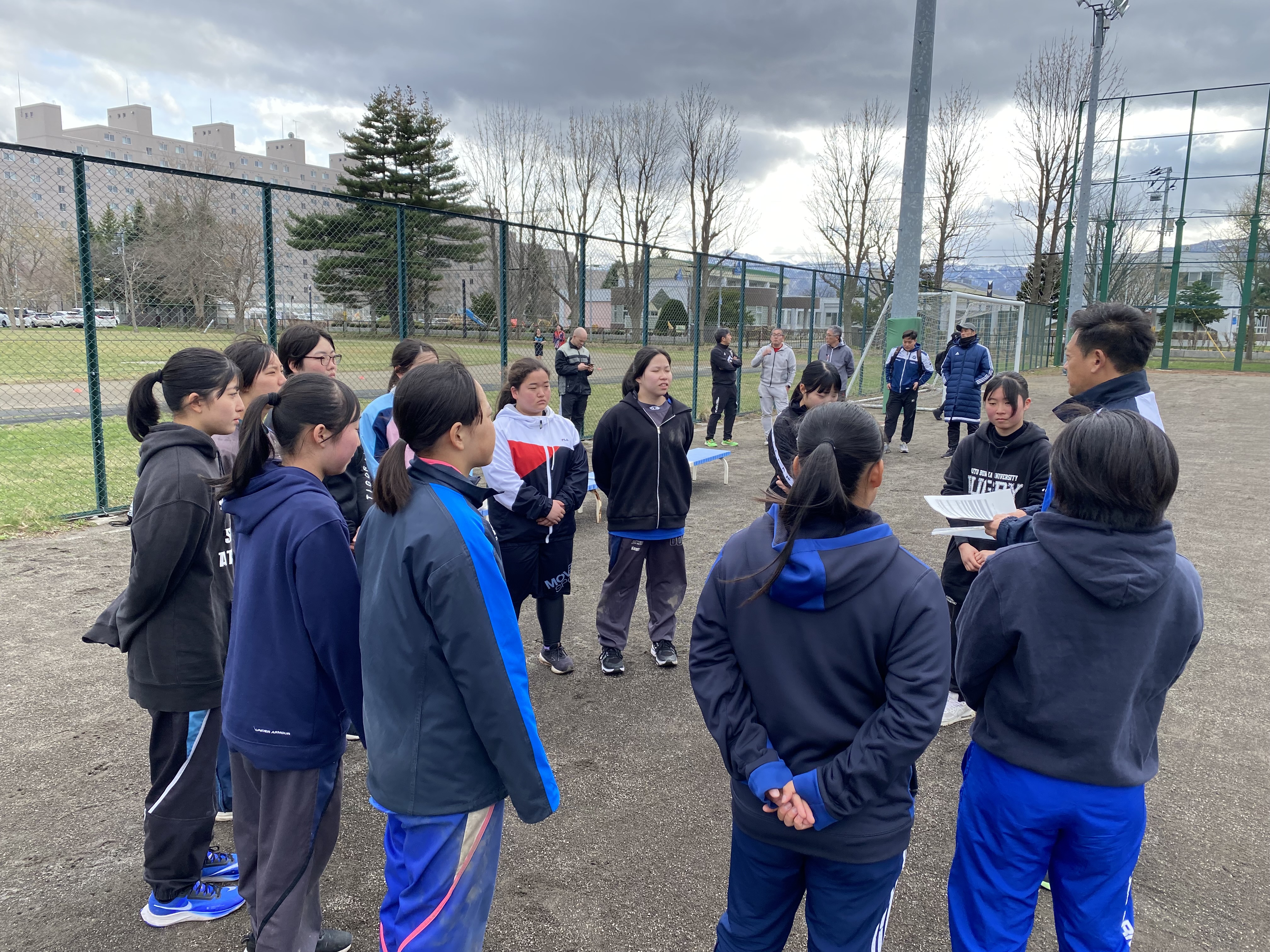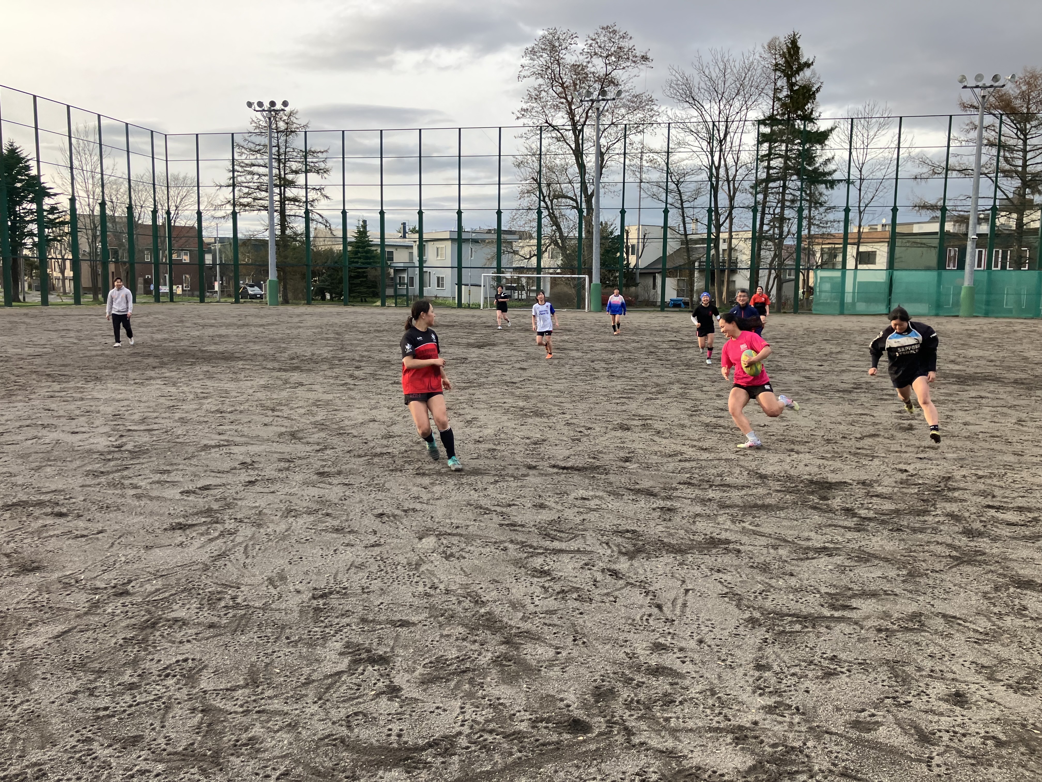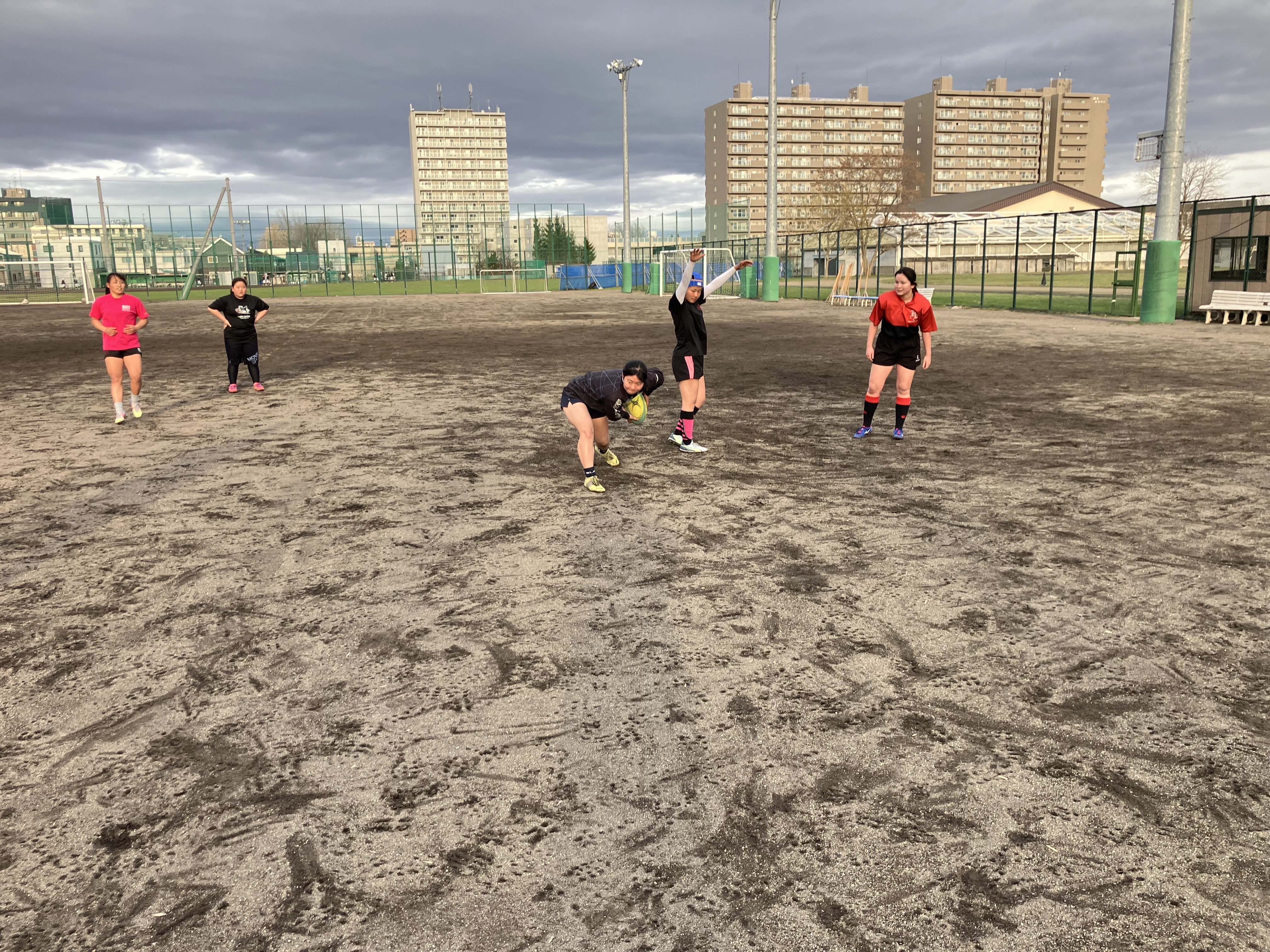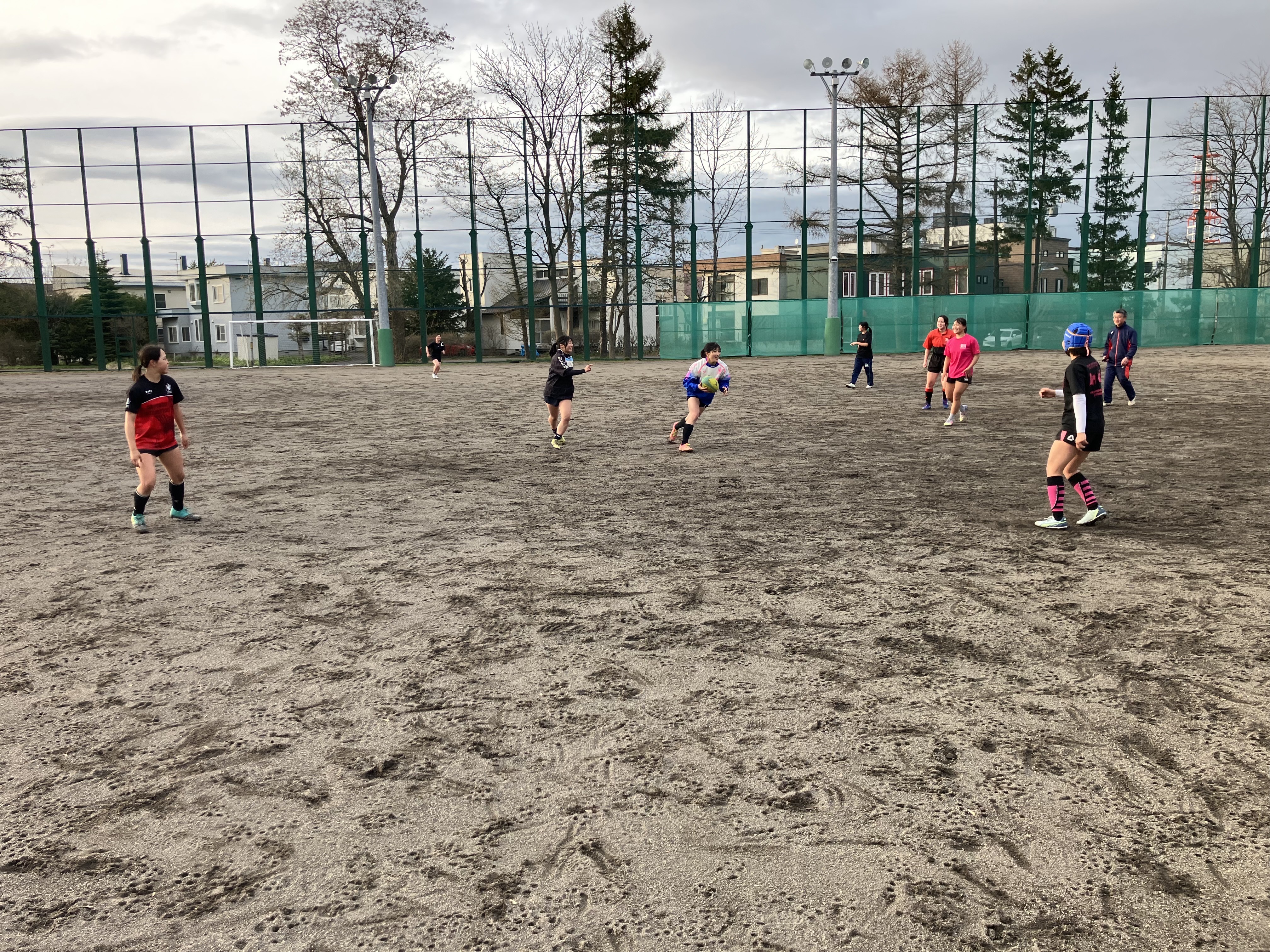 今日の午後は第1回 札幌支部高校女子ラグビーフットボール合同練習会が札幌北高校のグラウンドに札幌、江別の高校から12名の女子選手が集まり実施されました(厚別高校からは7名。内1名は新川高校の練習生。)この練習会は、札幌市ラグビーフットボール協会の女子担当理事である前厚別高校ラグビー部監督の堀先生が札幌支部の女子強化を目指し企画してくださいました。