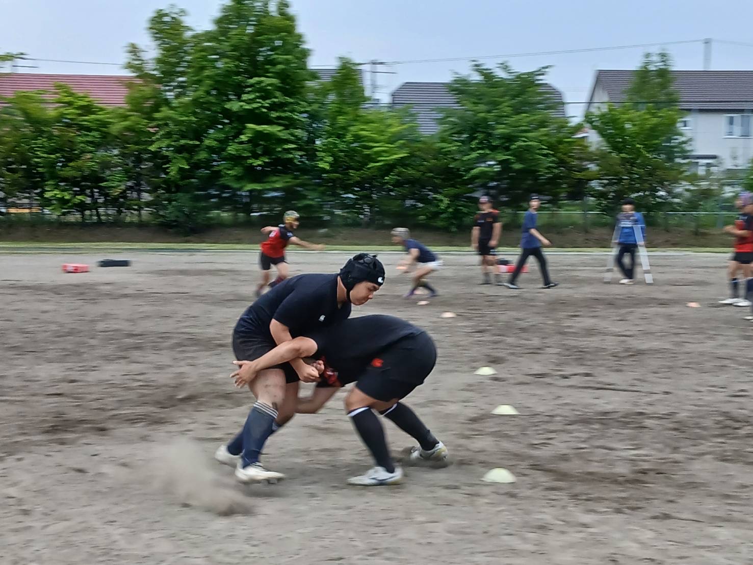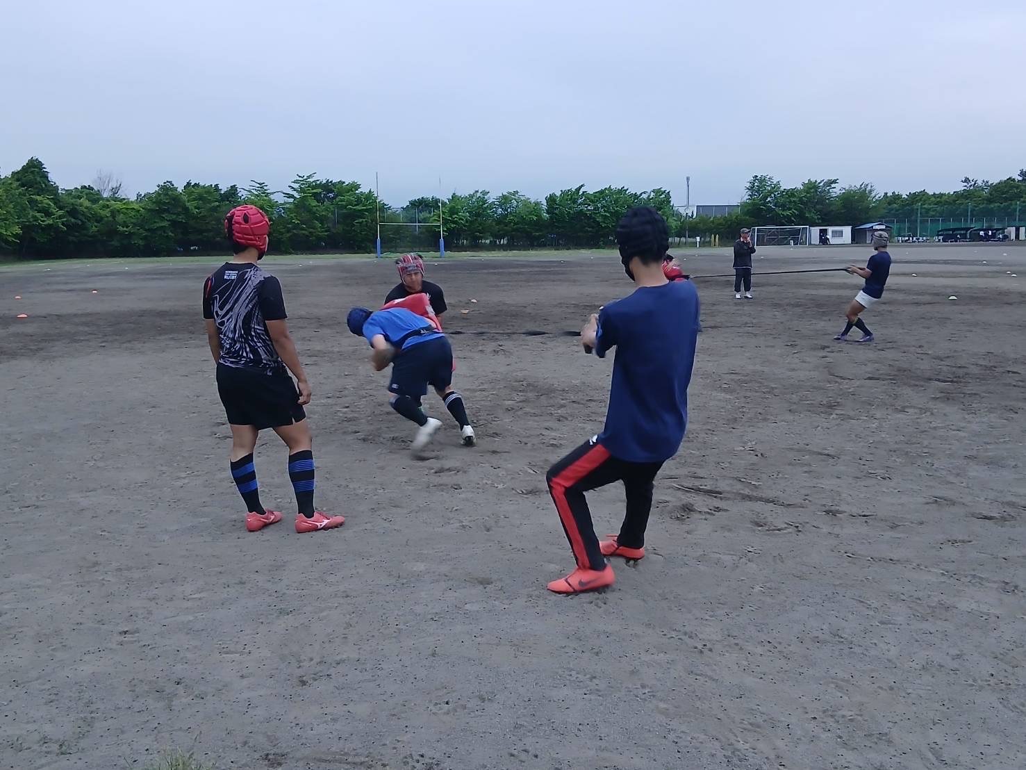 次にハーネスを使ったタックル練習をしました。普段のタックルよりも力強くドライブすることを意識し今後に活かしましょう。