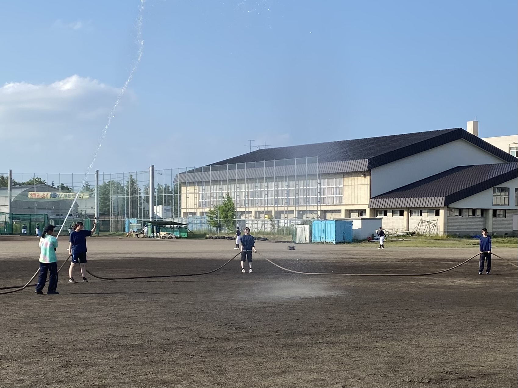 SCの間、グラウンドの気温が高く、乾いていたので、マネージャーが今シーズン初めての水撒きをしました。