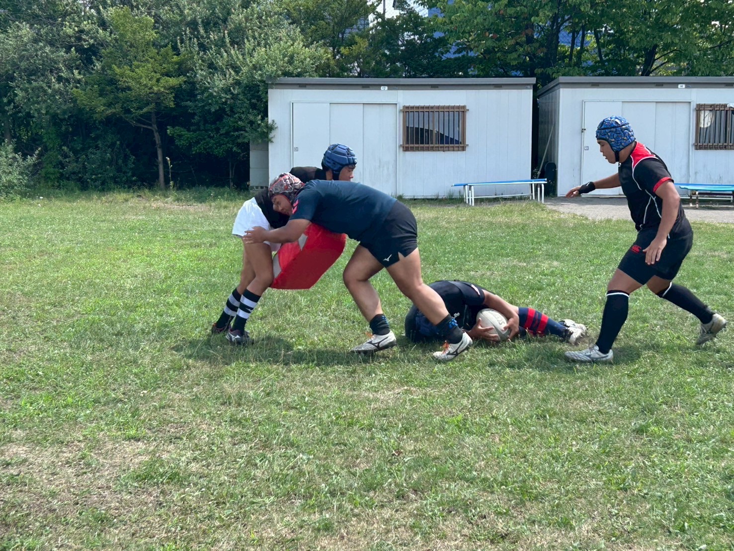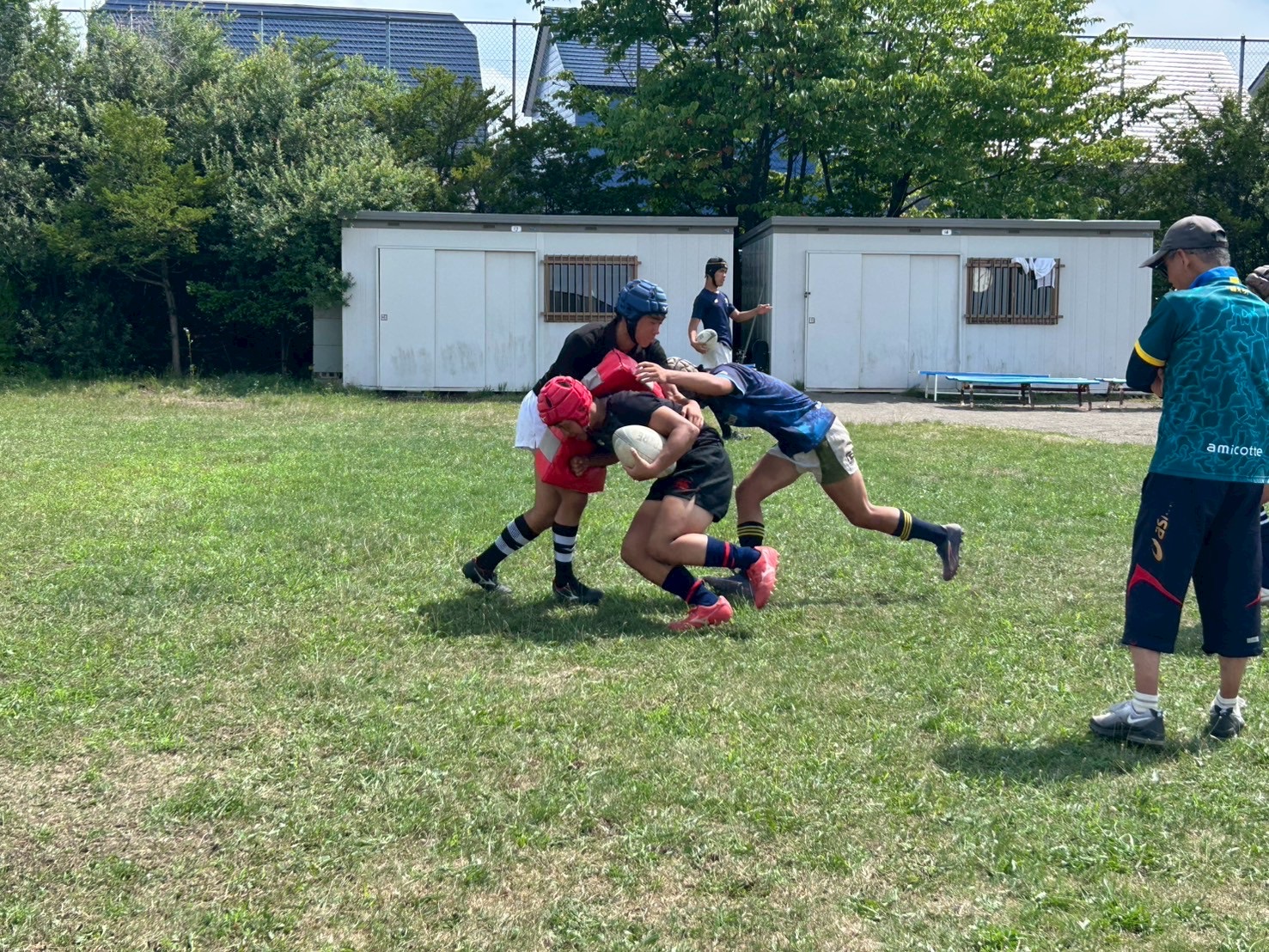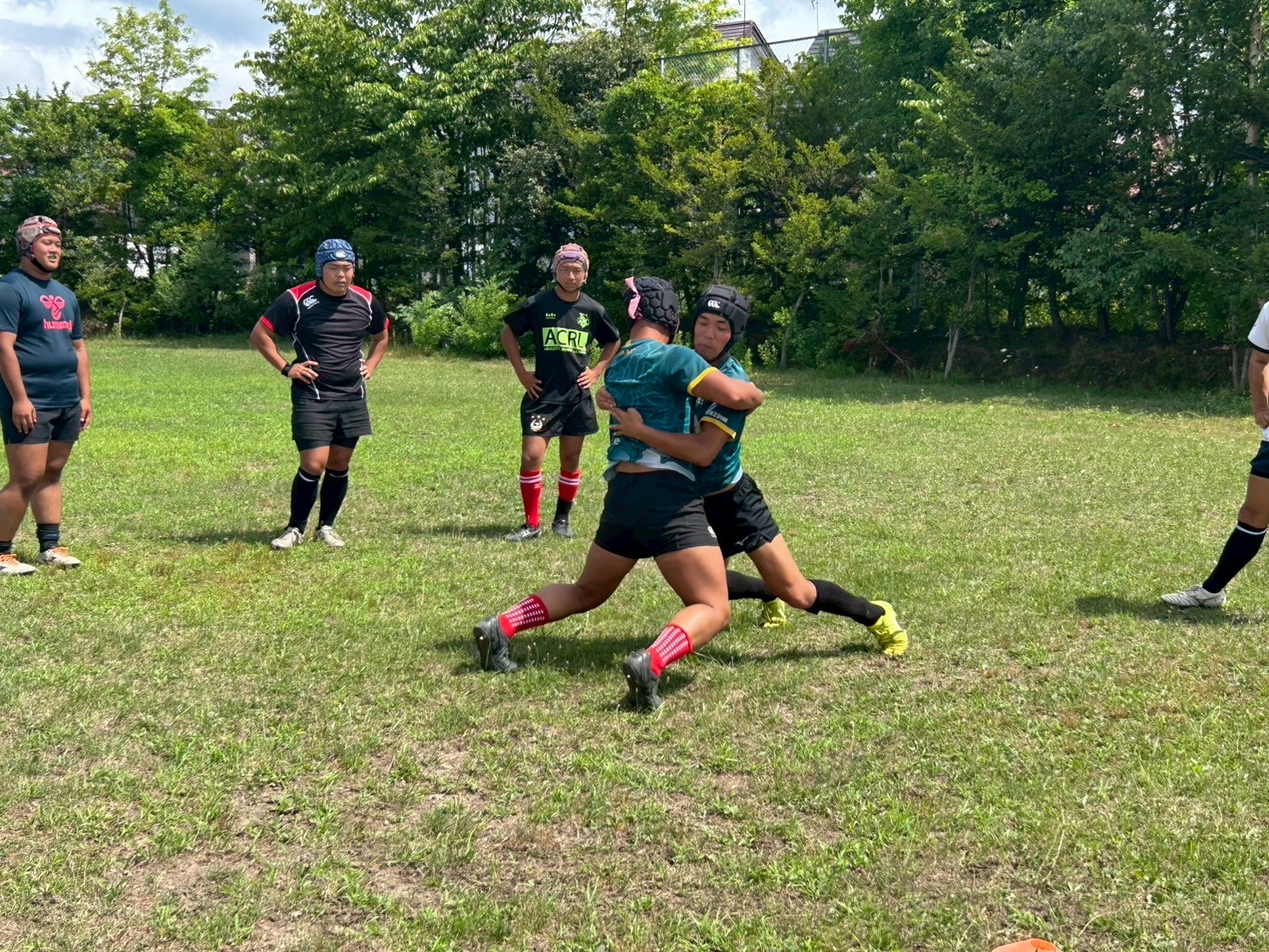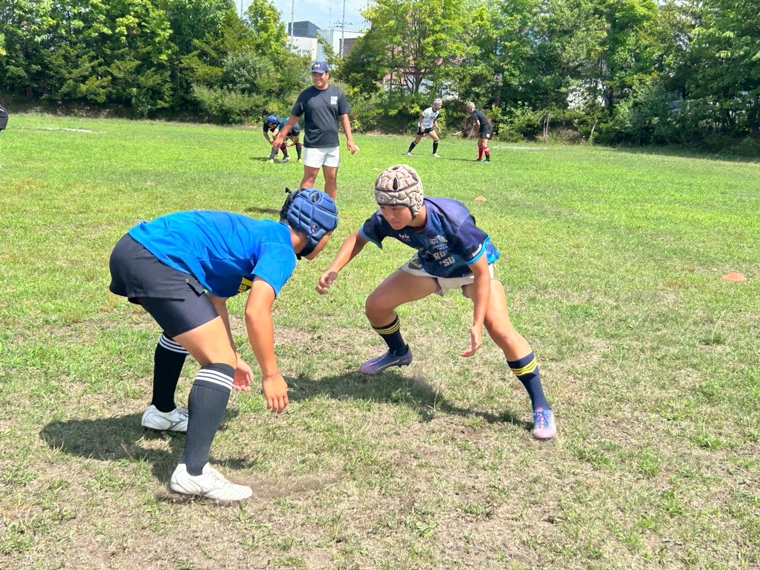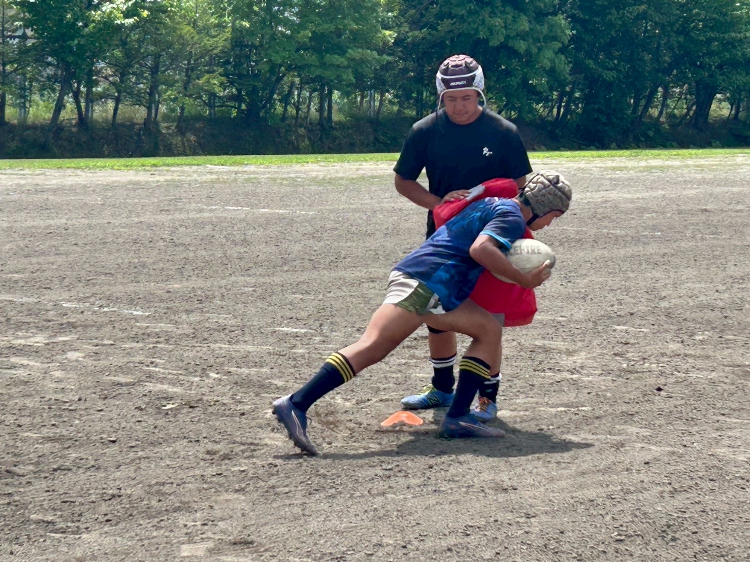 その後、キャリーの練習を行いました。低く、鋭い当たりを心掛けていました。セカンドマンのブロー、セキュリティをしっかりすることで、テンポを速くできます。一つひとつをこだわり練習に励みましょう。