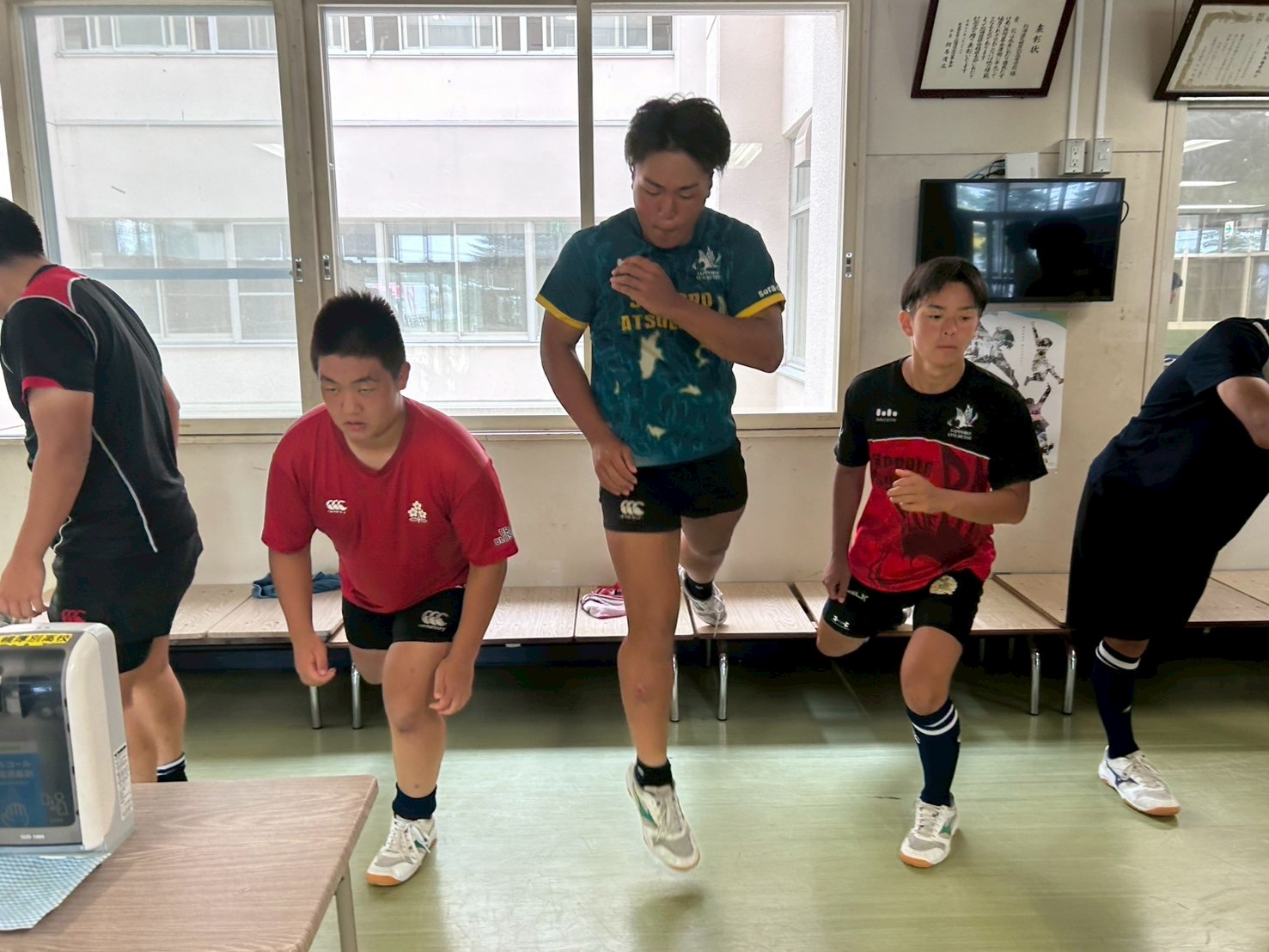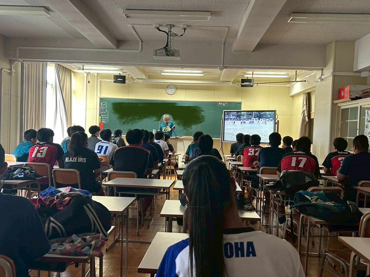 次に選抜大会の動画を視聴しながらビデオミーティングを行いました。佐々木先生から試合での問題点、ご指摘をいただき、厚別高校のラグビー部は「情報を集める力」が足りないという課題が見られました。また、アップからのコールやキックキャッチの成果、FWは姿勢などに観点を向けました。これらに加え、今回の試合では多くの「反則」が見られました。日々のAD練習から自分のプレーに目を向け取り組みましょう。