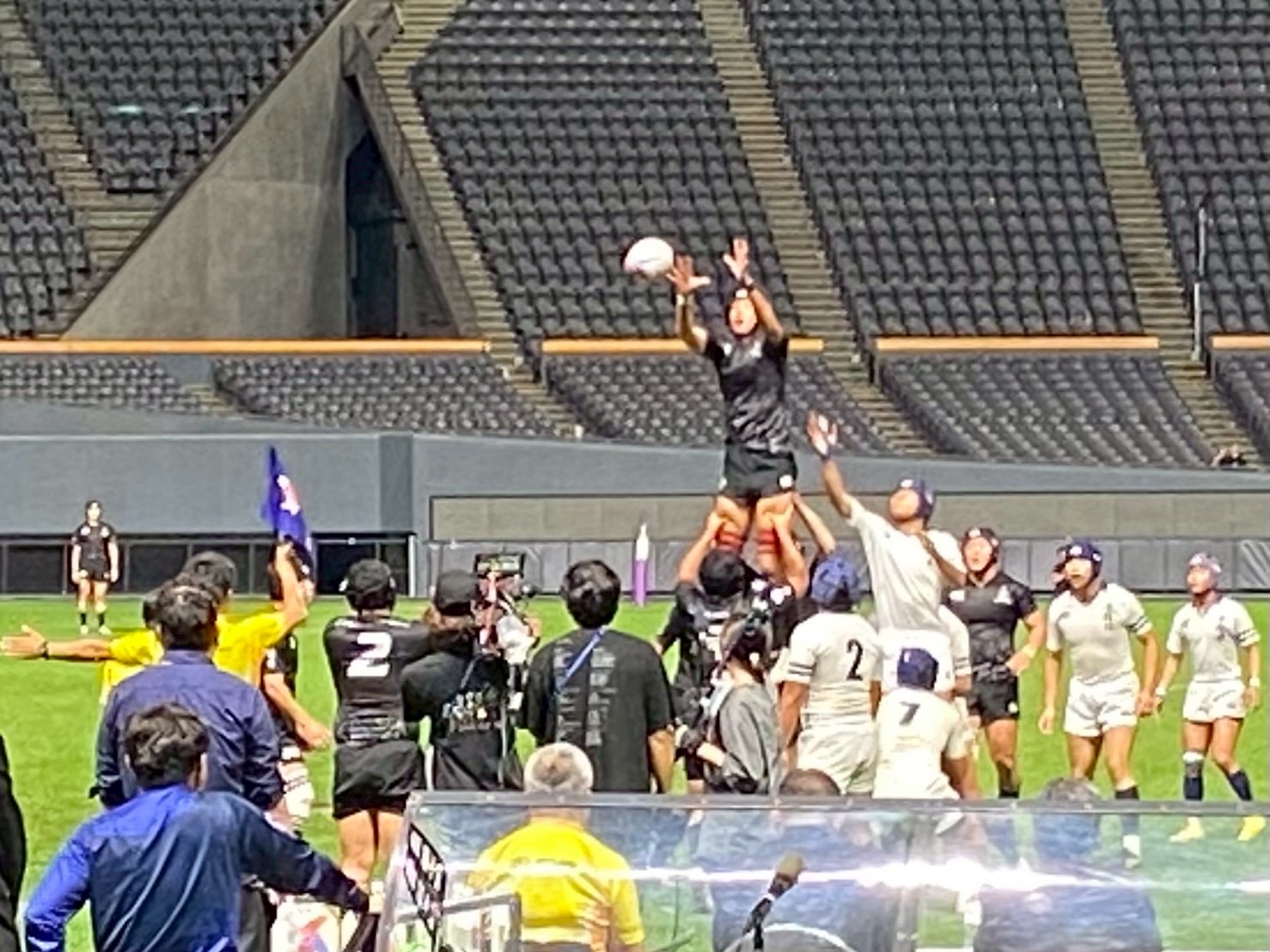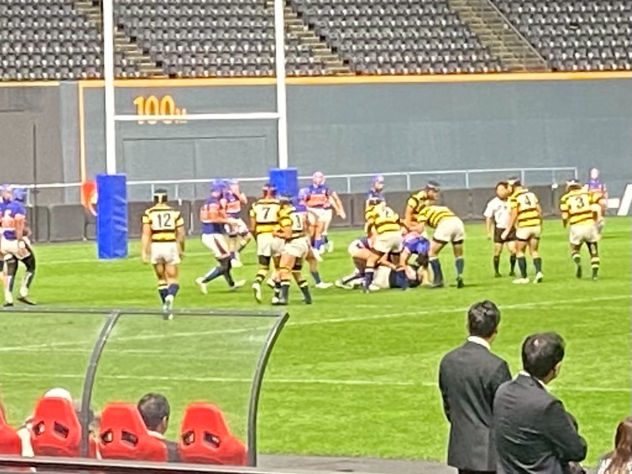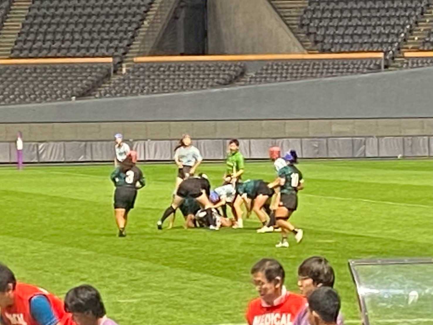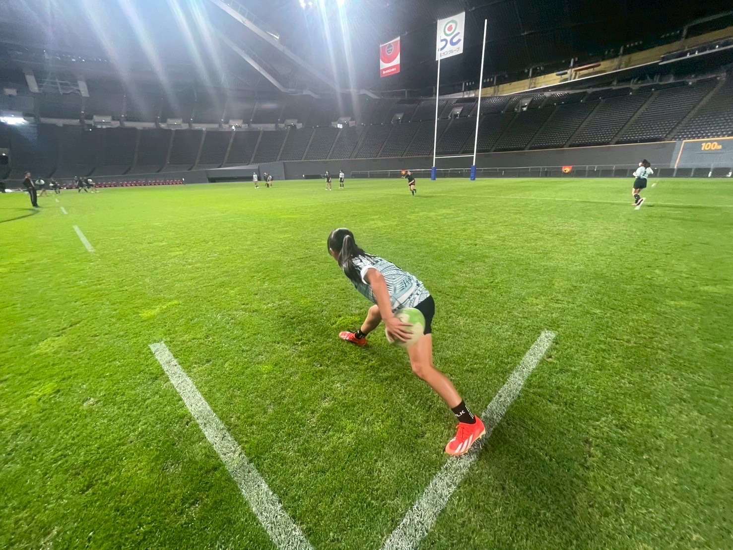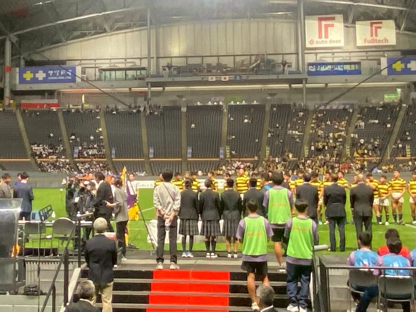 その後、南北海道全道決勝戦 立命館慶祥vs札幌山の手、そして北北海道全道決勝戦 遠軽vs中標津を観戦しました。ウォーミングアップから試合までを通して観戦することで、アップを参考にしたり自分たちの知見を広げる良い機会となりました。試合中は、良いプレーやトライが決まると自然と歓声が沸き起こり、試合の臨場感をより一層味わうことができました。また、各チームの戦略や技術から多くの学びを得ることができ、自分自身の課題にも気づくことができたと思います。今日学んだこと、新たに気づいたことを仲間同士で共有し、今後の練習や試合に活かしていきましょう! また、来年こそは自分たちもドームで試合できるように頑張りましょう!