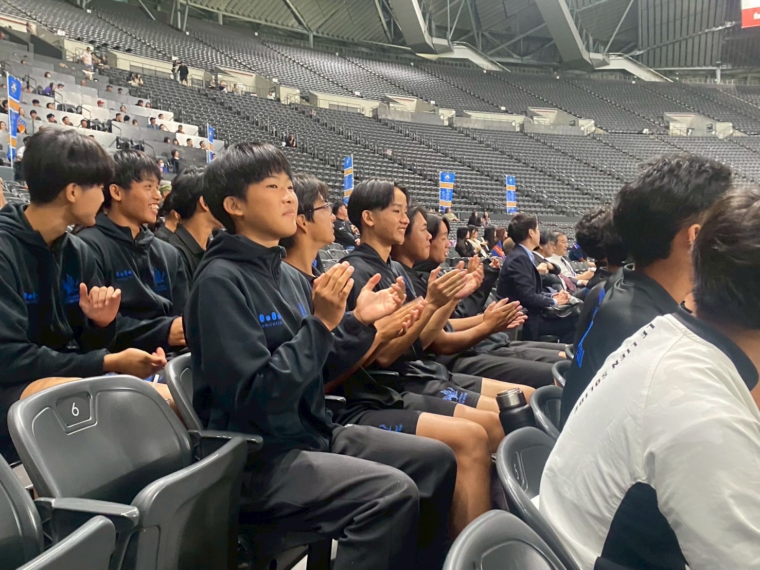 観戦している選手たちは前川の音頭で大きな声で応援し、プレーが成功した時には我が物顔に喜んでいました。また、「あのプレーがとても良かった!」などと褒めながら観戦していました。