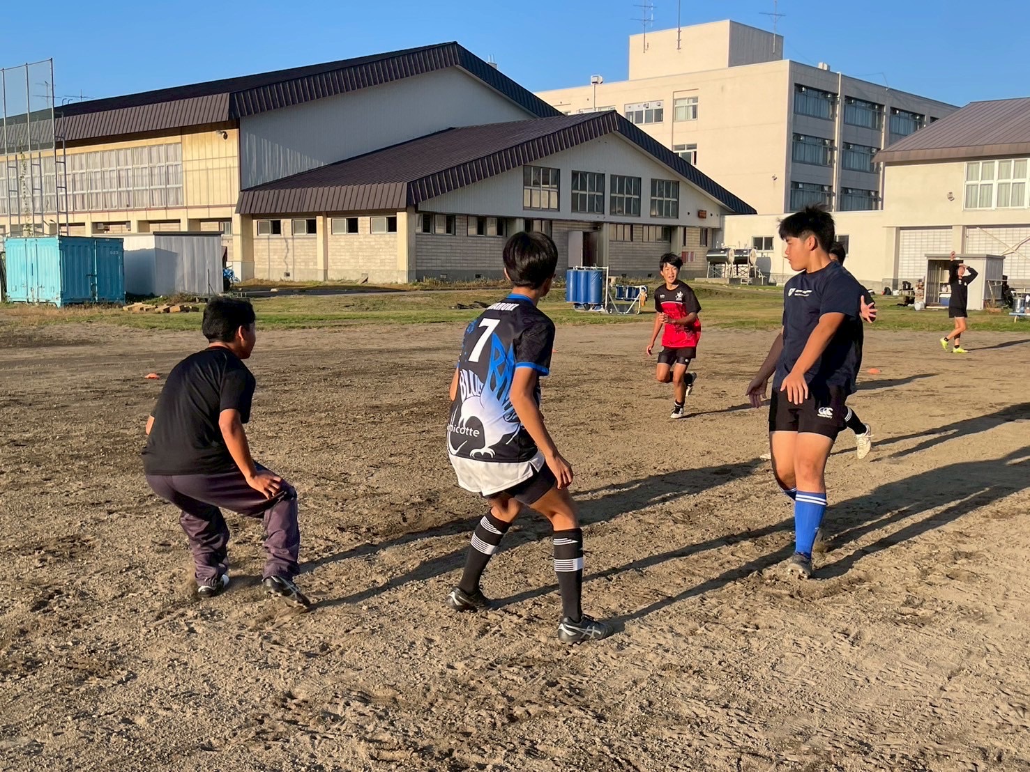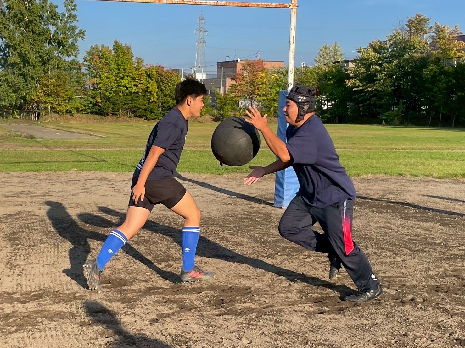 次にサイドタックルを行いました。低い姿勢で鋭く入り、強いタックルができるように日々練習に努めましょう。