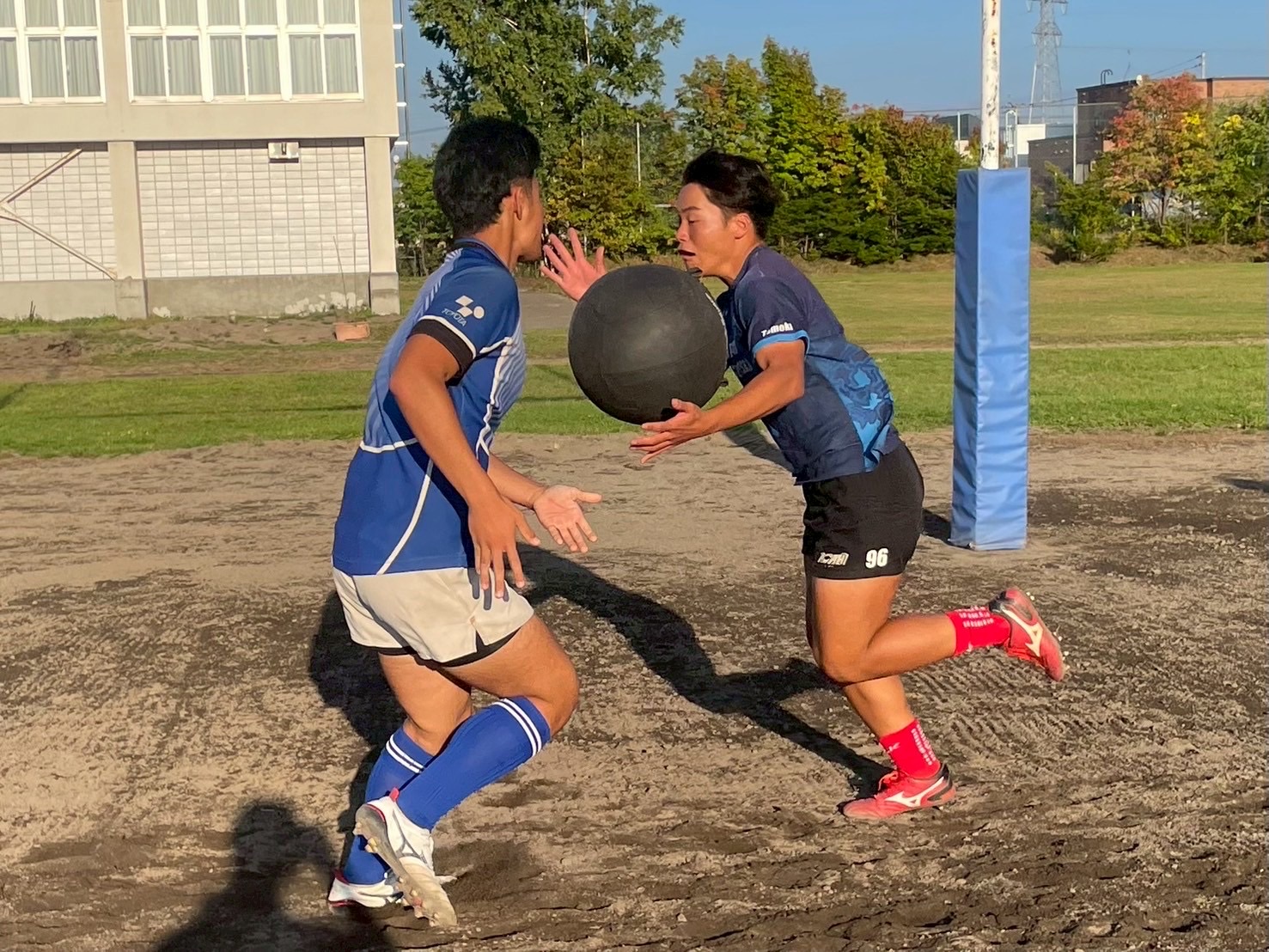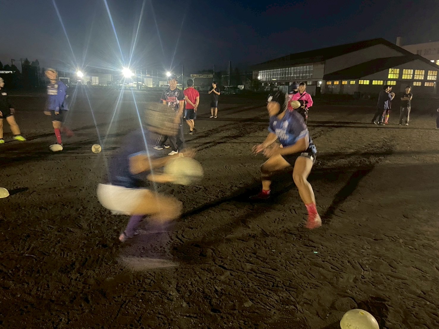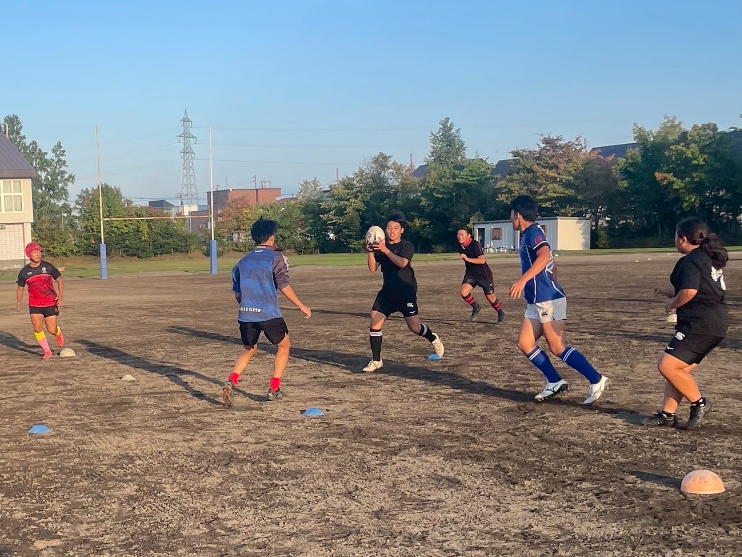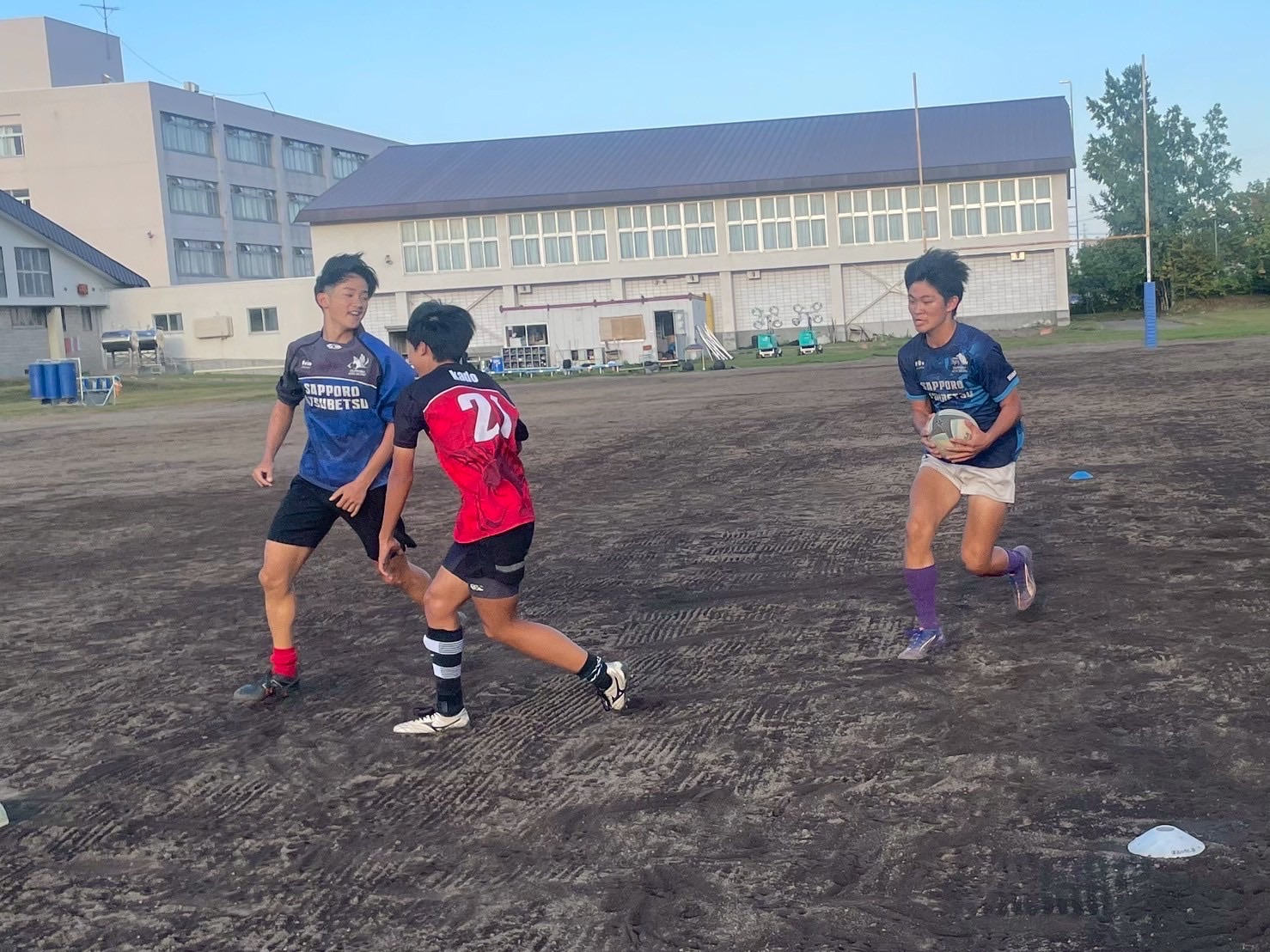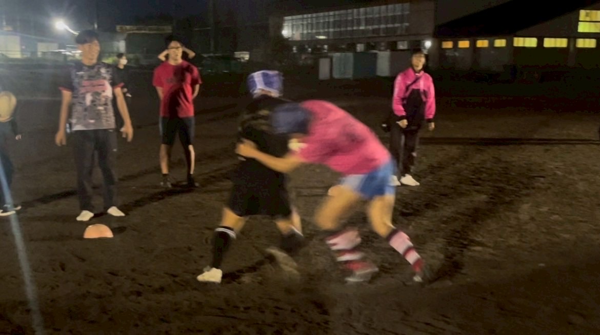次に1対1を行いました。肩を当てながら相手の懐に入り込むイメージで練習を行いましょう。ポイントを外されても、サイドタックルで仕留めましょう。また、1年鈴木と糸田がナイスステップを踏めていました。
