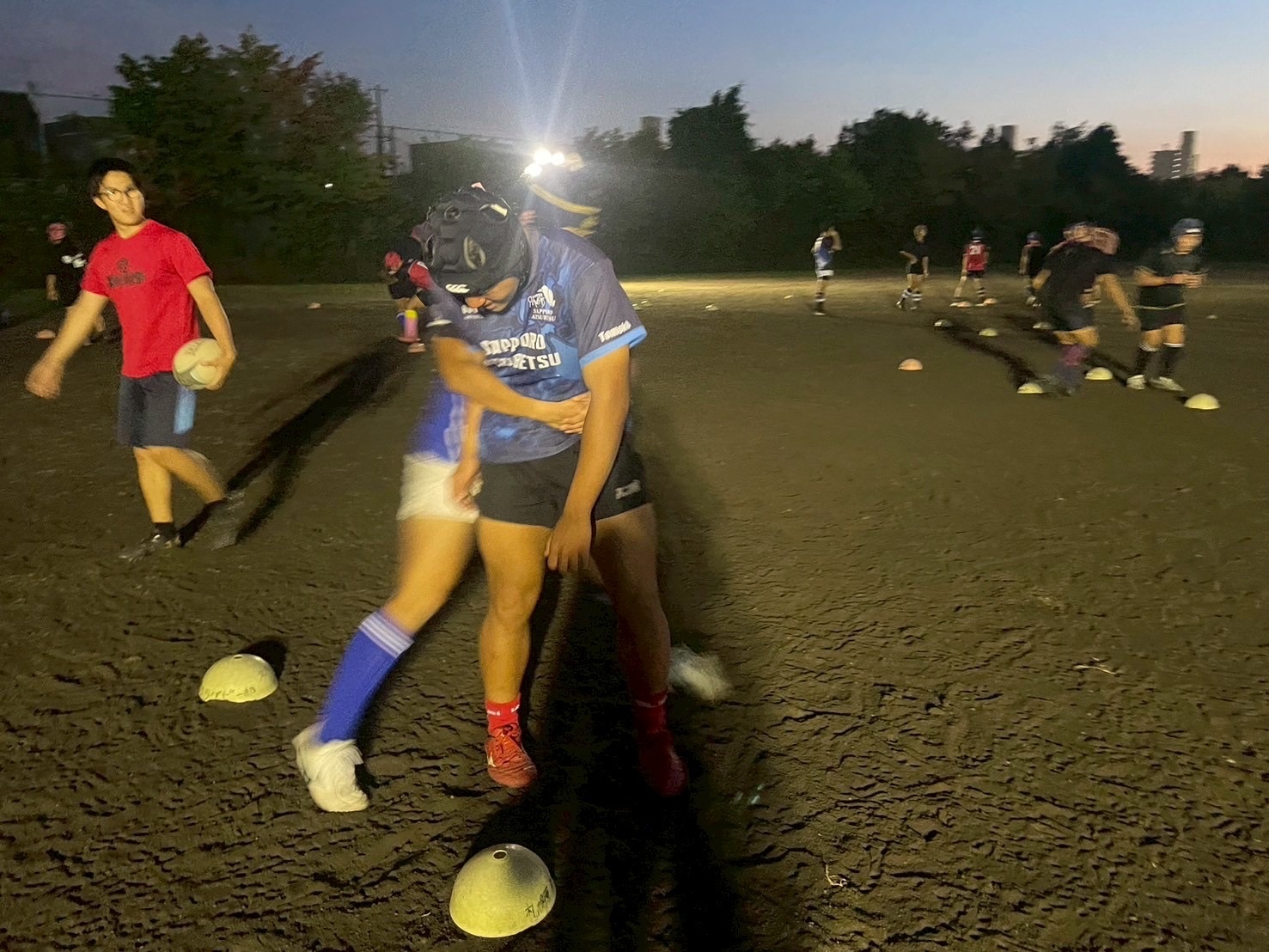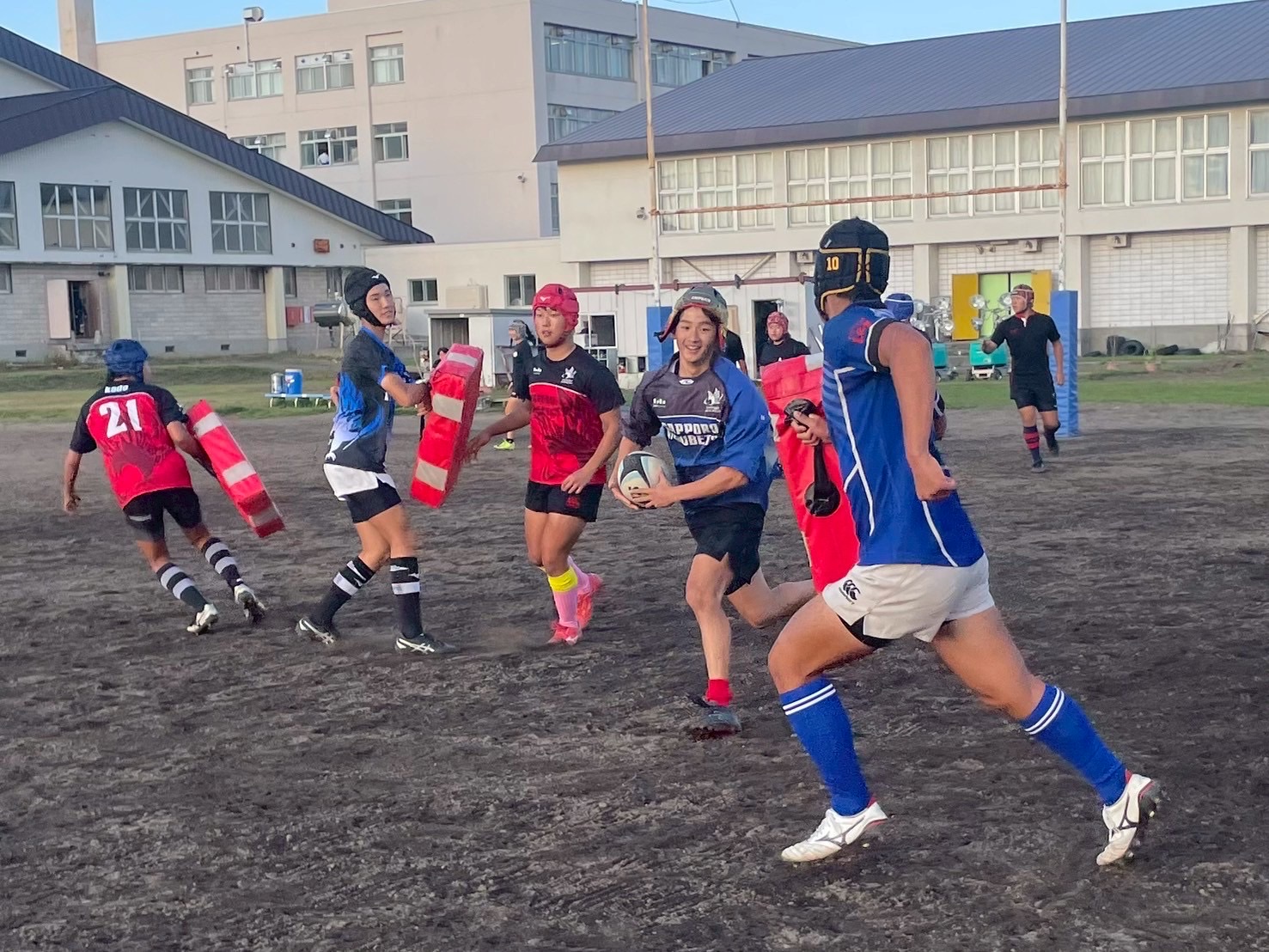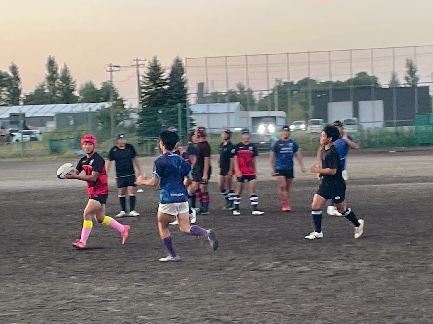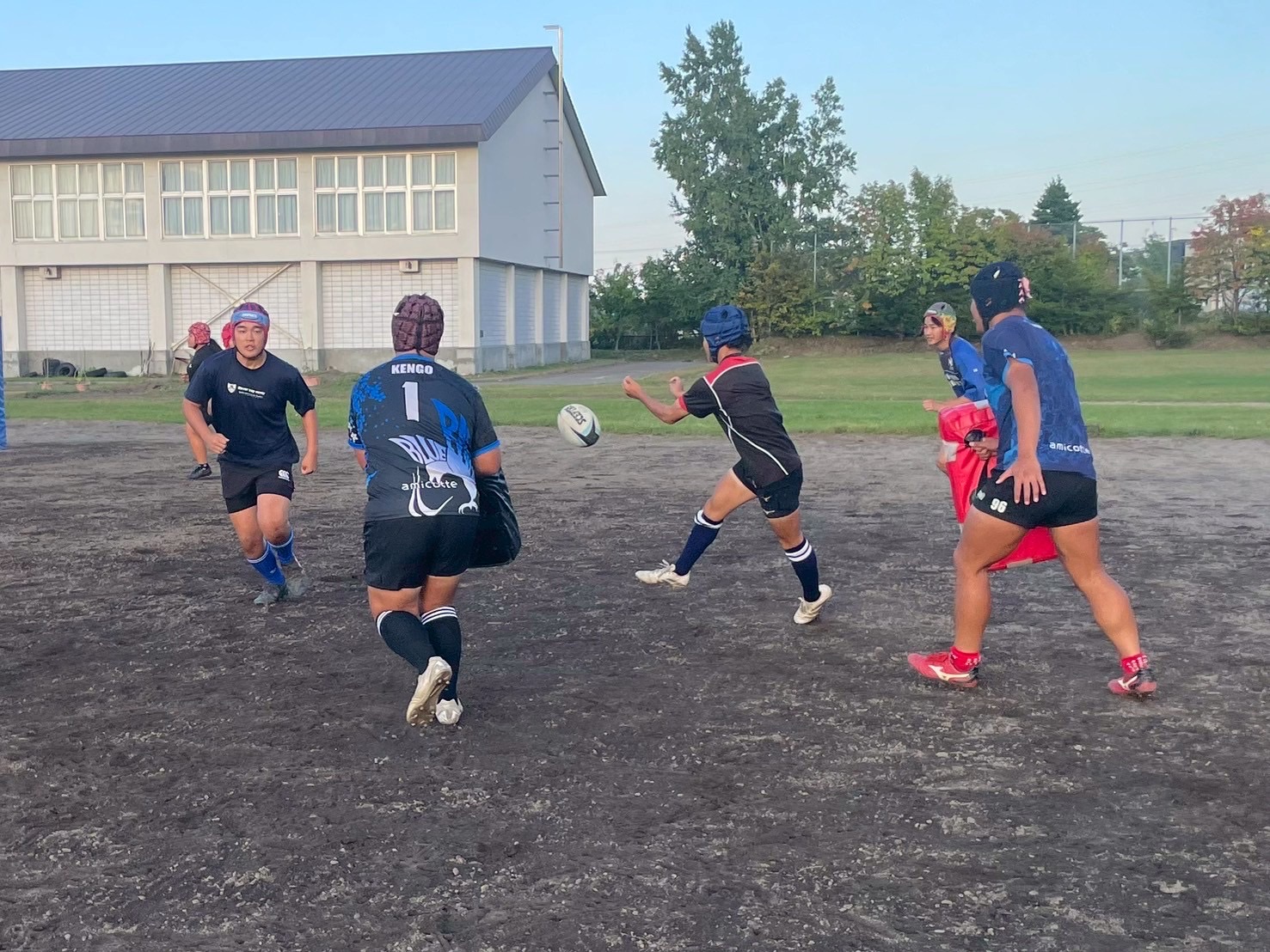 次に1対1を行いました。肩を当てながら相手の懐に入り込むイメージで練習を行いましょう。ポイントを外されても、サイドタックルで仕留めましょう。また、1年鈴木と糸田がナイスステップを踏めていました。