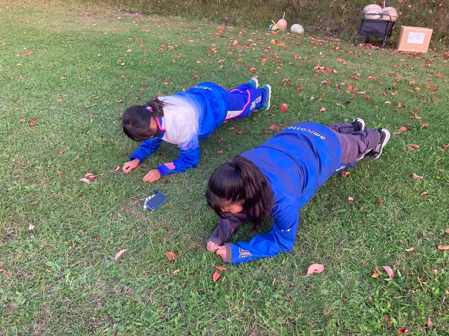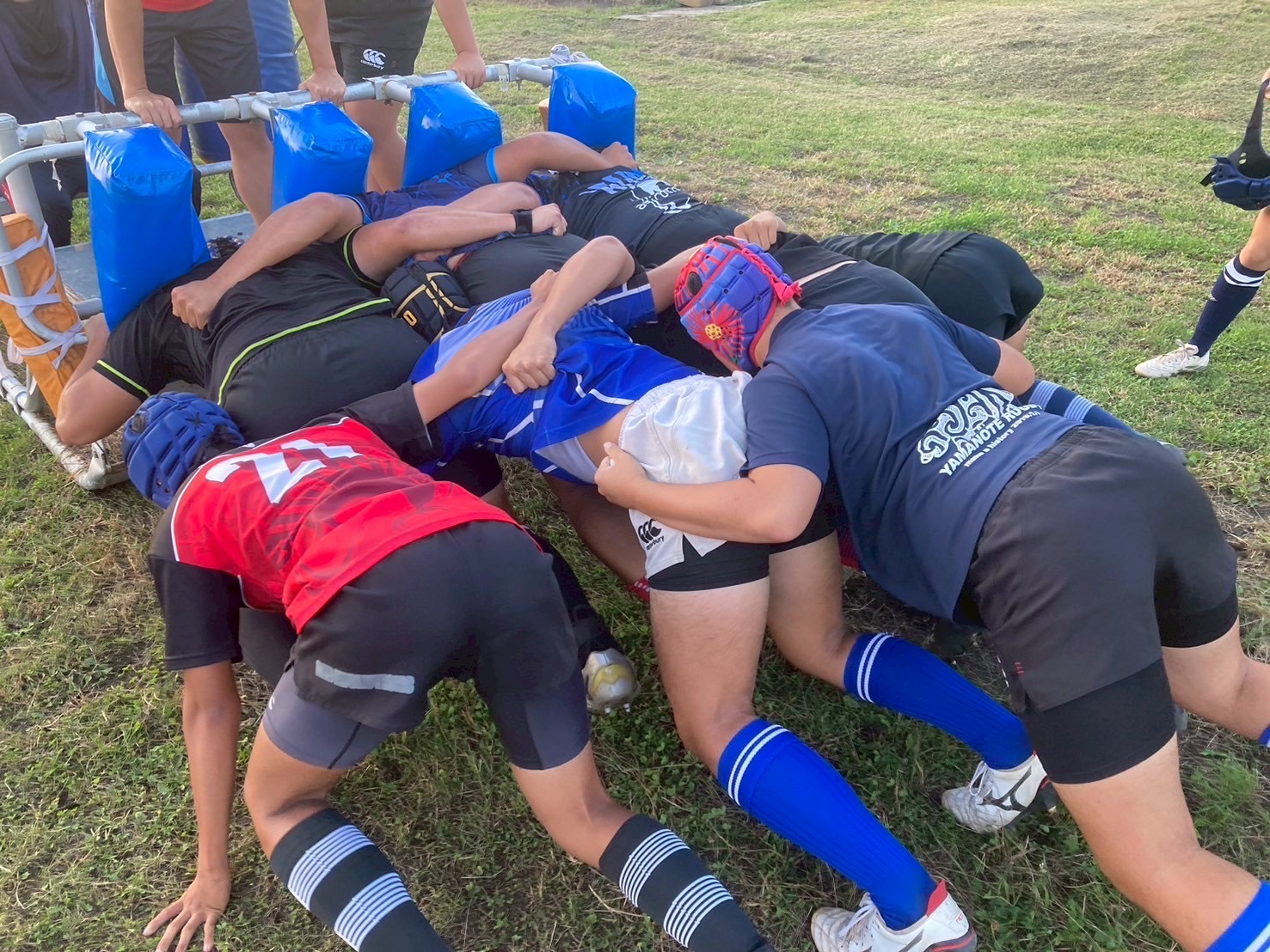次にユニットを行いました。BKは対人キック、キックキャッチの練習、サインアタック、FWはスクラム練習、ラインアウトの練習を行いました。2年森井と1年戸塚は、筋トレに励んでいました。家でも自主的にトレーニングを行い、強いフィジカルを作っていきましょう。