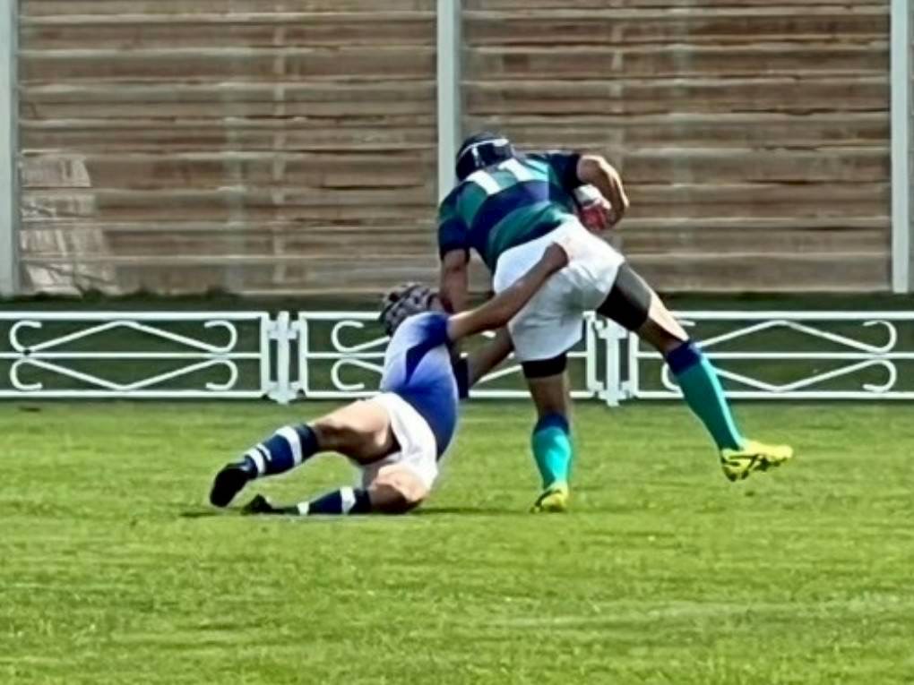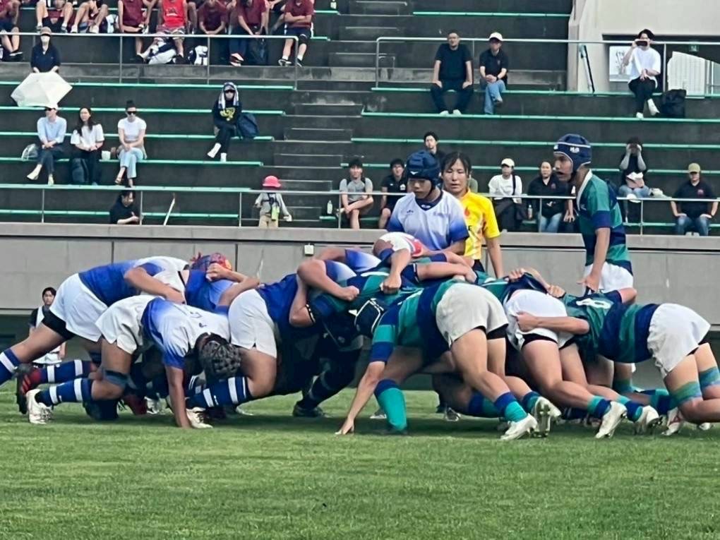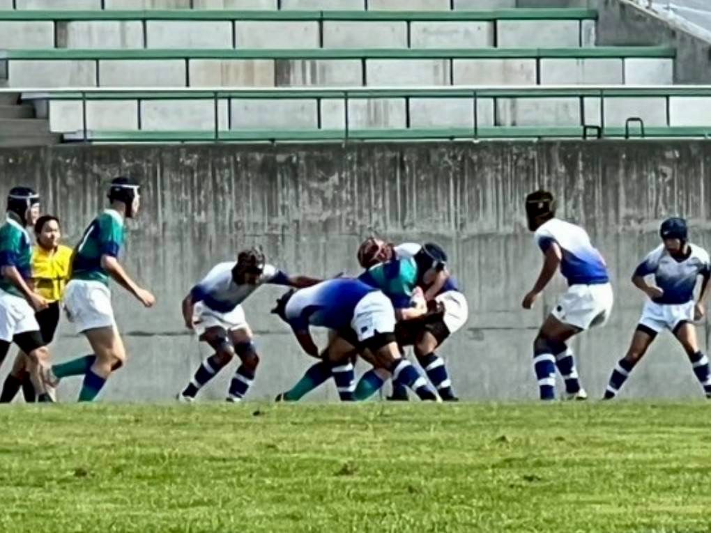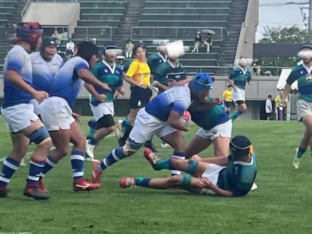 開始15分半、敵陣10mライン付近でユアボールでのラインアウトになりました。ボールが繋がれるも、2年向井と1年橘井がダブルタックルを決めました。マイボールラインアウトからのモールになり、モールを押し、2年政氏が抜け出し走りましたがDFを抜けきれずトライをすることはできませんでした。