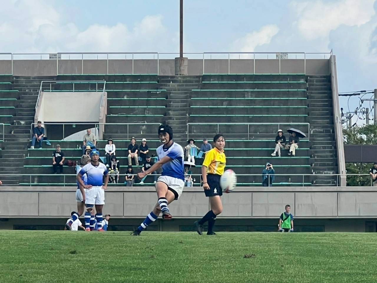 ハーフタイムに入り、2年芝木が、ミスがトライに繋がるから、自分たちも相手のミスをトライに繋げようと声をかけていました。自分達のミスを減らしつつ、有言実行できるよう頑張りましょう。
