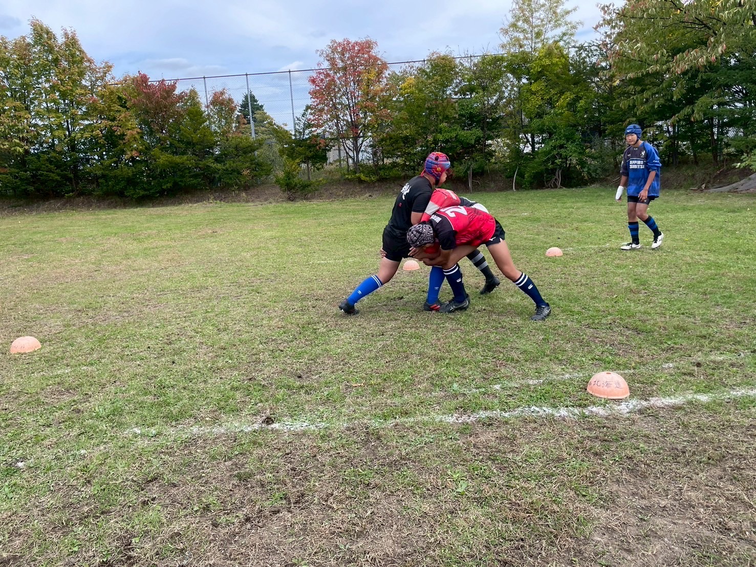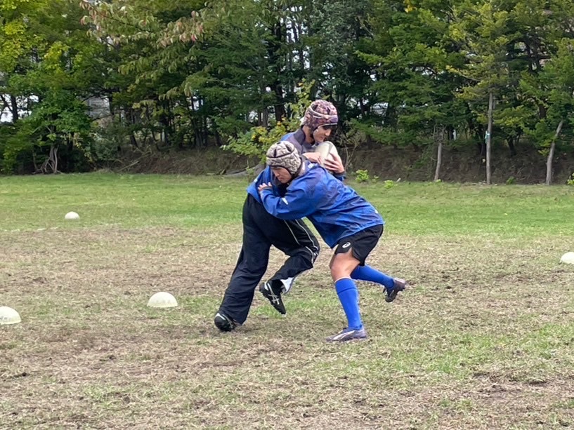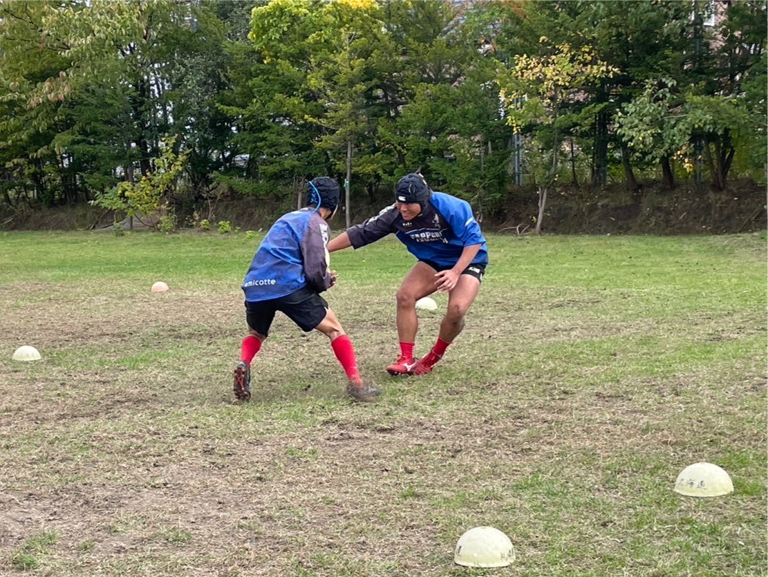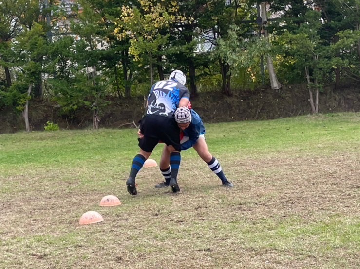 次に、1対1を行いました。肩を当てながら相手の懐に入り込むイメージで練習を行いましょう。また、2年前川のタックルが印象的でした。