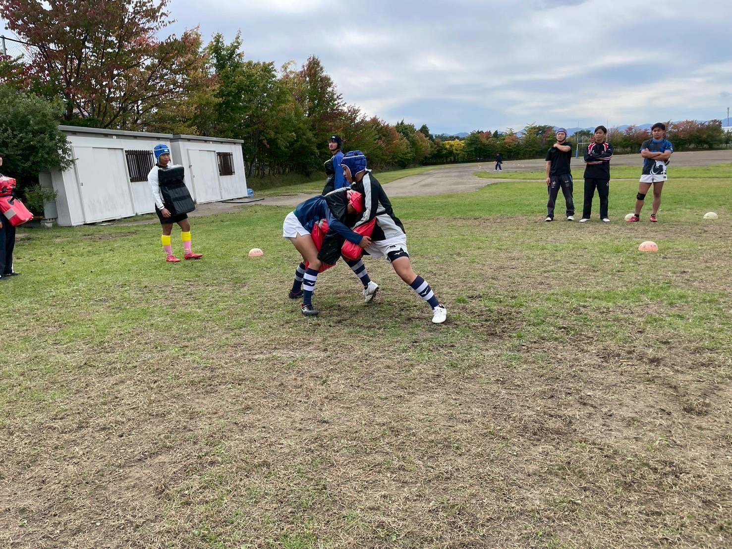 次に、ユニットを行いました。BKはキックキャッチ、アタック練習、FWはスクラム練習を行いました。