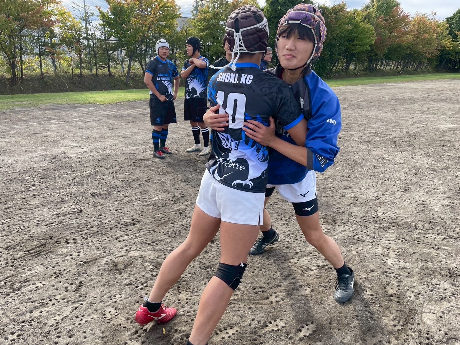 次に、常翔学園の皆さんから教わったコンタクト練習を行いました。胸を強く当てて直接力を伝わらせることを意識して頑張りましょう。