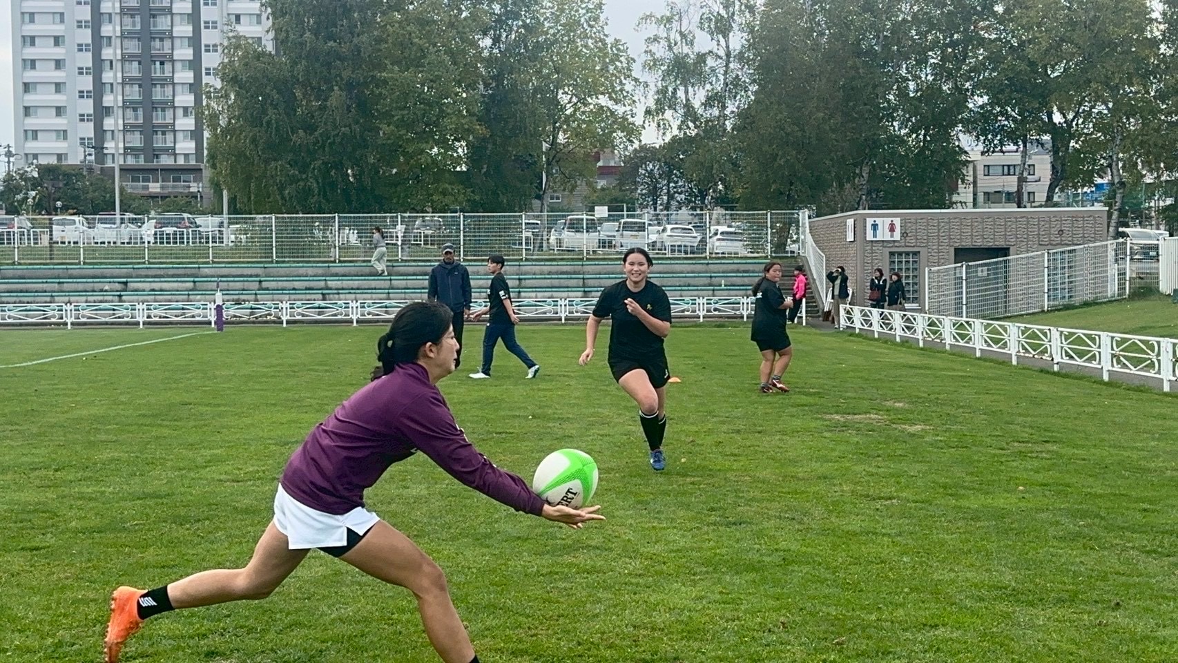 女子選手は月寒屋外競技場での北海道女子セブンズラグビーフレンドリーマッチに参加しました。6対6のADを行いました。