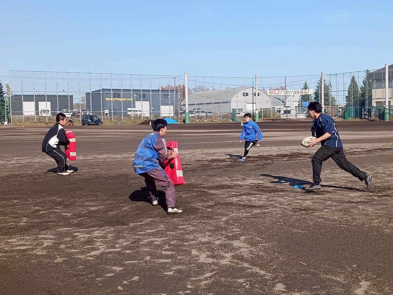 今日はSCからグラウンド練習を行いました。天気もグラウンド状態も良く、久しぶりのグラウンド練習ができました。OBの表原さん、谷口さん、山崎さん、平野さんと社会人のサッテツクラブの原田さん、千葉さん、工藤さんが練習に来てくださいました。