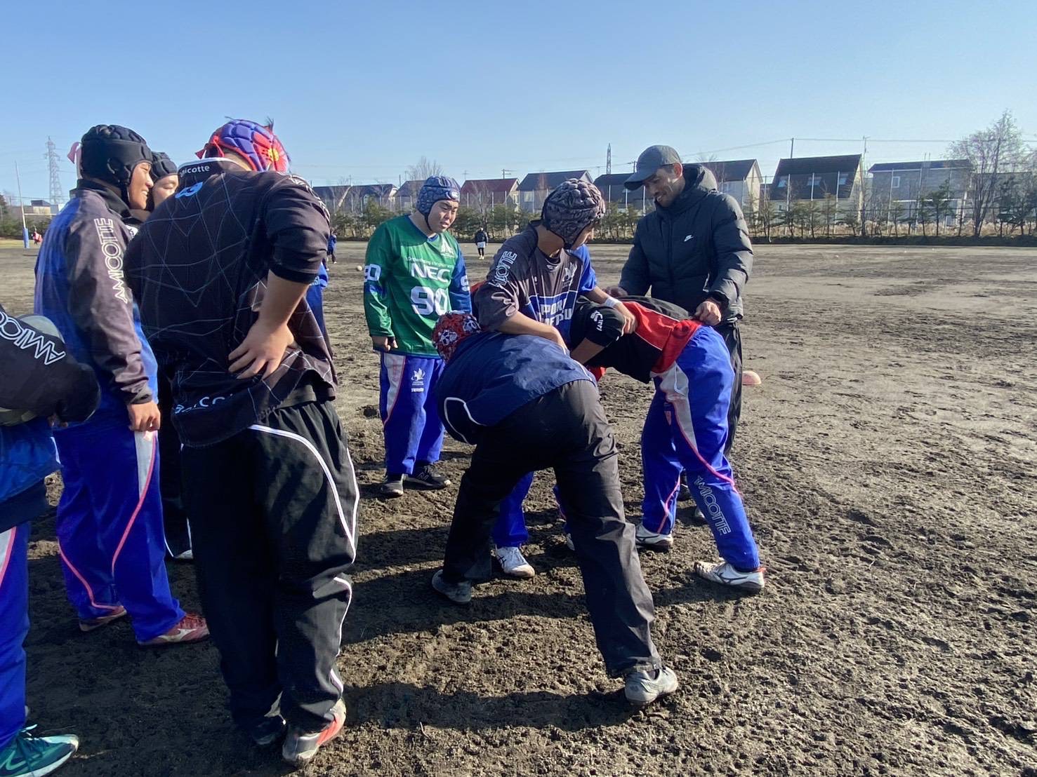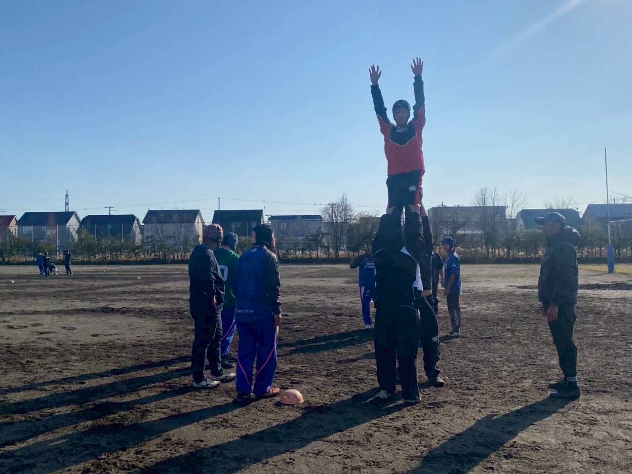次にユニットを行いました。BKは対人キック、キックキャッチを行いました。FWはラインアウト、モール練習を行いました。