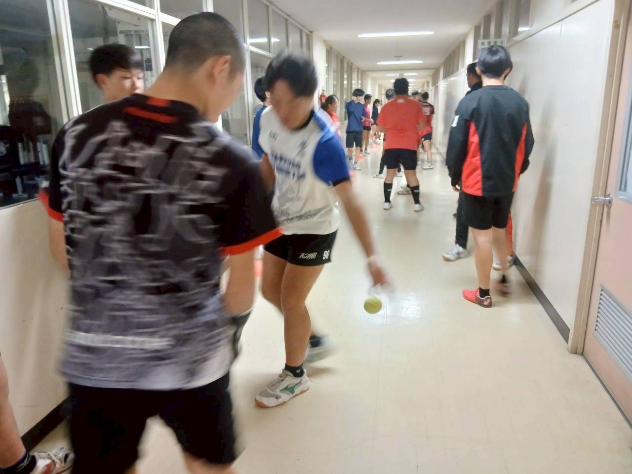 次に鈴木大地さんに教えて頂いたノーミングアップを行いました。声を出しながら、周りを見ながら、テニスボールをキャッチしながらとながら作業に集中していました。視野を更に広げられるようにしましょう。