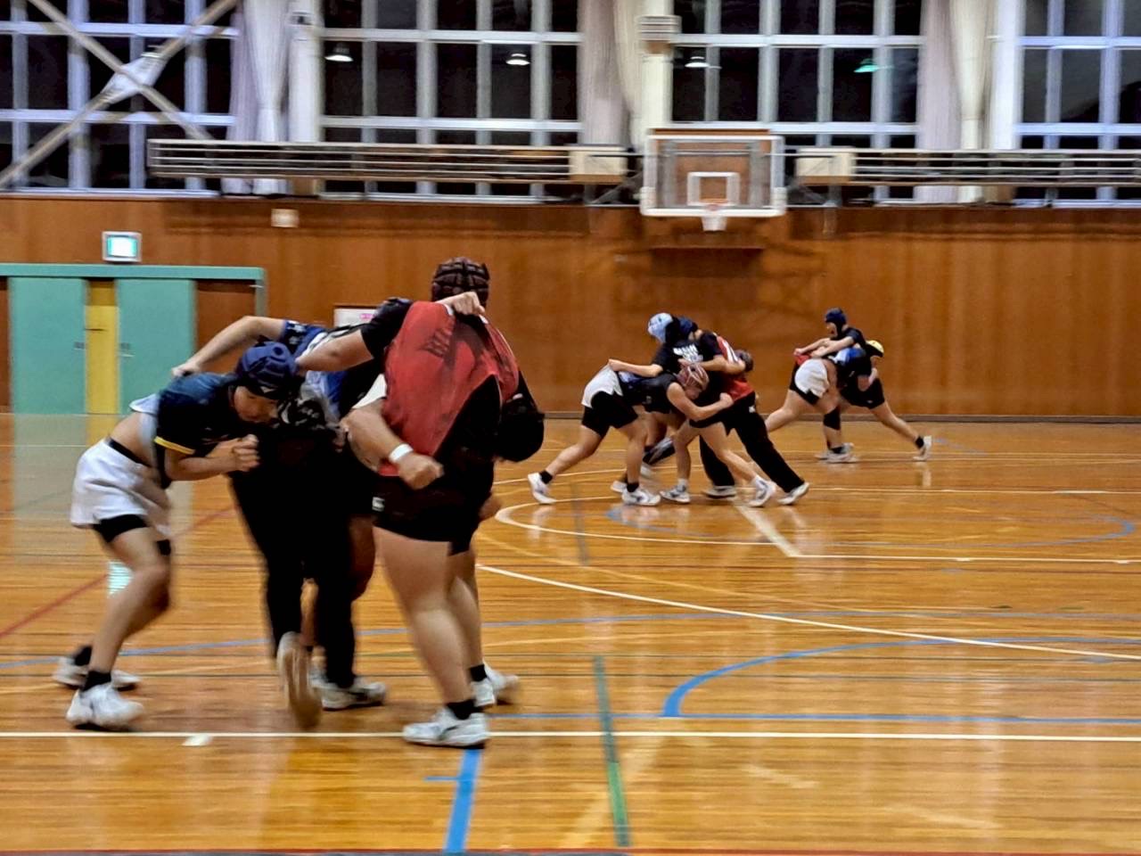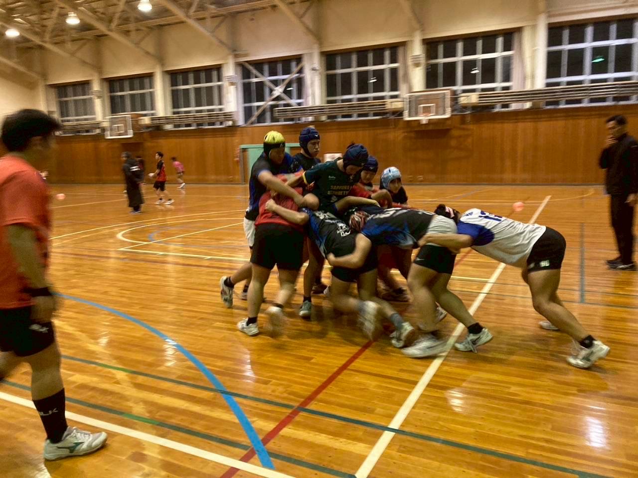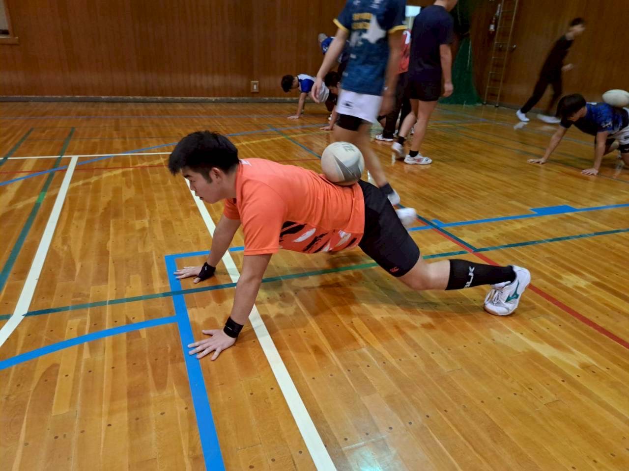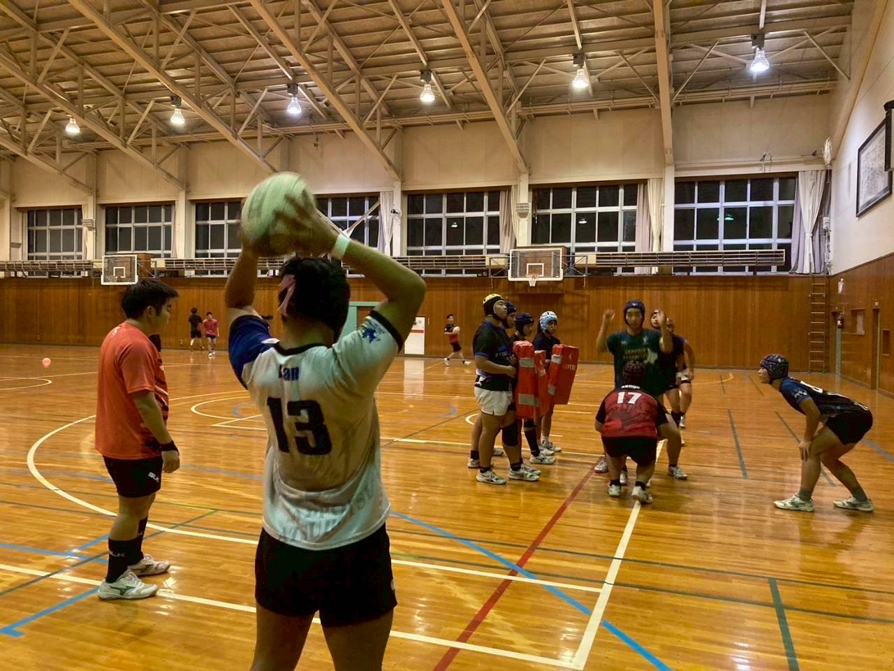 その後ユニットを行いました。BKは目のトレーニング、アタック練習を行い、FWは姿勢を保つ練習、モールを押す練習、ラインアウトを行いました。