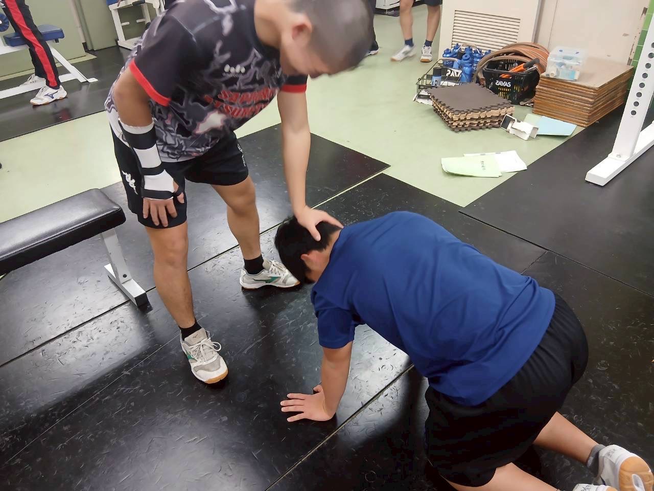 次に首のトレーニングを行いました。SCが終わってから積極的に行うようにしましょう。