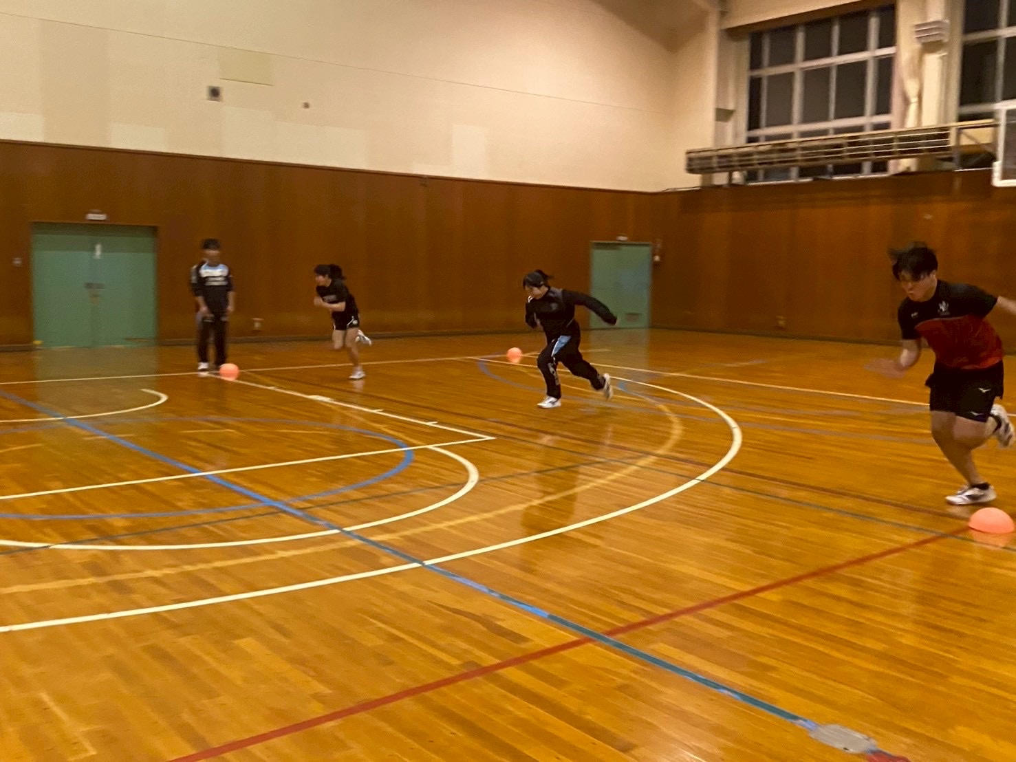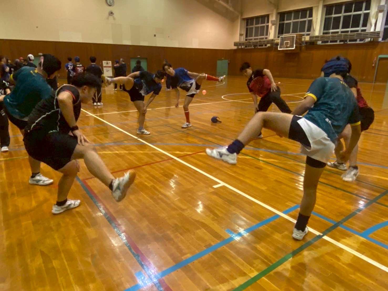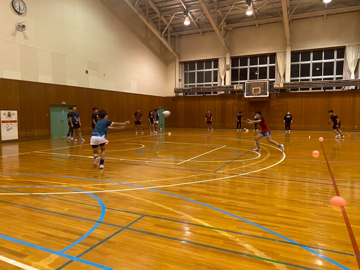 始めにSCを行いました。遠征で怪我人が多かったため、怪我をしている選手は自分の状態に合わせて臨機応変に筋トレを行っている姿が見られました。また、疲れが残っており、「全身が痛い」「筋肉痛でうまく動かない」といった弱音が聞こえる場面もありました。しかし、それでも選手全員が前向きで明るい雰囲気の中、しっかりとトレーニングに取り組んでいました!