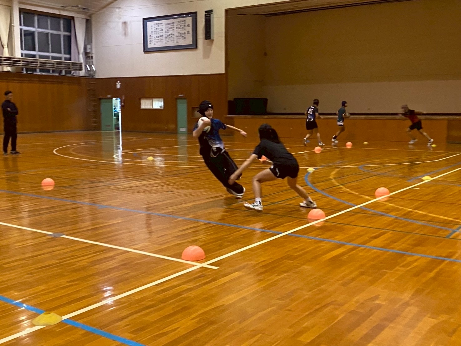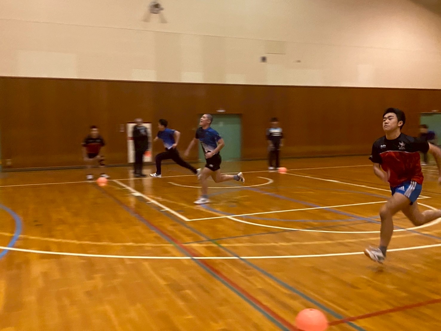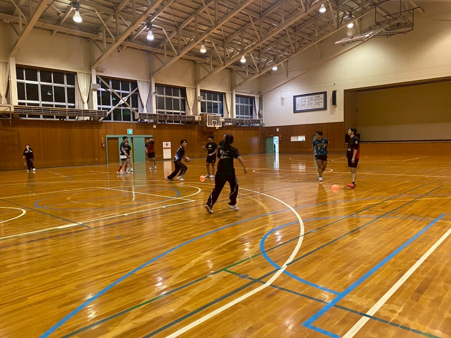 始めにSCを行いました。遠征で怪我人が多かったため、怪我をしている選手は自分の状態に合わせて臨機応変に筋トレを行っている姿が見られました。また、疲れが残っており、「全身が痛い」「筋肉痛でうまく動かない」といった弱音が聞こえる場面もありました。しかし、それでも選手全員が前向きで明るい雰囲気の中、しっかりとトレーニングに取り組んでいました!