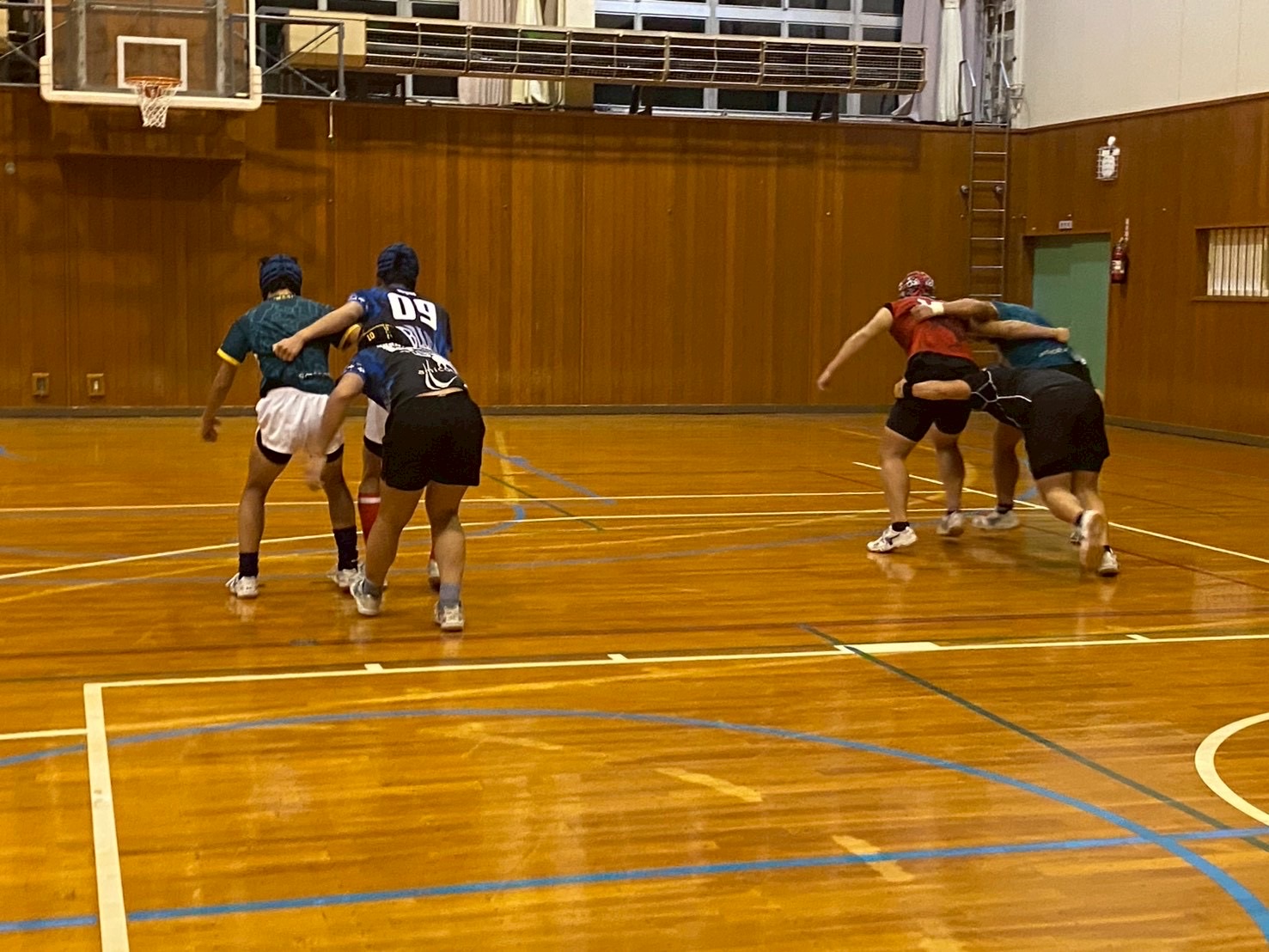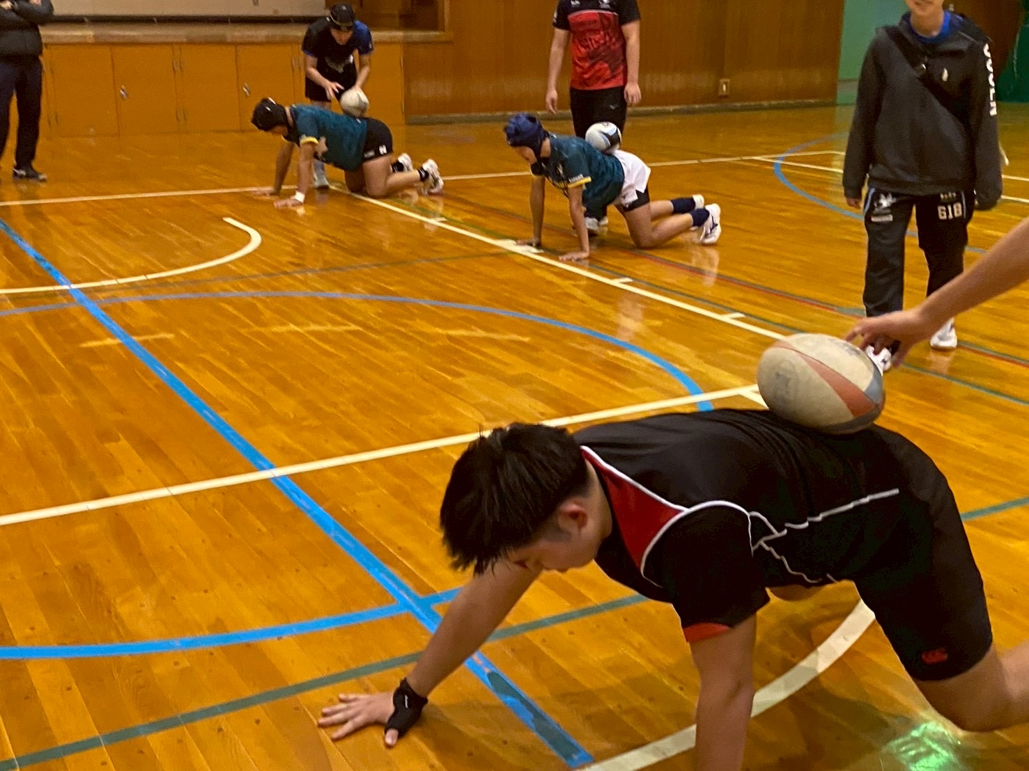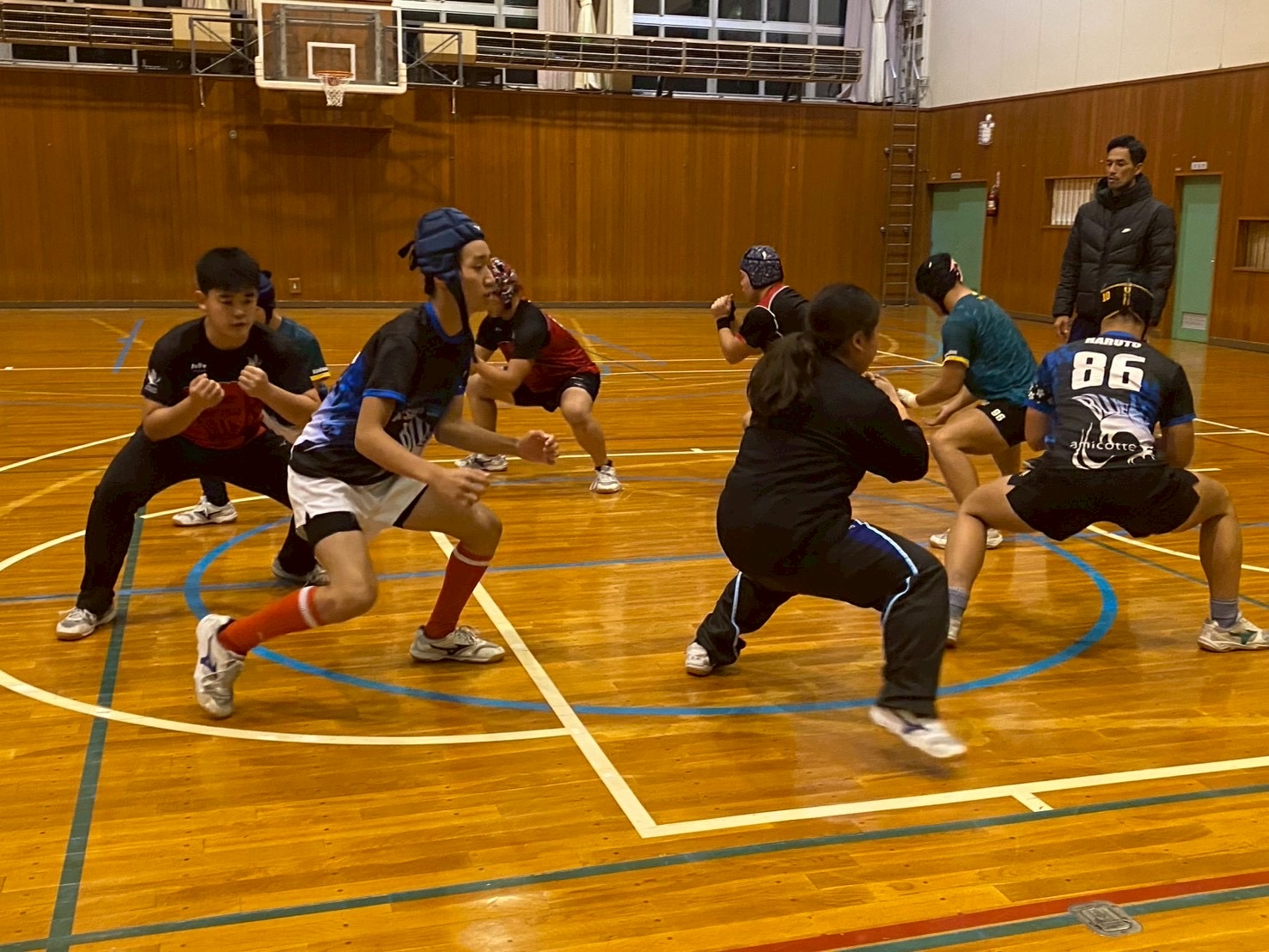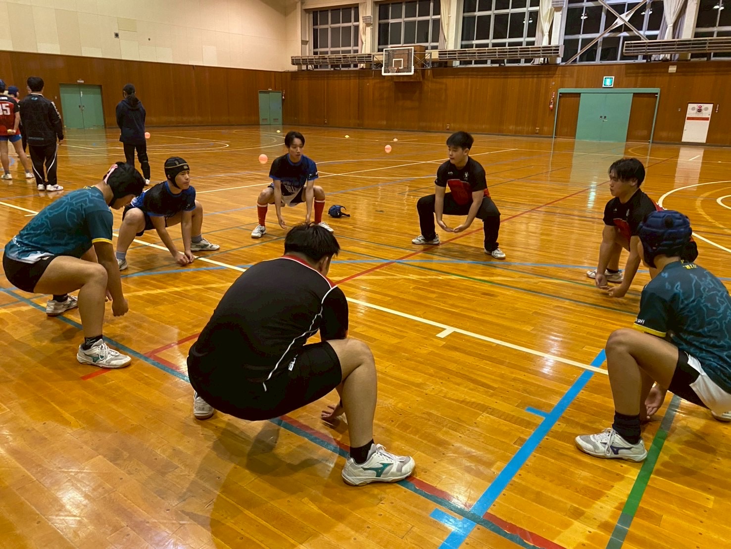 その後、ユニットを行いました。FWは四股を踏む練習・姿勢を整える練習・モールの練習を行いました。BKはディフェンス練習を行いました。